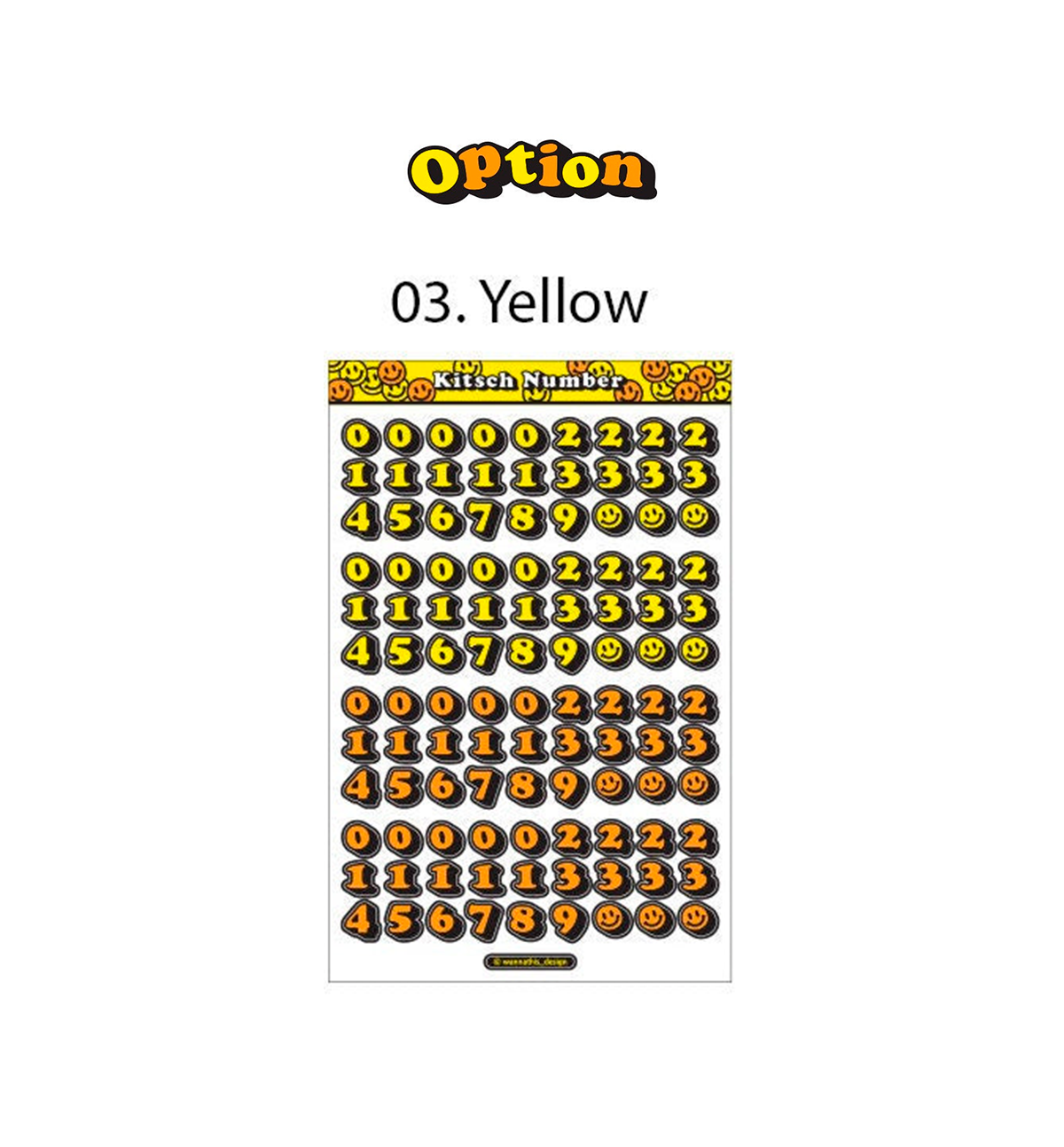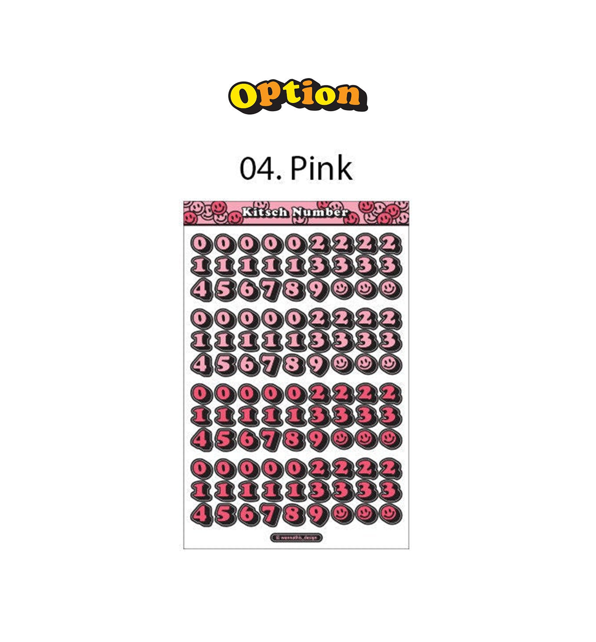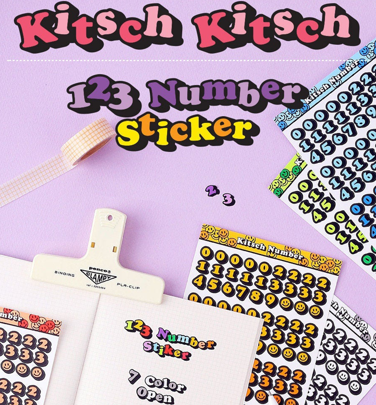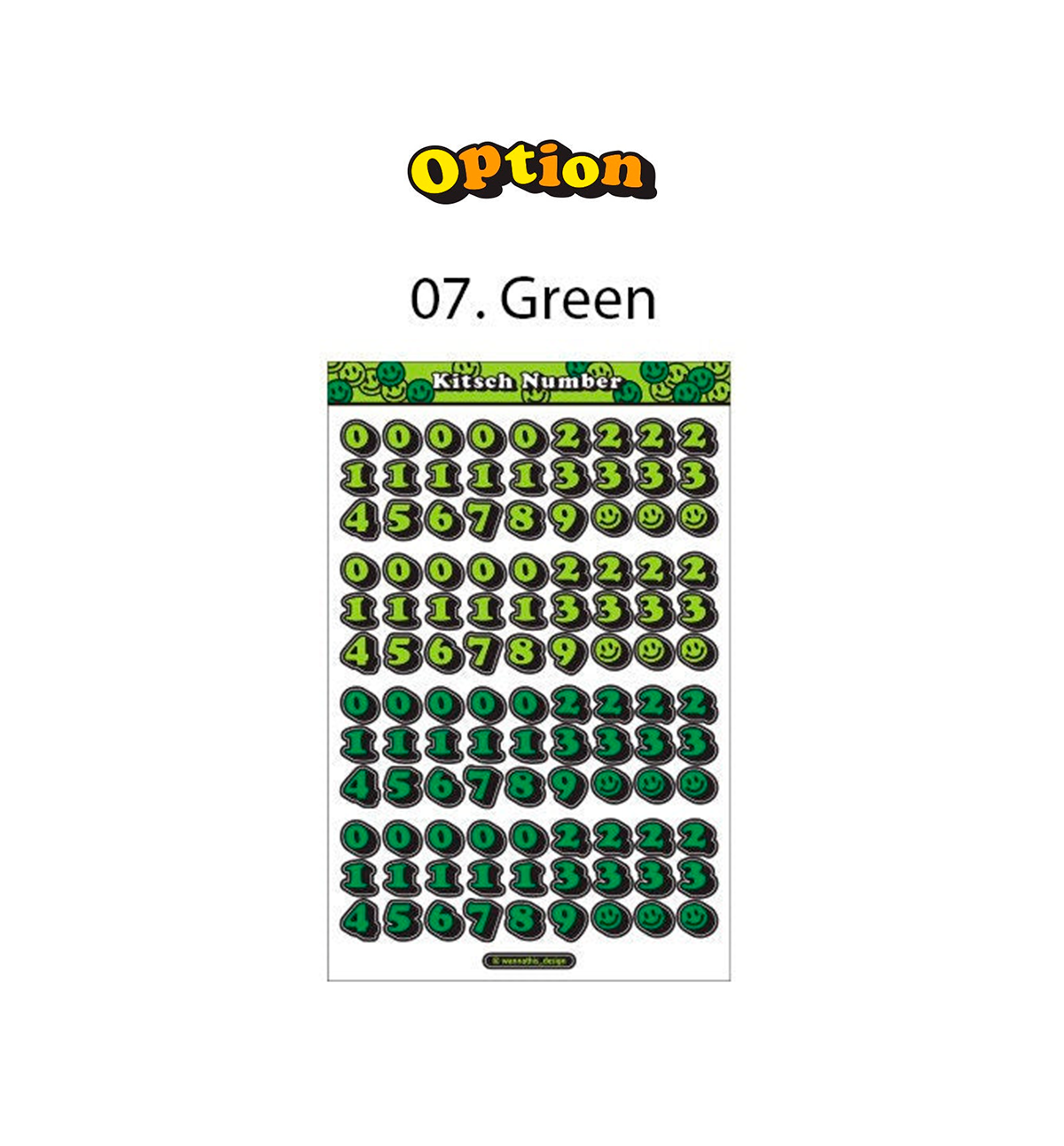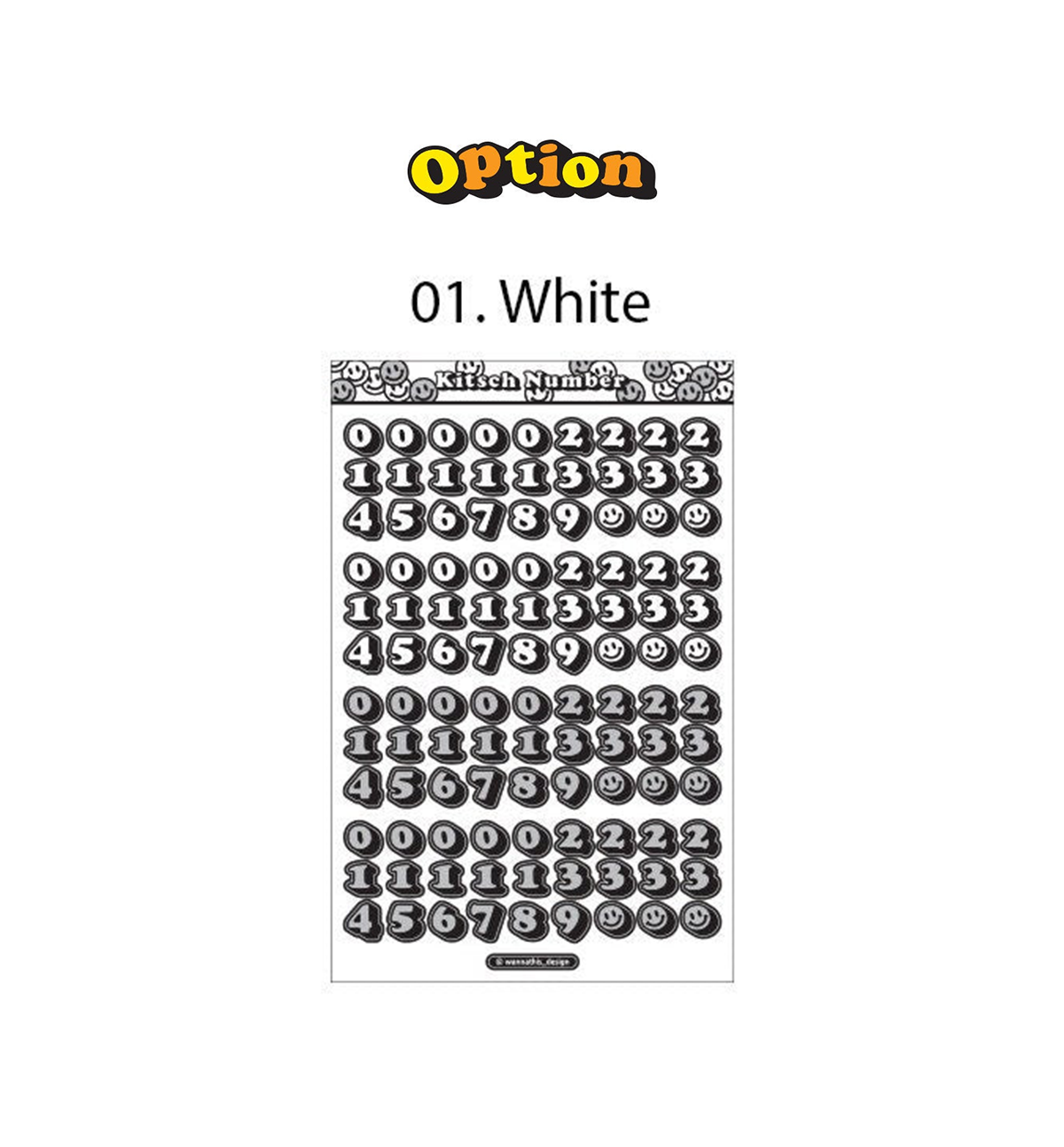 This beautiful Number Stickers comes in 7 different colors: 01. White, 02. Red, 03. Yellow, 04. Pink, 05. Purple, 06. Blue and 07. Green.