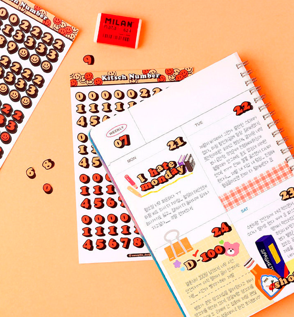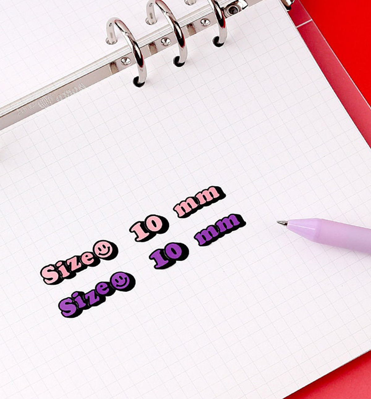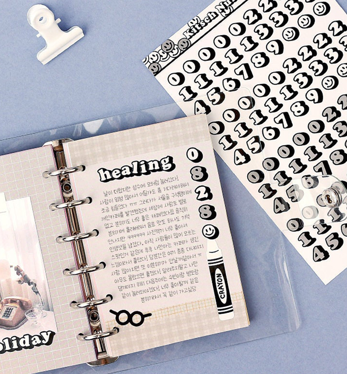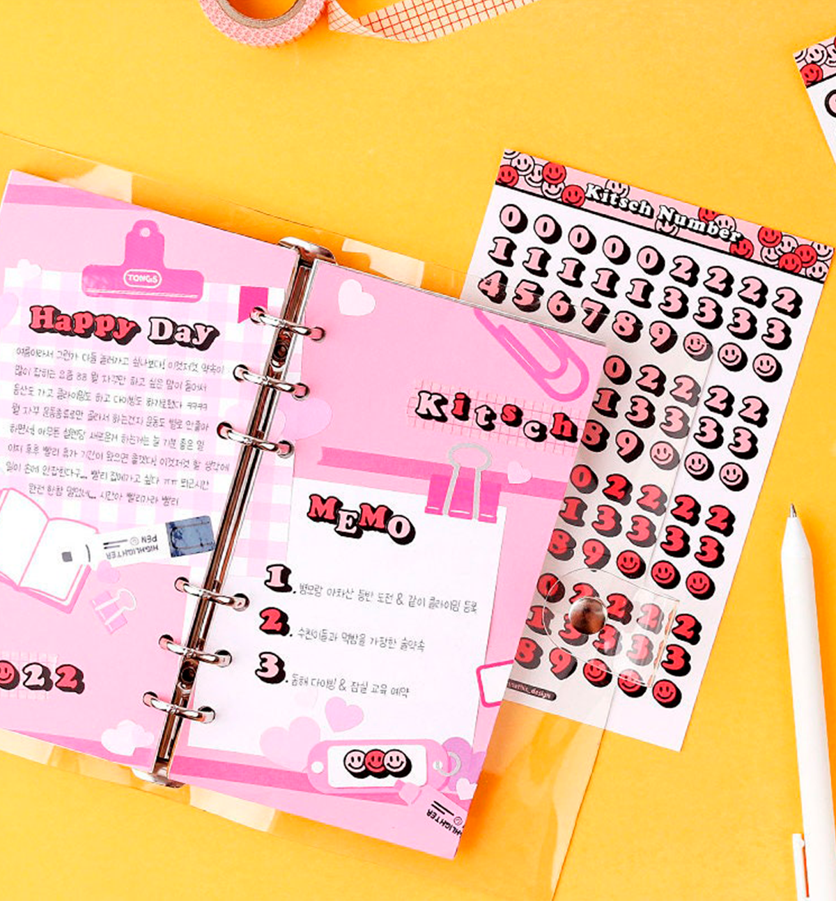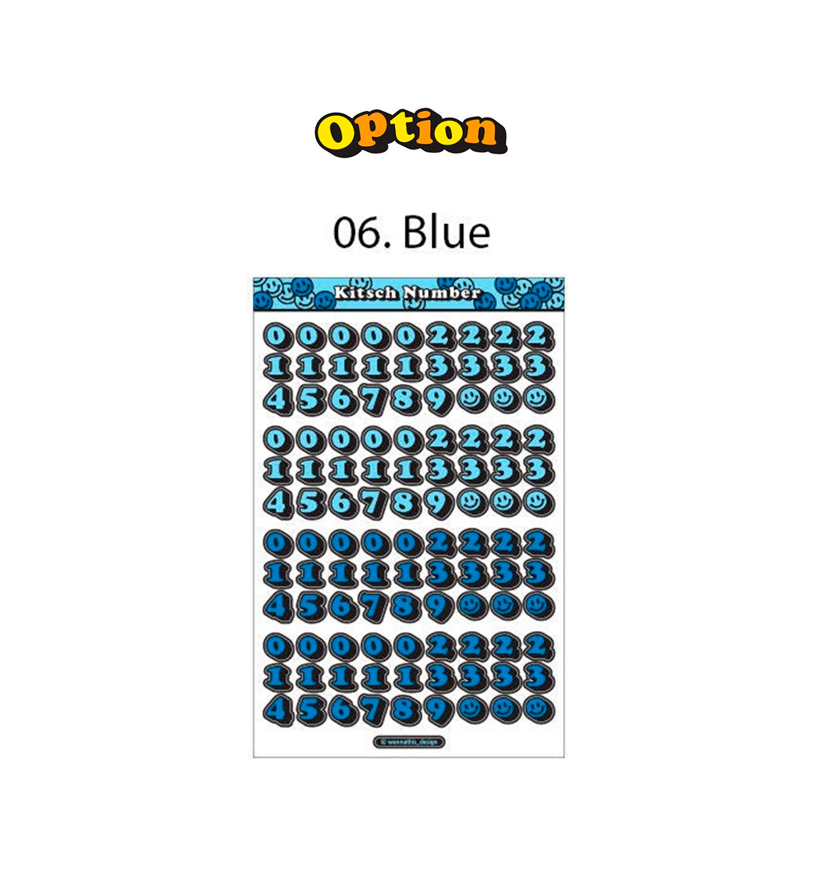 This beautiful Number Stickers comes in 7 different colors: 01. White, 02. Red, 03. Yellow, 04. Pink, 05. Purple, 06. Blue and 07. Green.