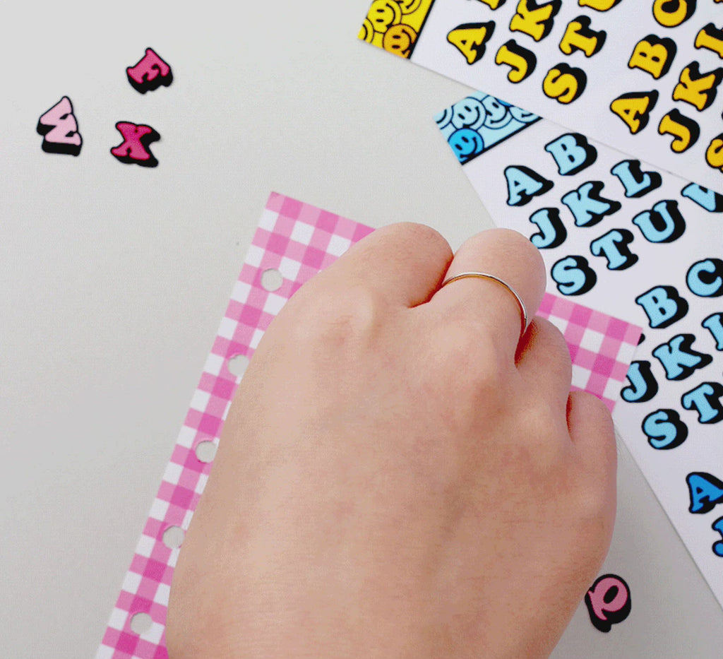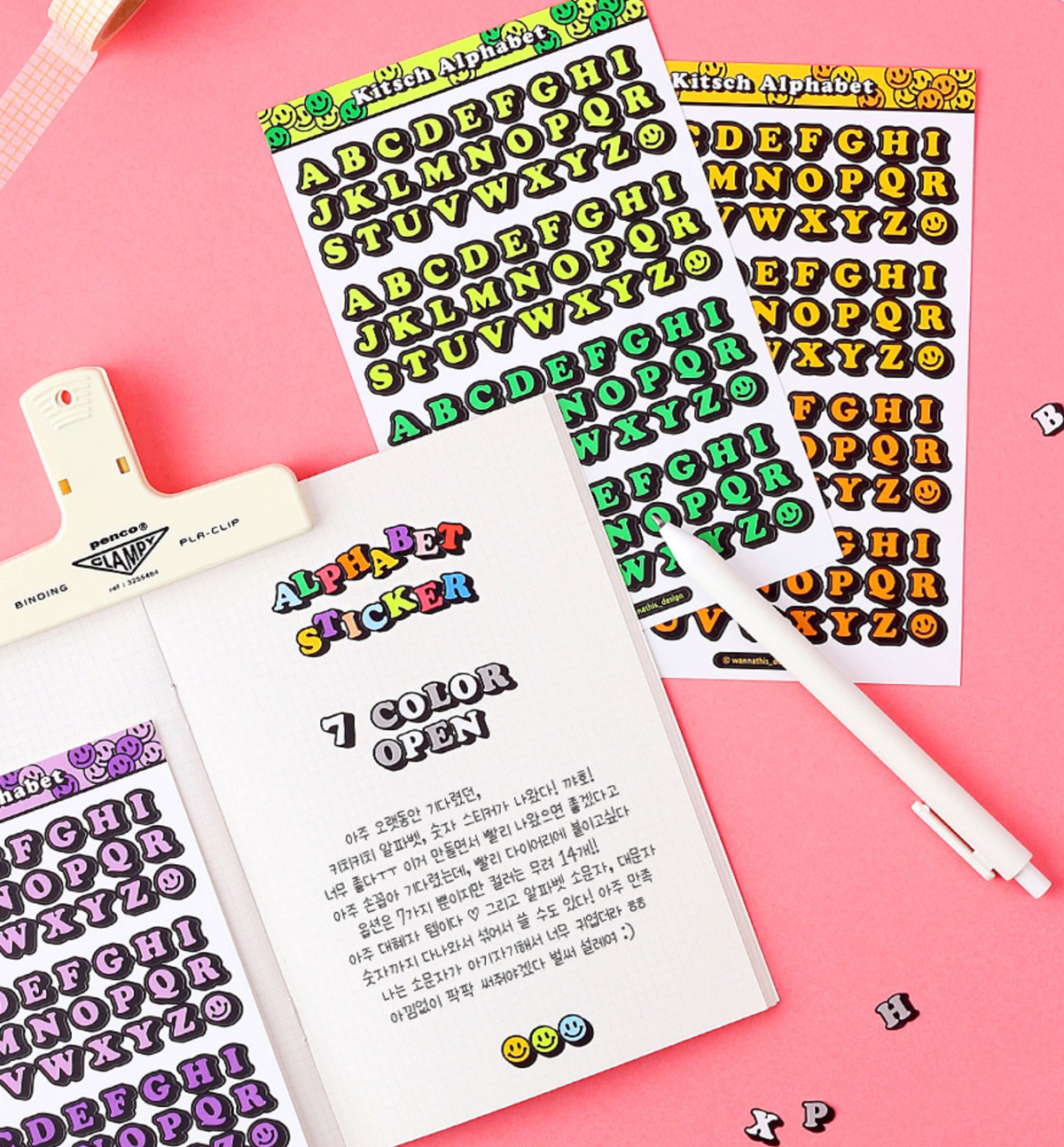 This beautiful ABC Stickers comes in 7 different colors: 01. White, 02. Red, 03. Yellow, 04. Pink, 05. Purple, 06. Blue and 07. Green. Please, see pictures for reference.