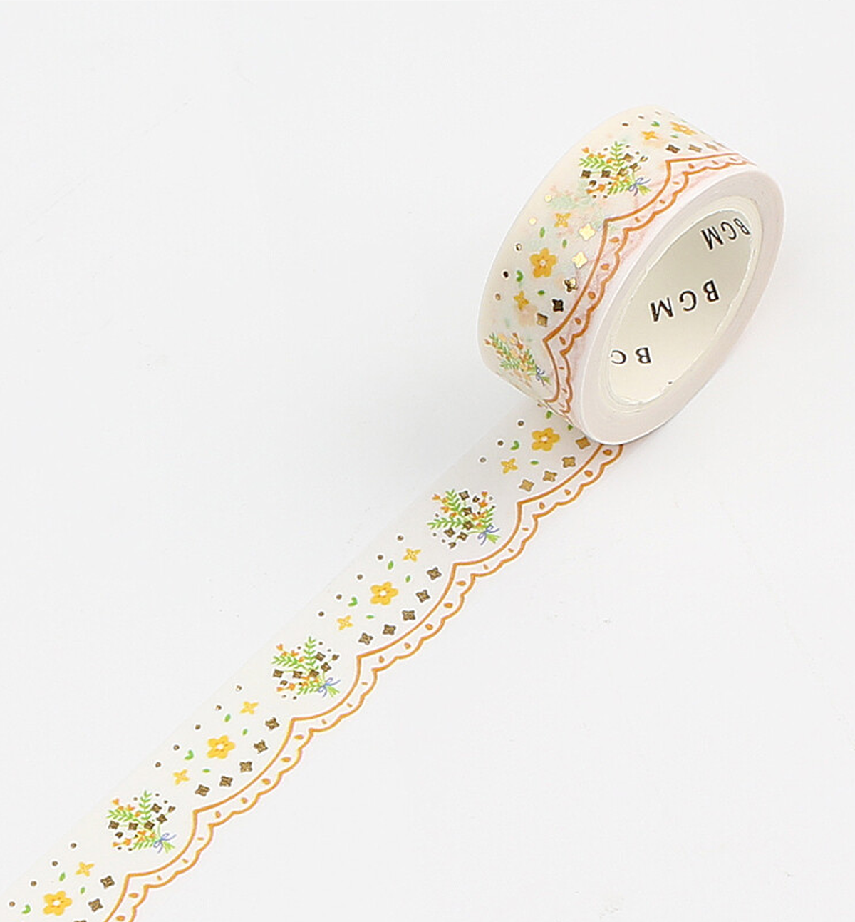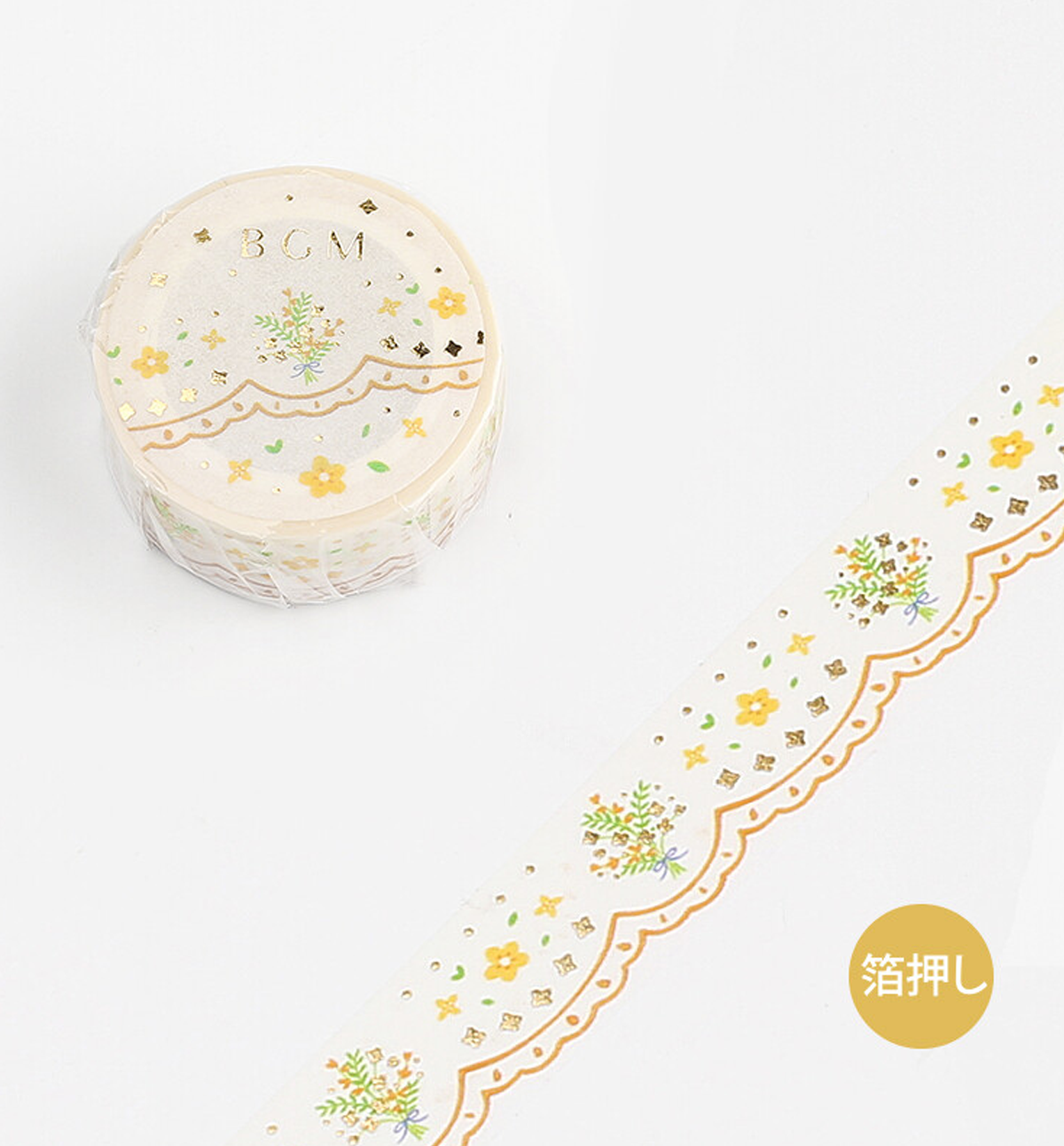 - Quantity: 1 Lace Yellow Flower Washi Tape [Foil Stamping]