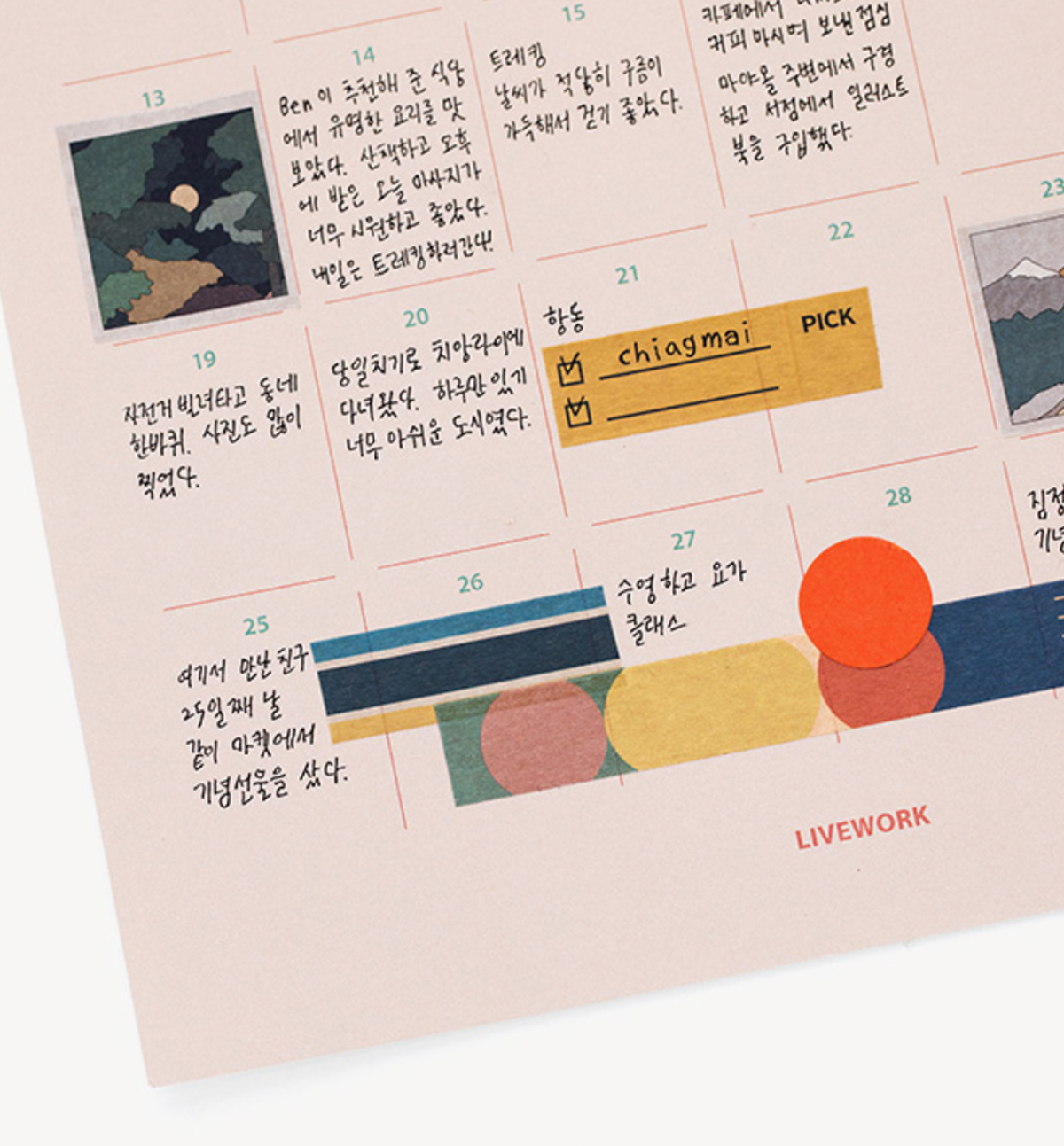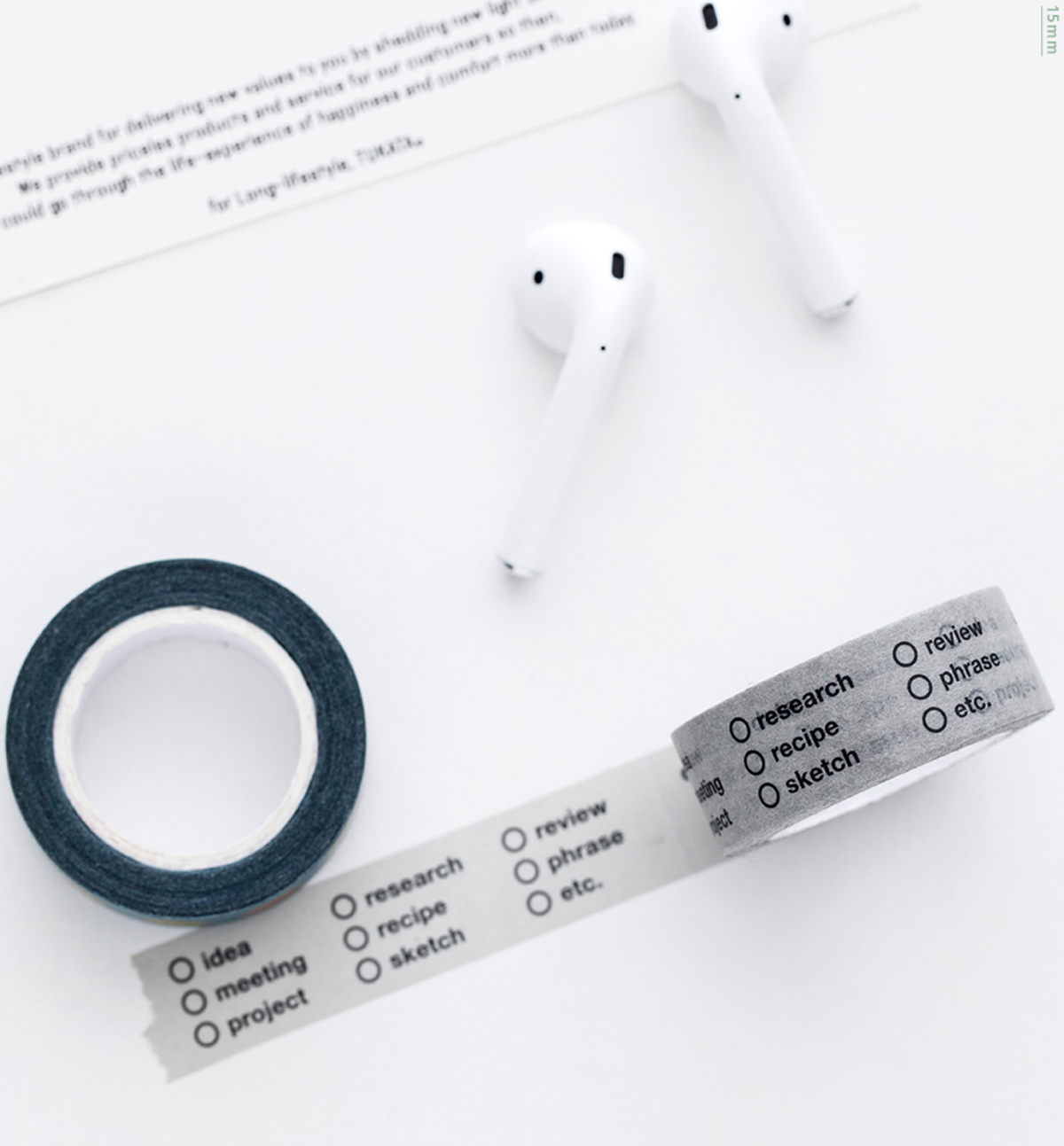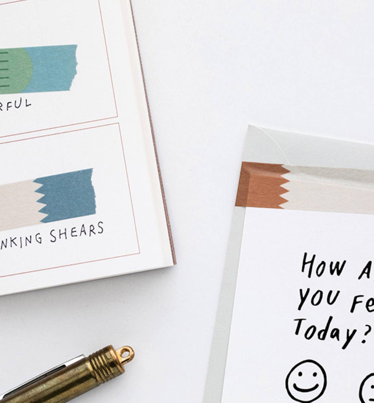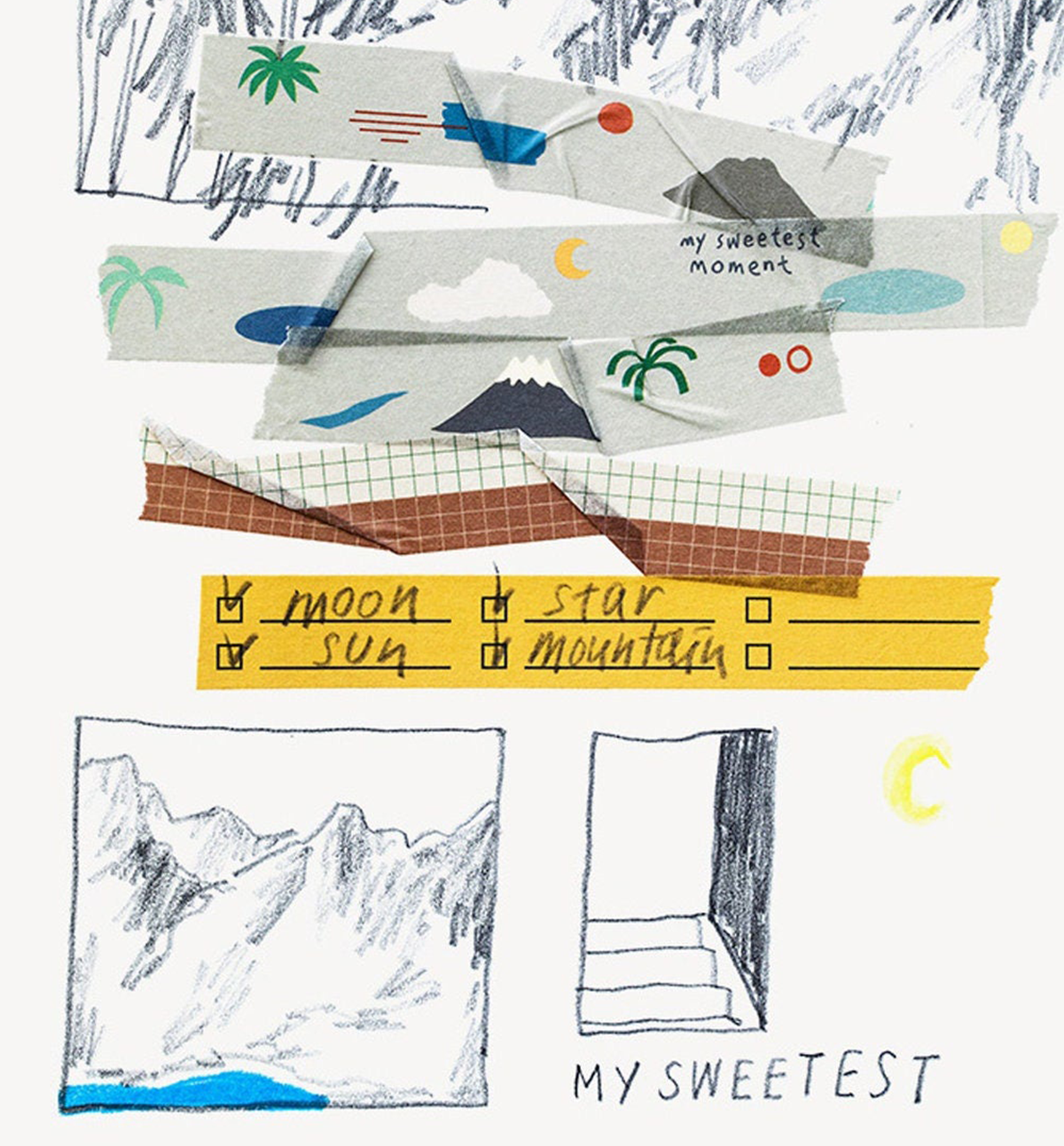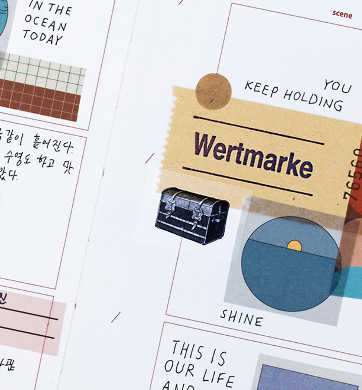 This beautiful washi tape comes in 11 different designs: Colorful, Moment, Brick, Marine, Pinking Shears, Ball, Three Things, Pick, Pick, Idea, Weekly and Live Today.