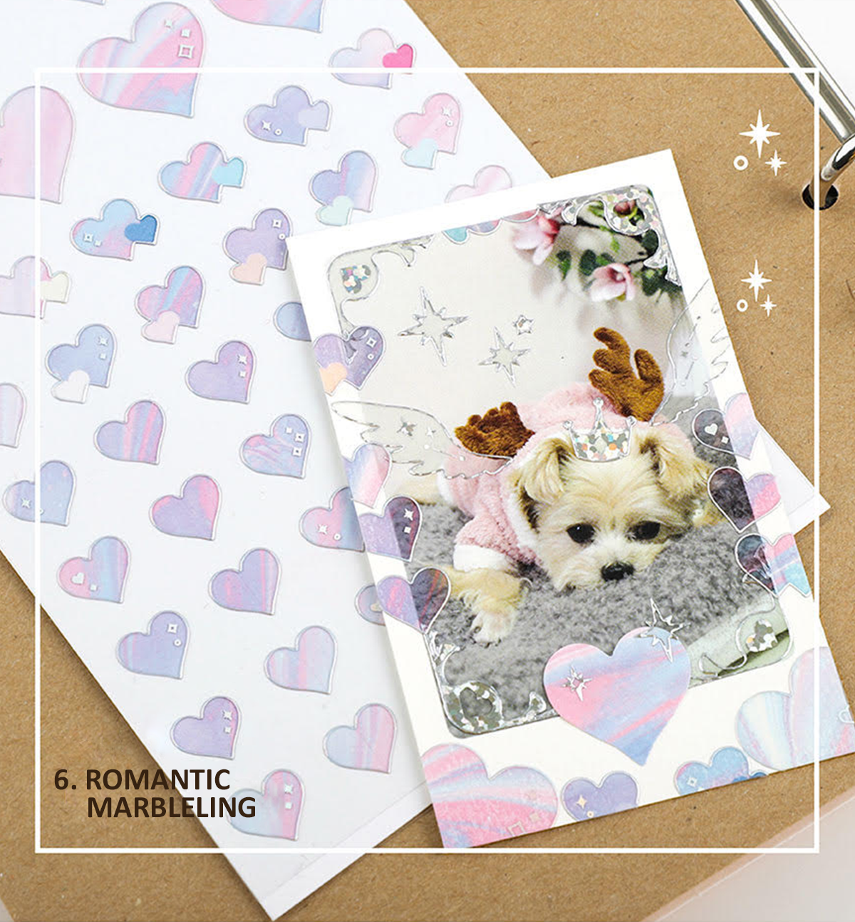 This beautiful Seal Stickers Deco comes in 8 different designs: 01. Afternoon Macaroon, 2. Secret Garden, 3. Cherry Blossom Leaves, 4. Emerald Sea, 5. Purple Scent, 6. Romantic Marbleling, 7. Pink Flower Marbleling and 8. Black & White.