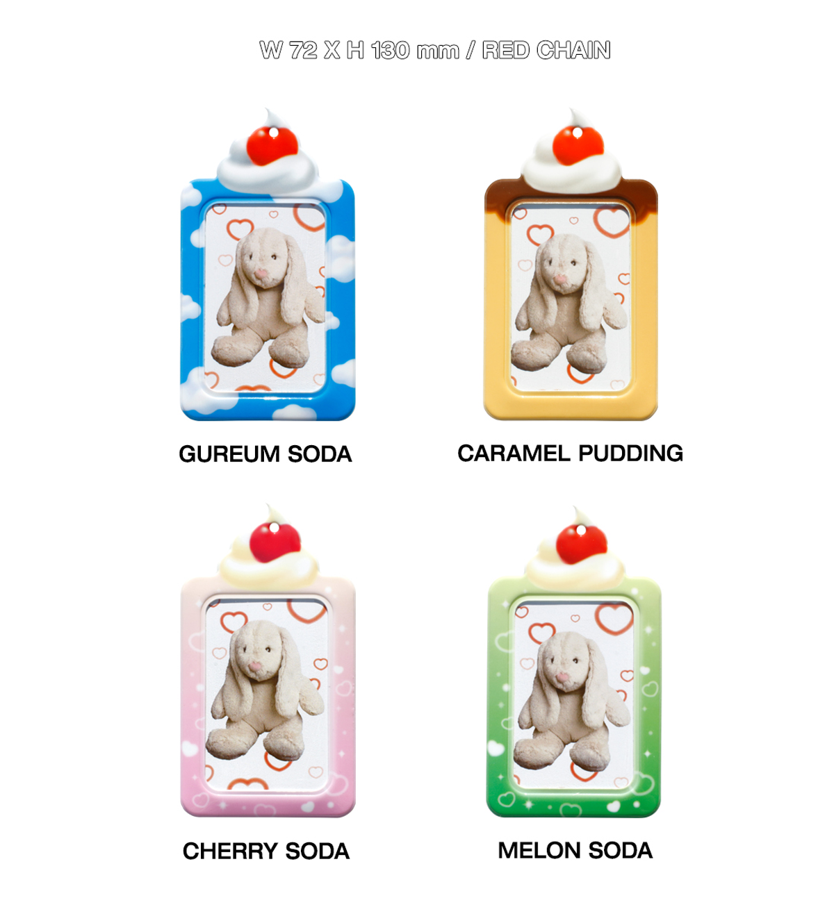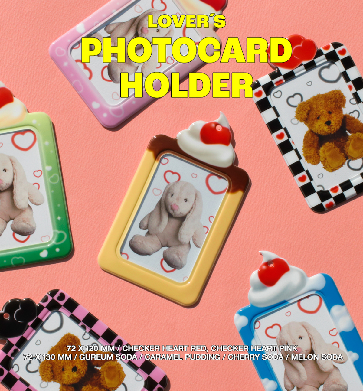 This beautiful Lover's Photocard Holder comes in 6 different designs: Checker Heart Red, Checker Heart Pink, Caramel Pudding, Gureum Soda, Cherry Soda and Melon Soda.