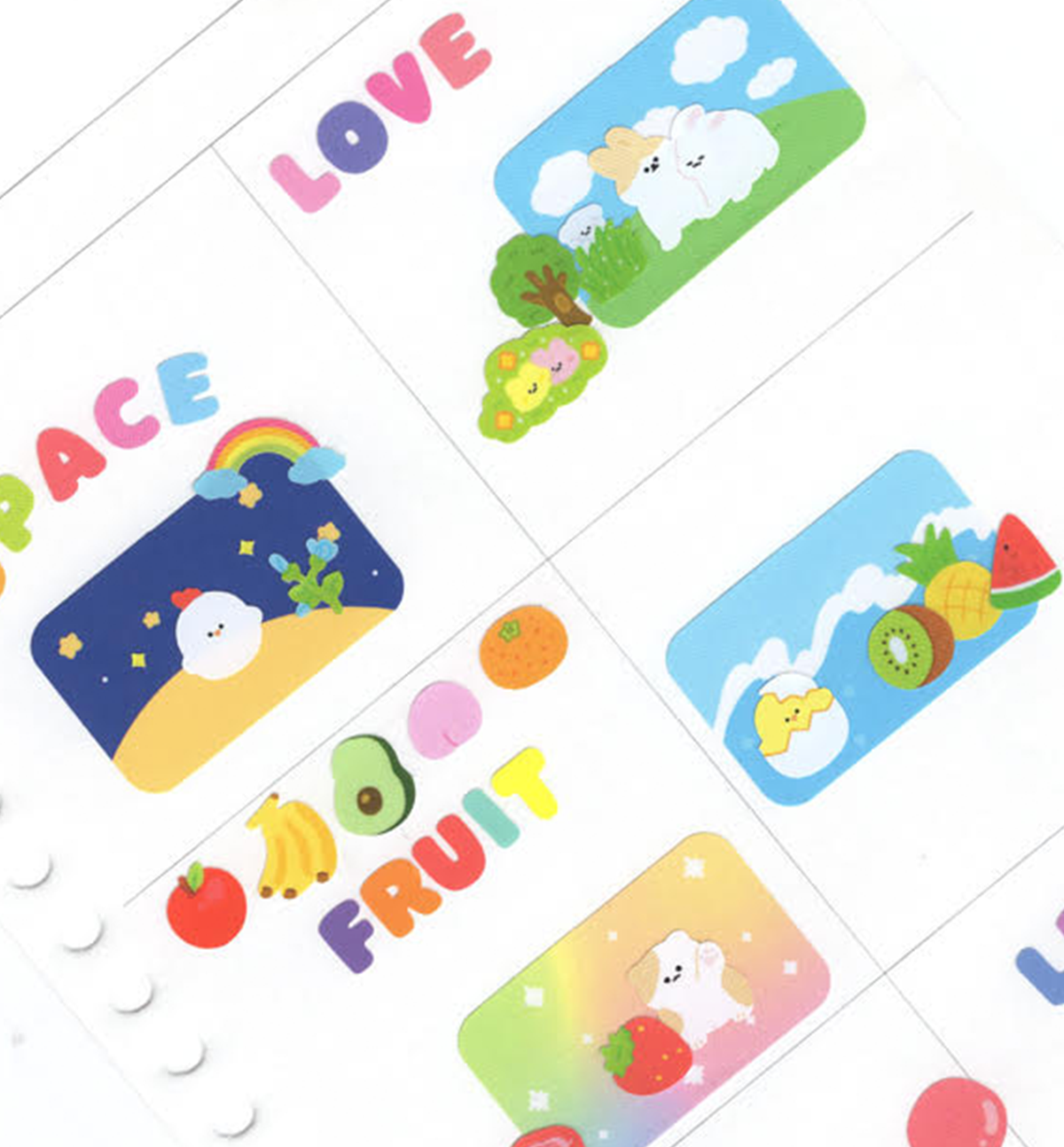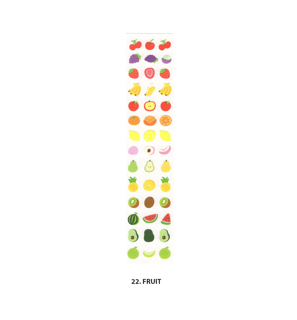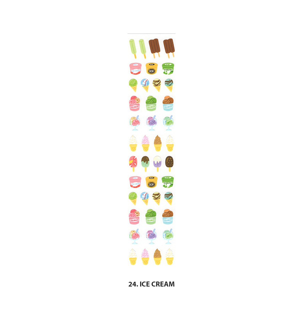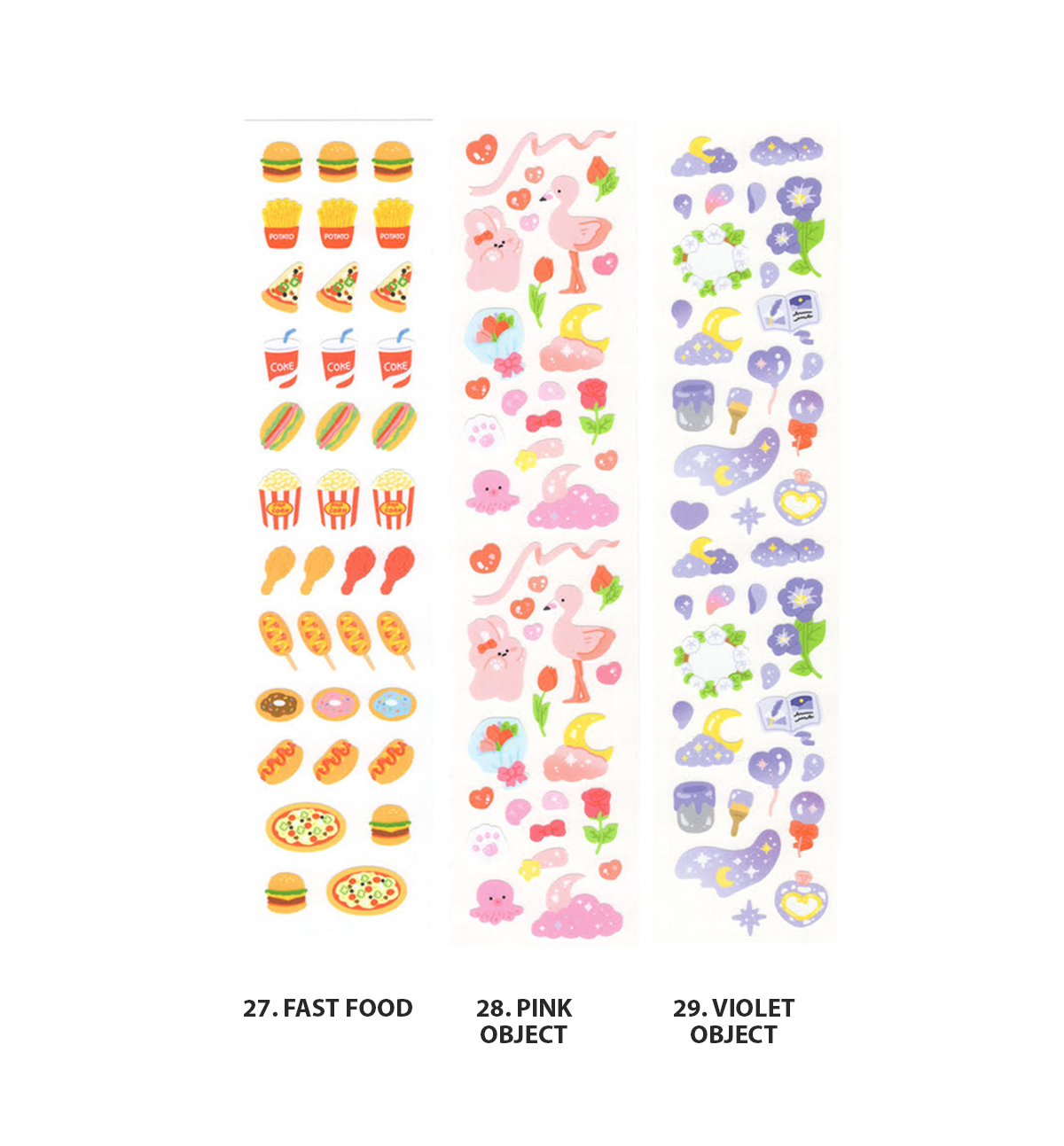 This beautiful Seal Stickers Deco comes in 9 different designs: 21. Snack, 22. Fruit, 23. Flower, 24. Ice Cream, 25. Cherry, 26. Cake, 27. Fast Food, 28. Pink Object, 29. Violet Object and 30. Crayon.