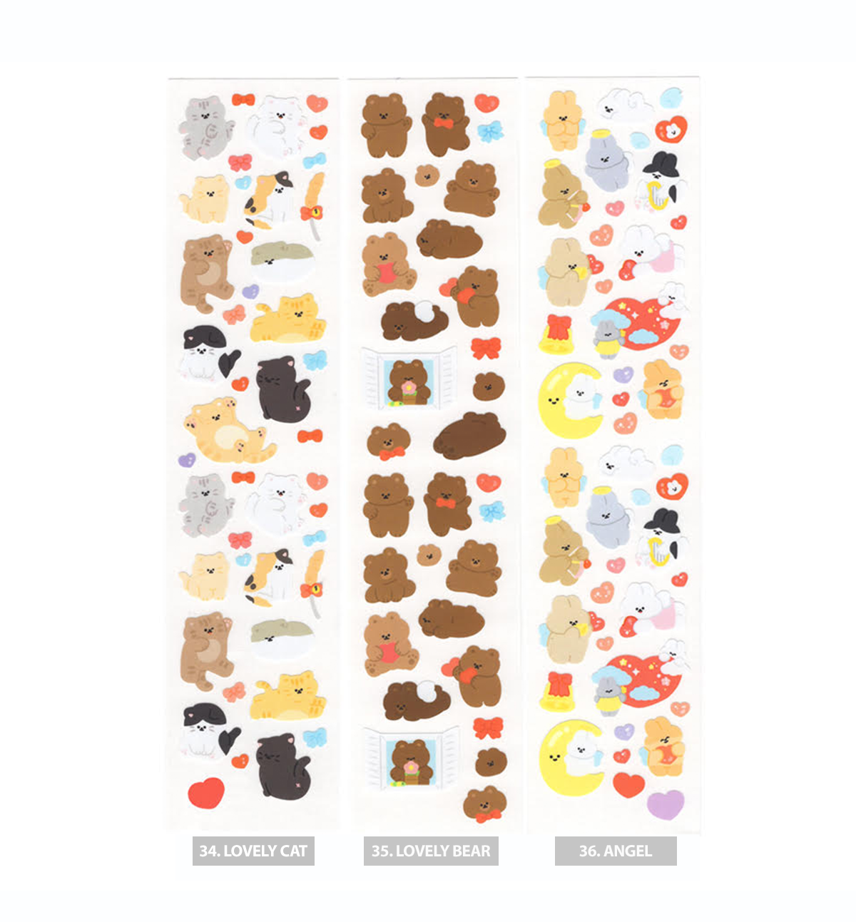 This beautiful Seal Stickers Deco comes in 10 different designs: 31. Dino, 32. Squirrel, 33. Dog Face, 34. Lovely Cat, 35. Lovely Bear, 36. Angel, 37. Doggy, 38. Bad Day, 39. Alligator and 40. Rabbit.