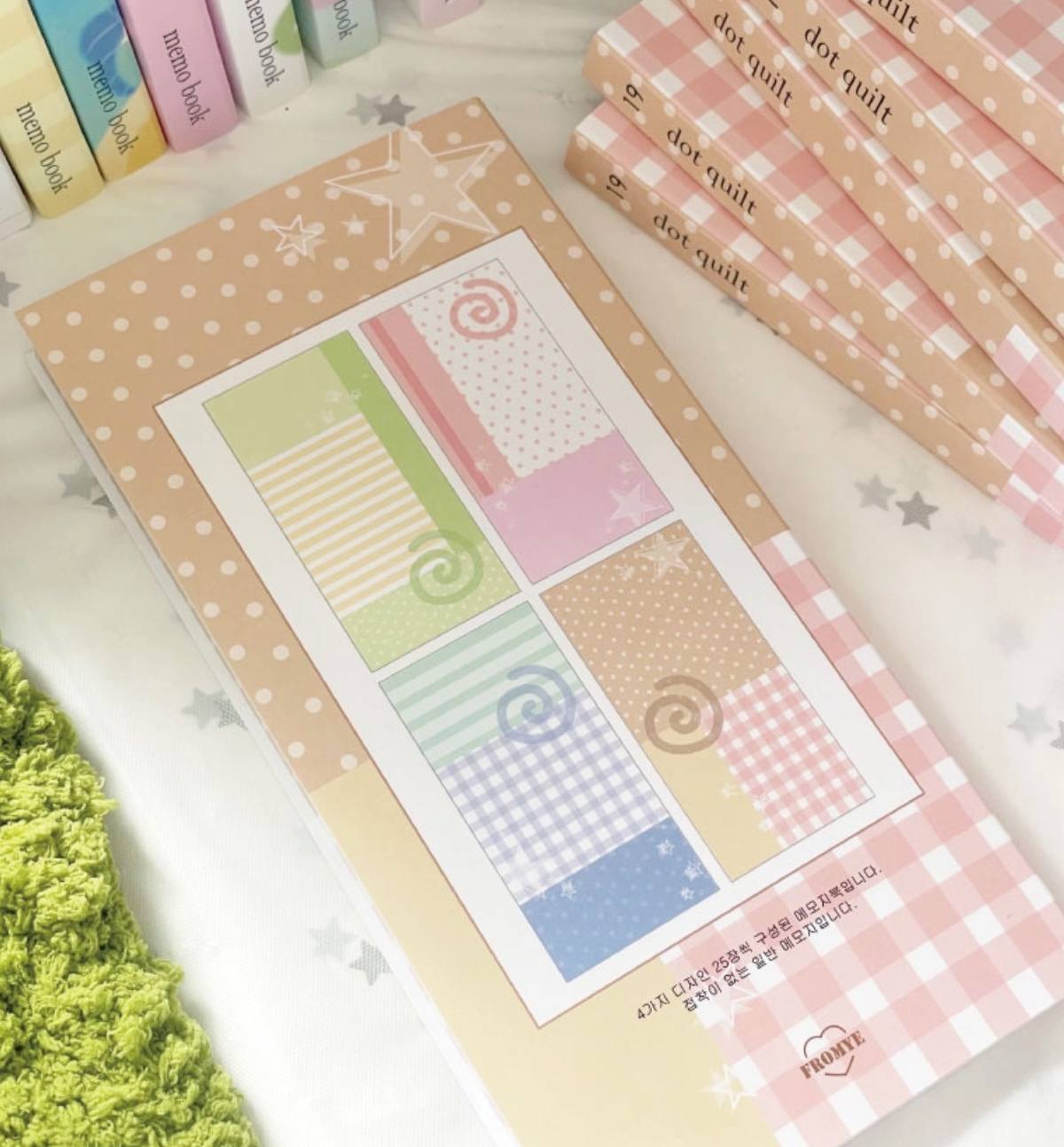 - Quantity: 1 Memobook Ver. 19 [Dot Patch] | 100 sheets [4 designs x 25 sheets]