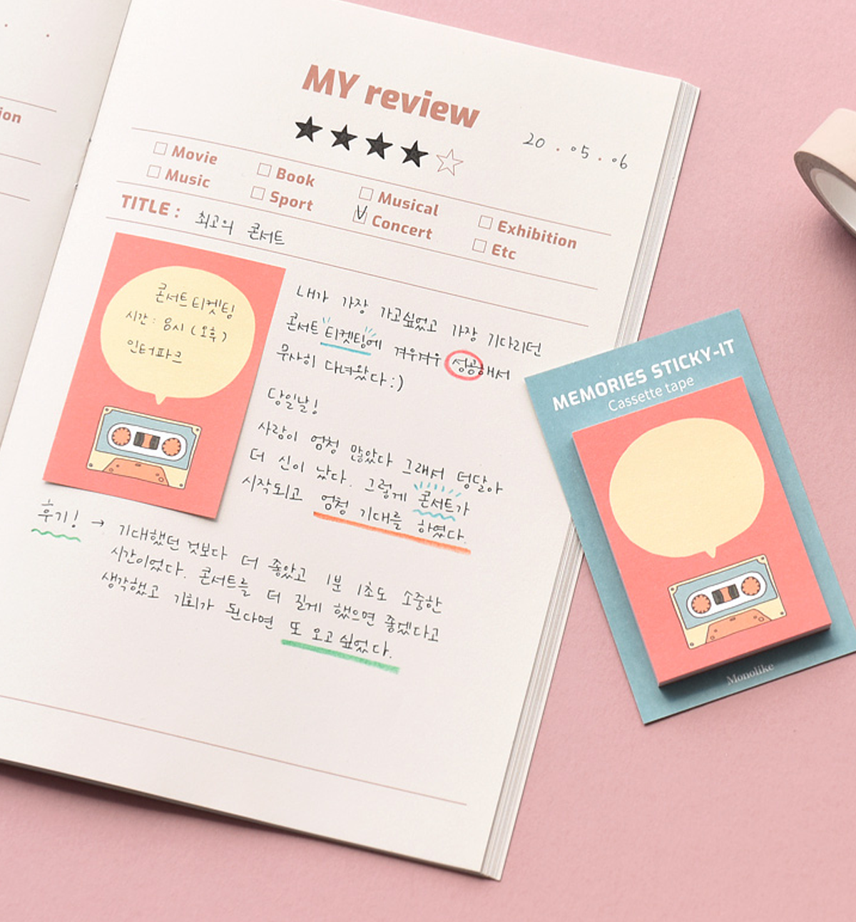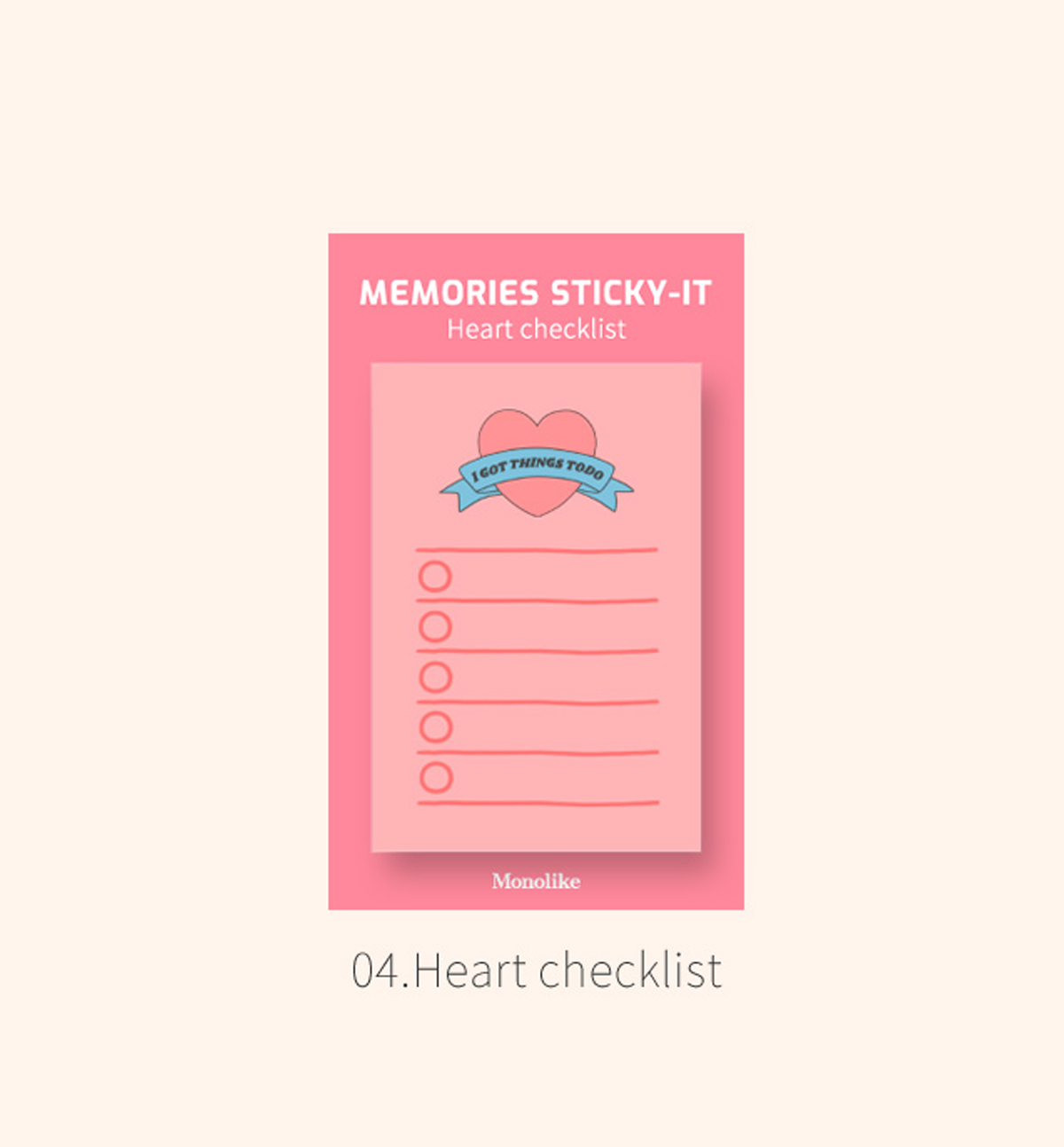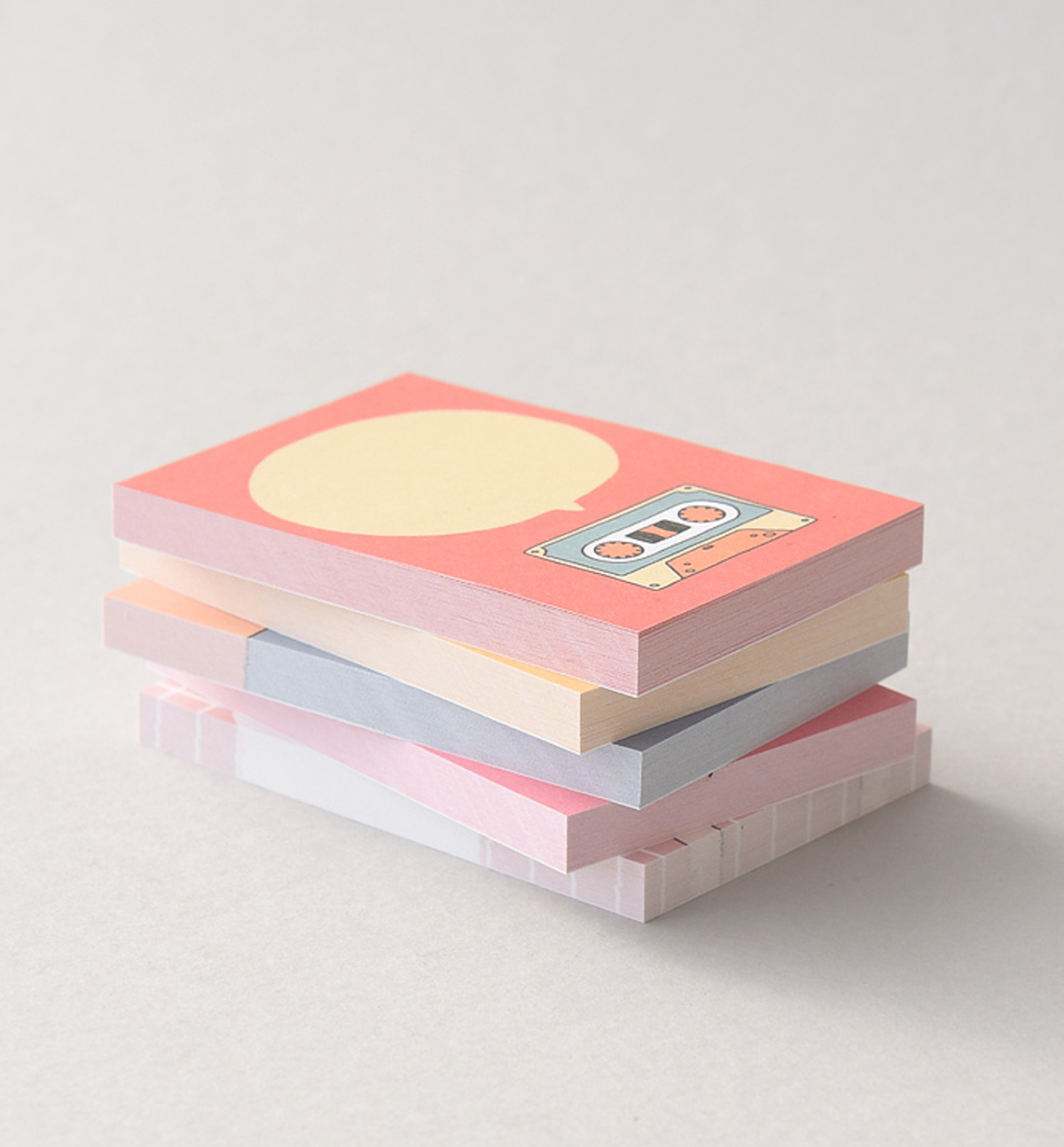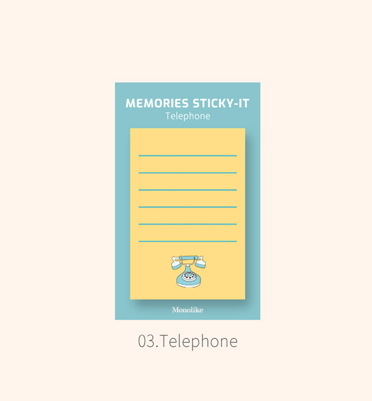 This beautiful sticky notes comes in 6 different colors: 01. Board, 02. Cassette Tape, 03. Telephone, 04. Heart Checklist and 05. Finger Heart. Please, see pictures for reference.