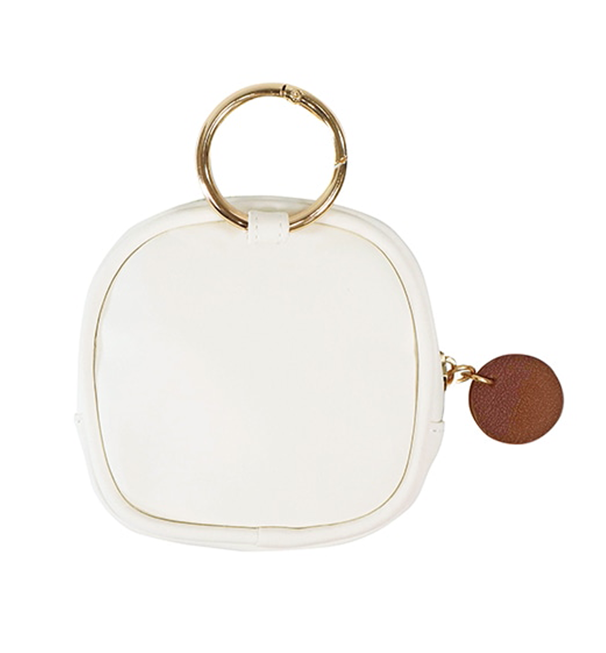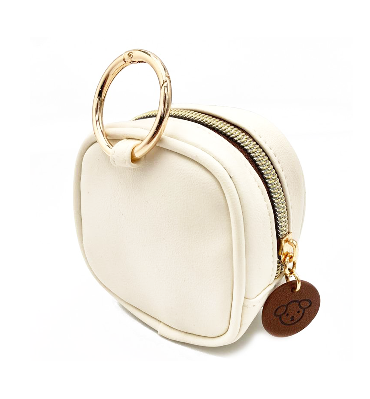 A pouch with cute patches. The patches are rapier woven, and the pull tab and back logo are embossed on PU variable faux leather fabric.