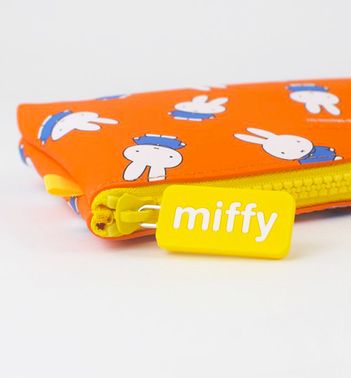 A zipper pouch with Miffy pattern on vibrant colors. It can also be used as a travel pouch or cosmetic pouch. It repels waters, so it's great for the gym, pool or beach!