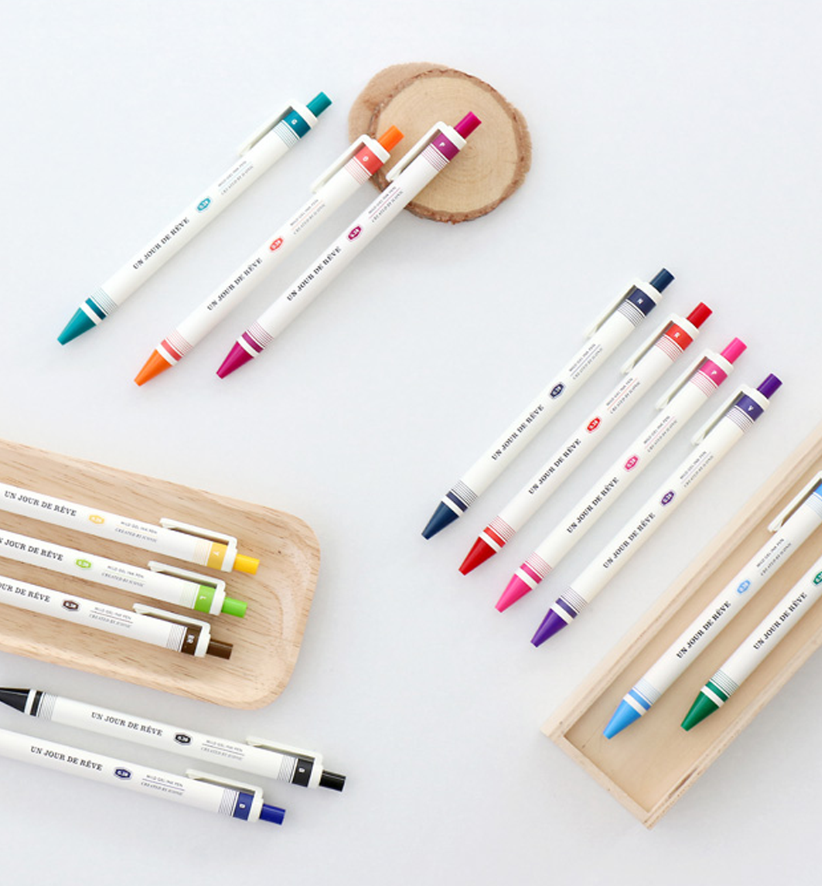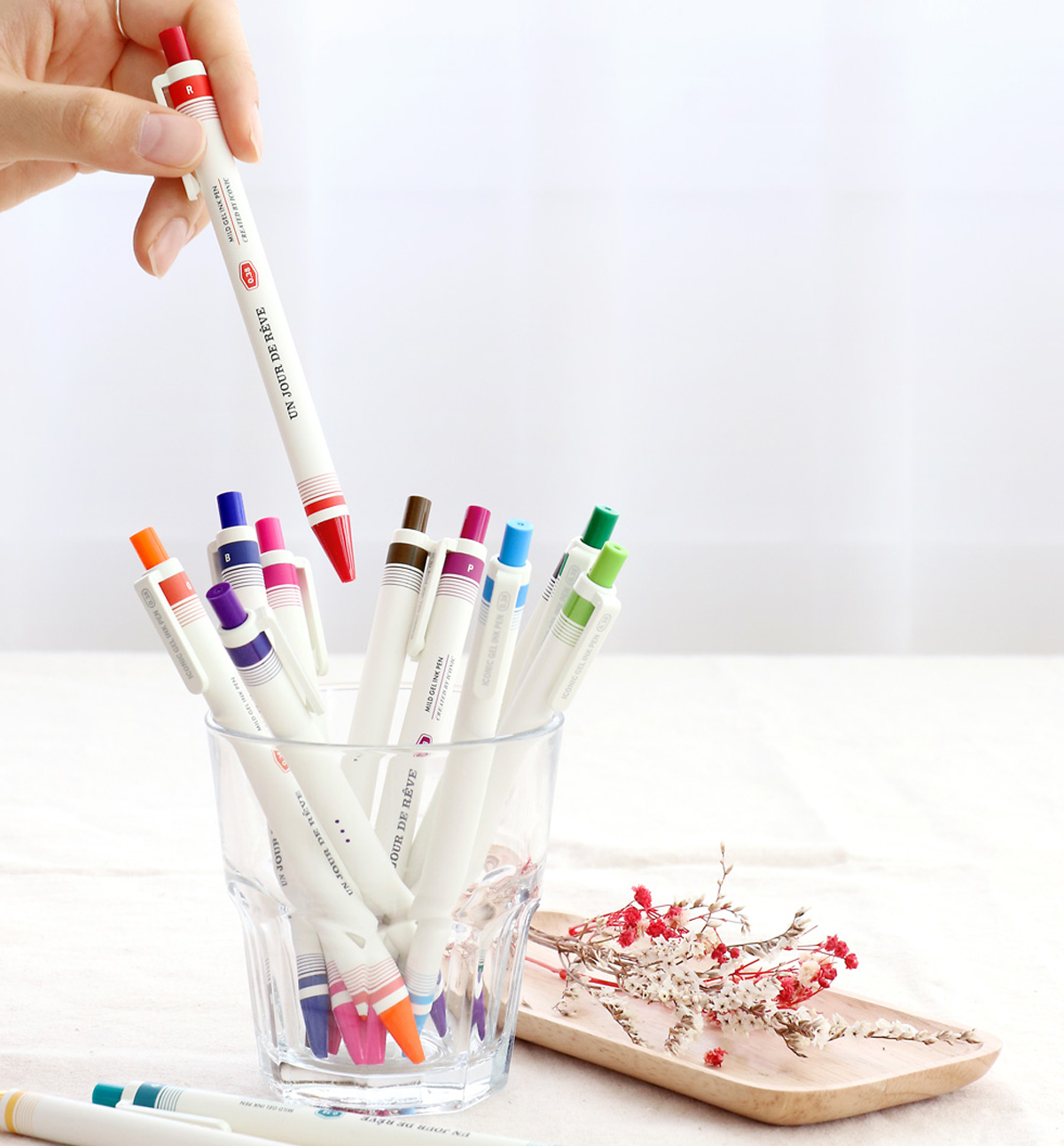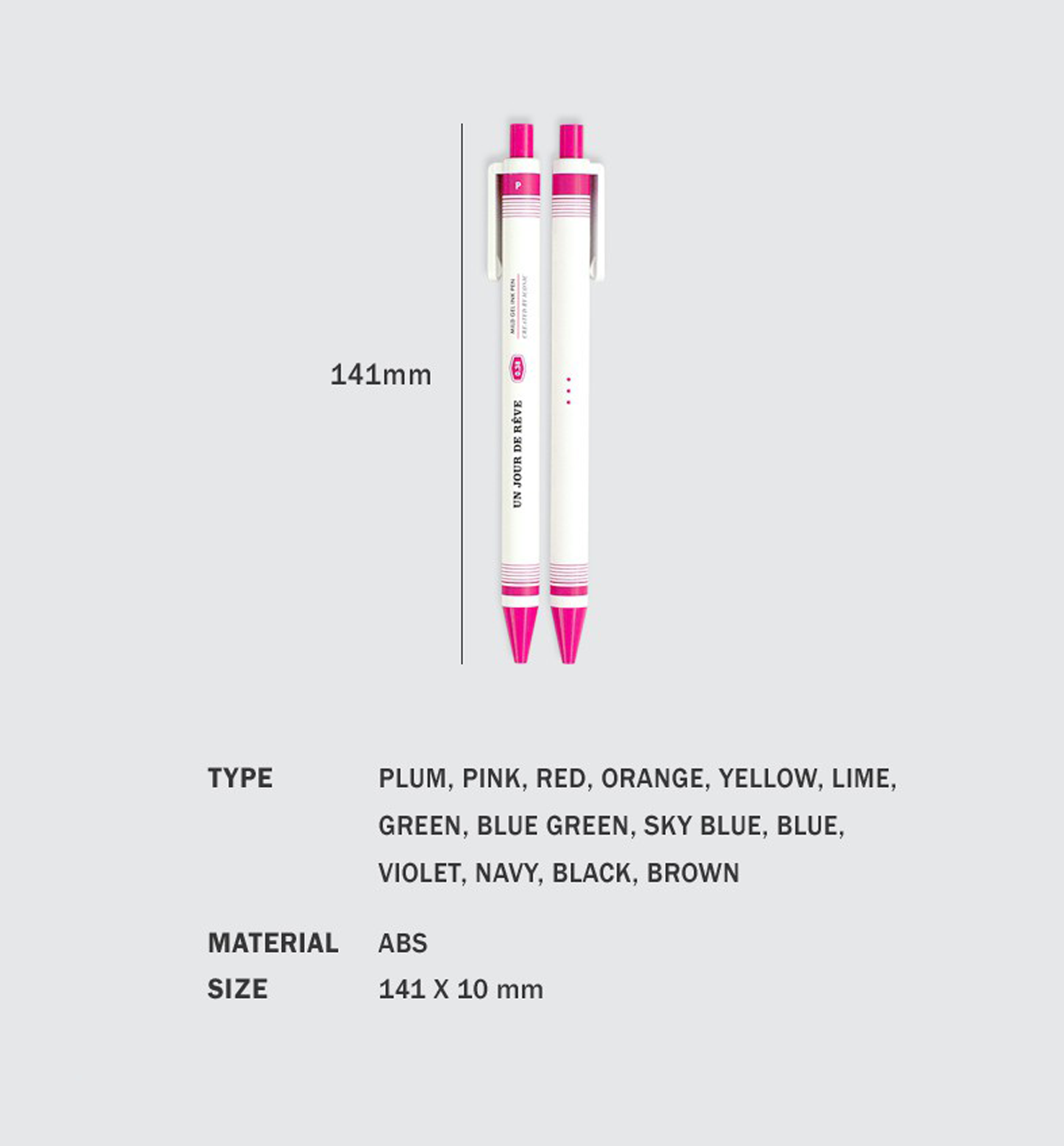 This beautiful pens comes in 14 different colors: Plum, Pink, Red, Orange, Yellow, Lime, Green, Blue Green, Sky Blue, Blue, Violet, Navy, Black and Brown.