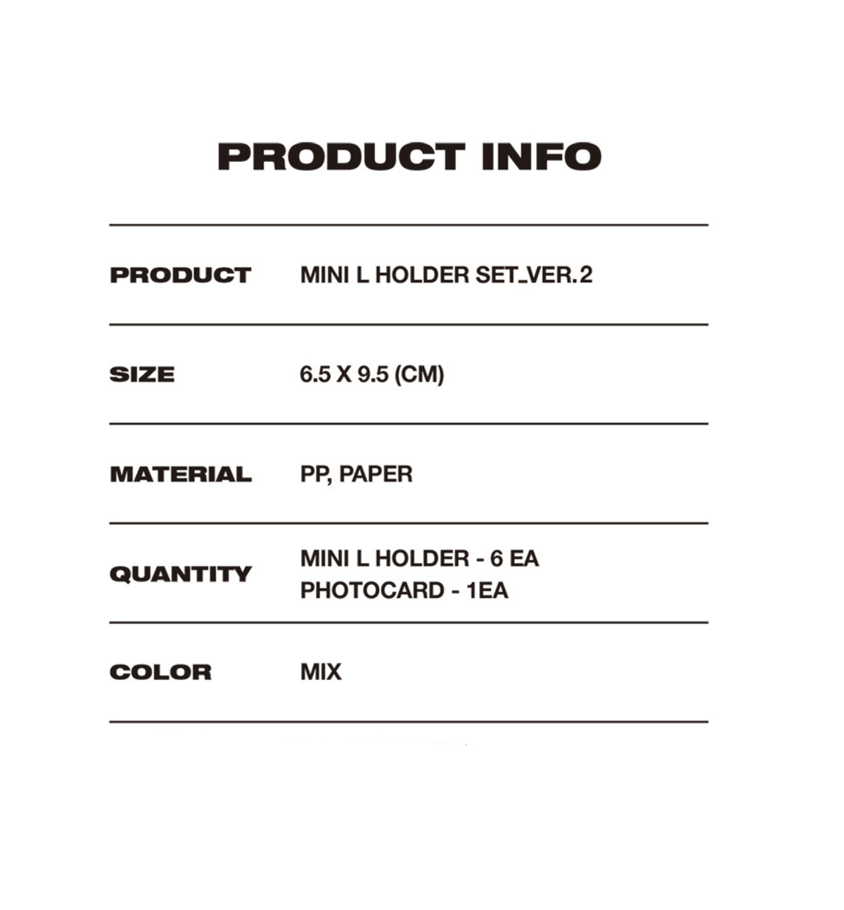 You will get 6 mini L Hholders and one photocard [Cat]. As it shows in the pictures.
