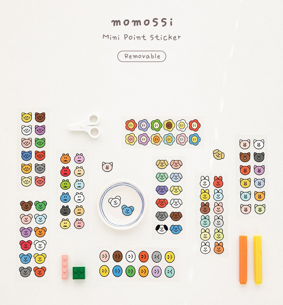 This beautiful Mini Removal Stickers comes in 8 different designs: Momossi, Bear, Rabbit, Cat, Dog, Flower, Squirrel and Pig.
