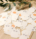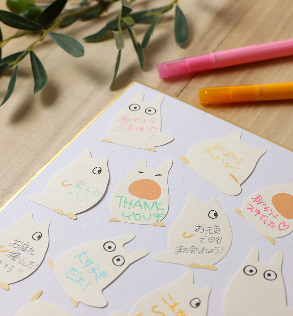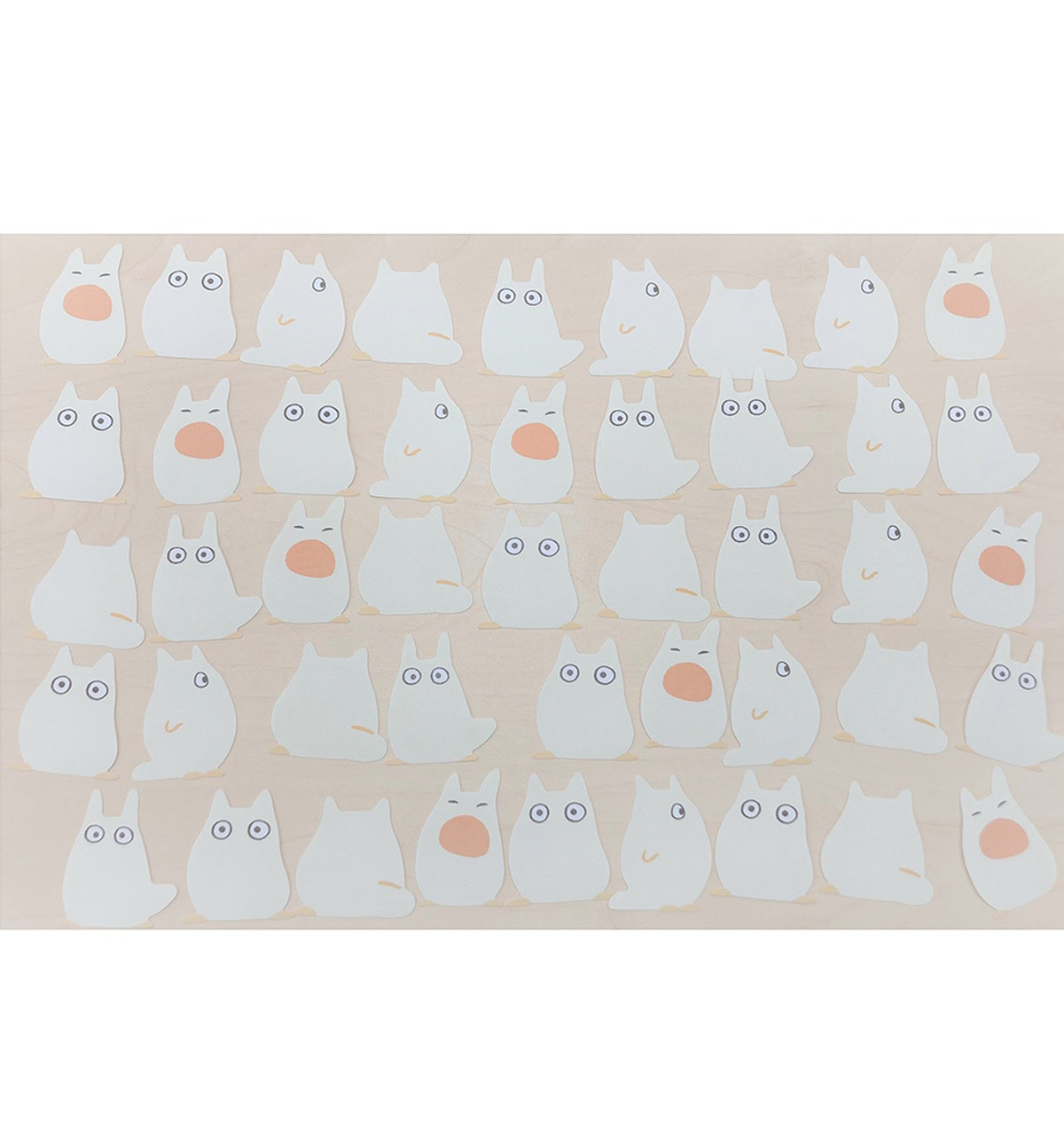 Pack of flake stickers of the small white Totoro from My Neighbor Totoro. There are a total of five different expressions and designs of the small Totoros. Small messages can be written on the stickers with pen and pencil, making these stickers great for journals and albums