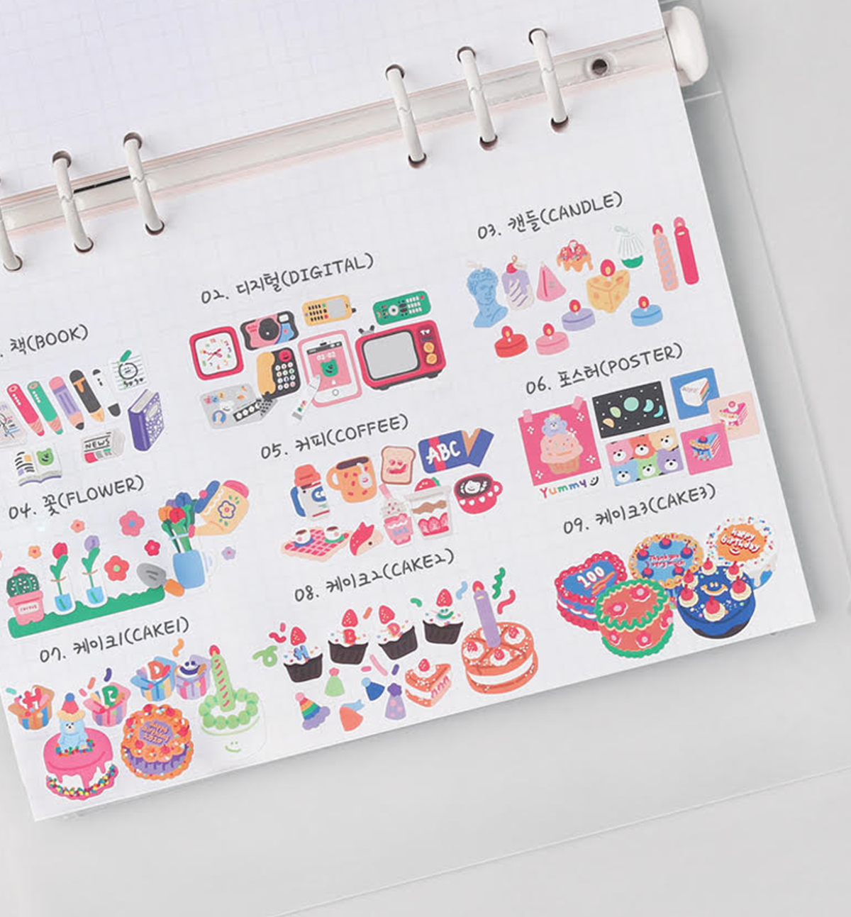 This beautiful Seal Stickers Deco comes in 9 different designs: 01. Book, 02. Digital, 03. Candle, 04. Flower, 05. Coffee, 06. Poster, 07. Cake1, 08. Cake2 and 09. Cake3.