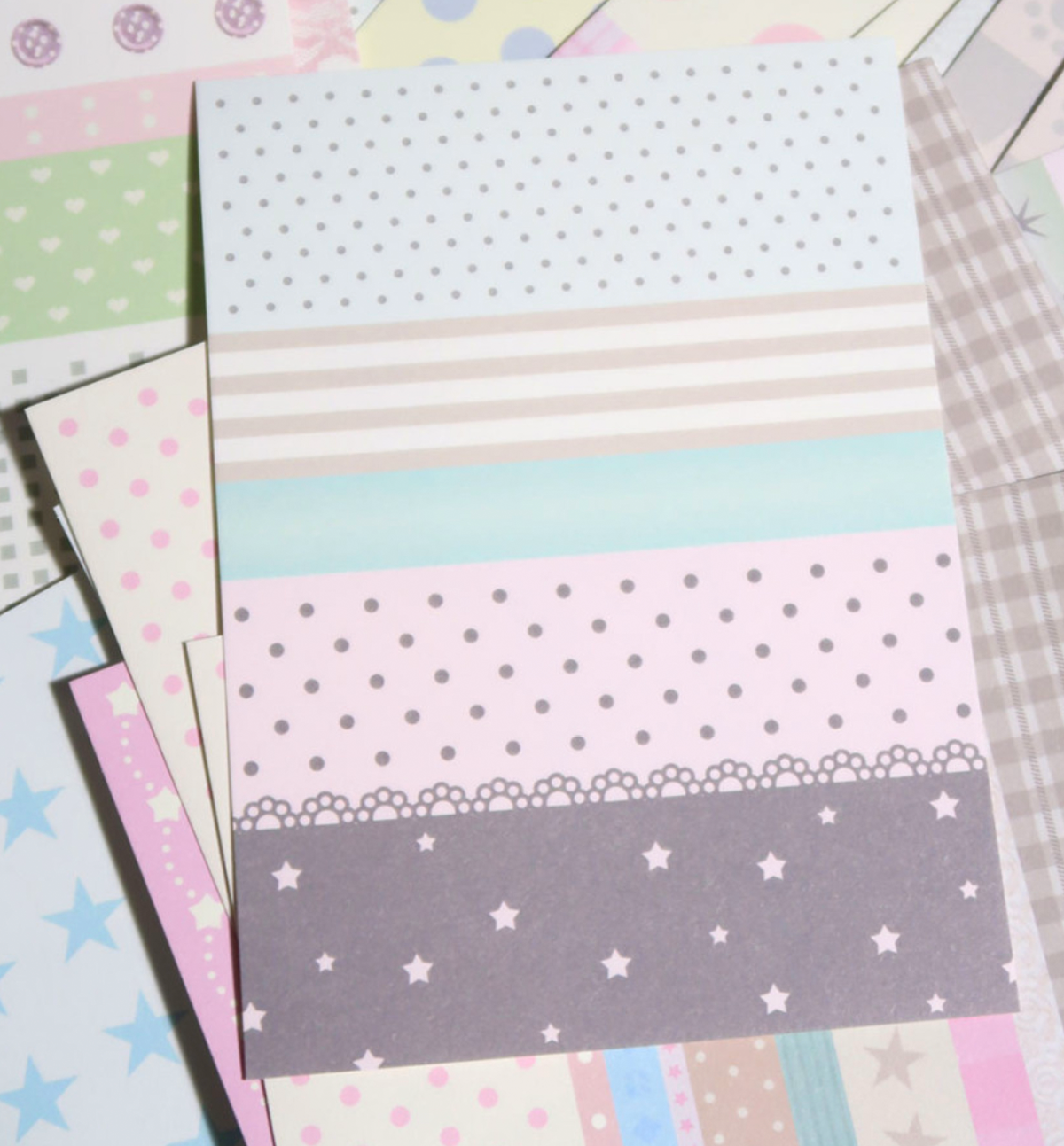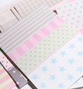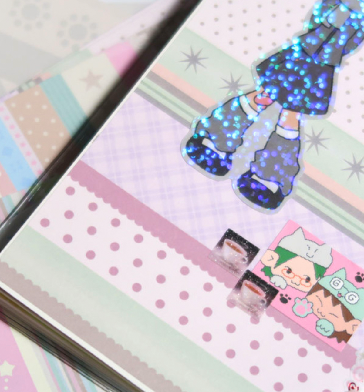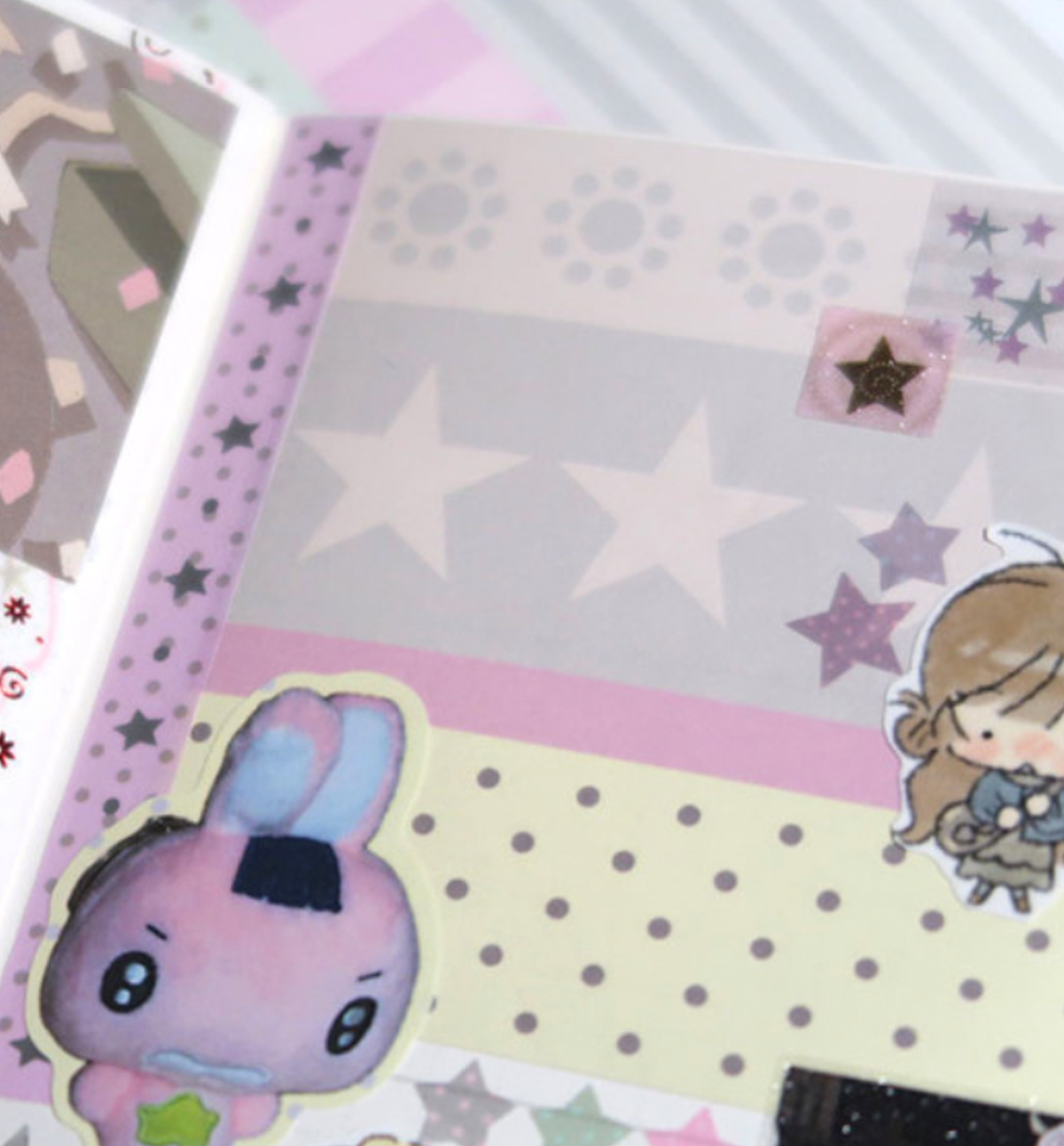 A versatile sticker set featuring layout elements and patterned designs with cute graphics. Perfect for diaries, scrapbooks, and DIY projects. Easy to write on, they add depth and charm to any page.