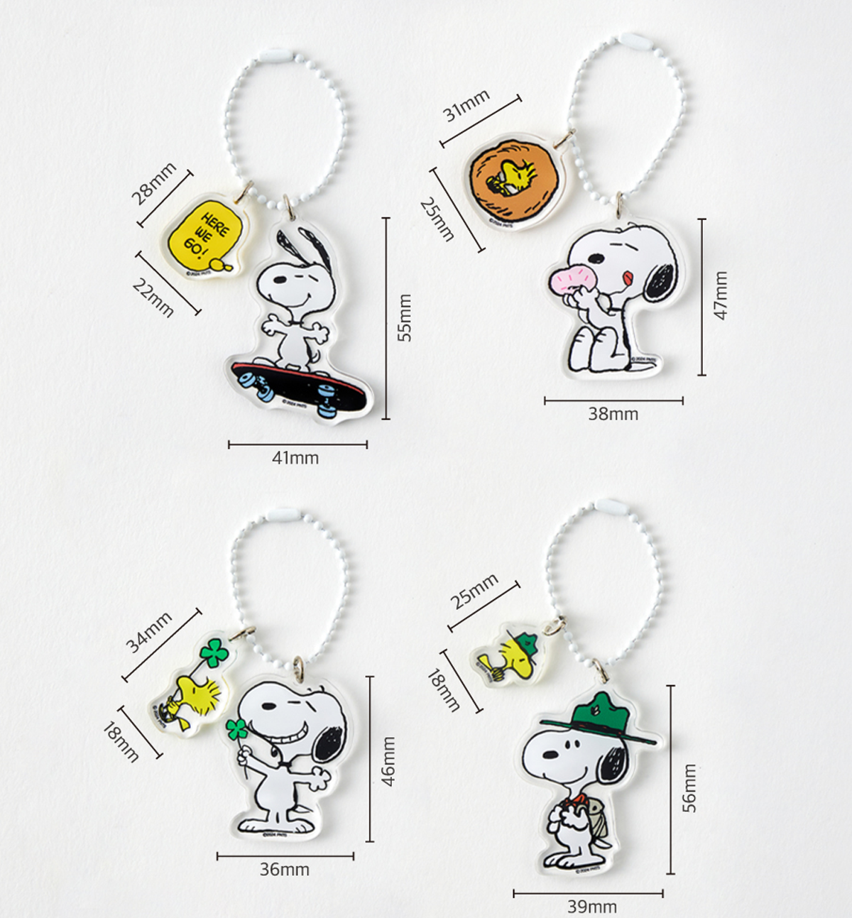 - Quantity: 1 Peanuts Snoopy Acrylic Keyrings