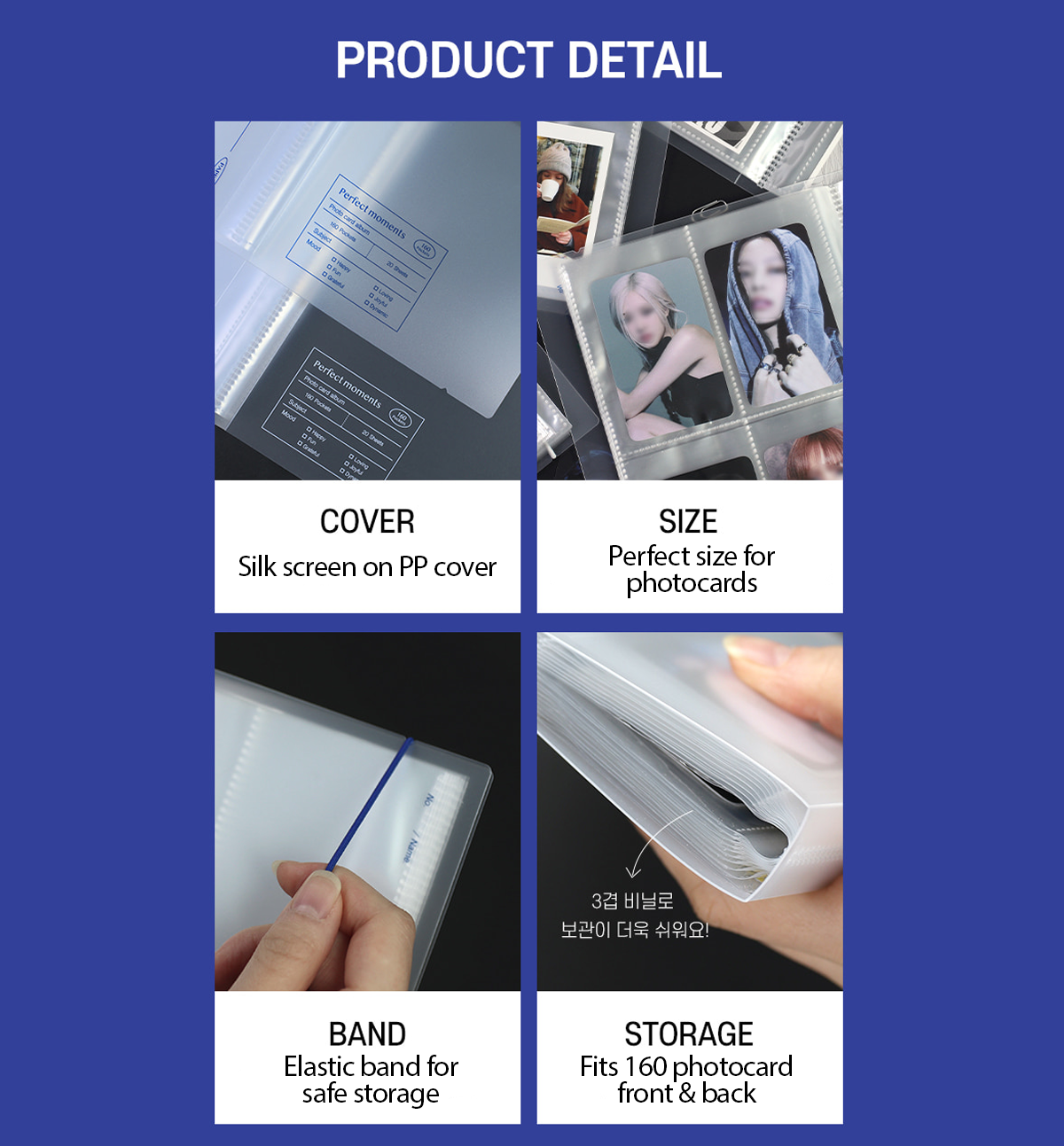 • Quantity: 1 Perfect Moment Pocket Photocard Collect Book [Double Sided] | 40 pages = 20 sheets | Fits 160 photocards | HIGH DURABILITY