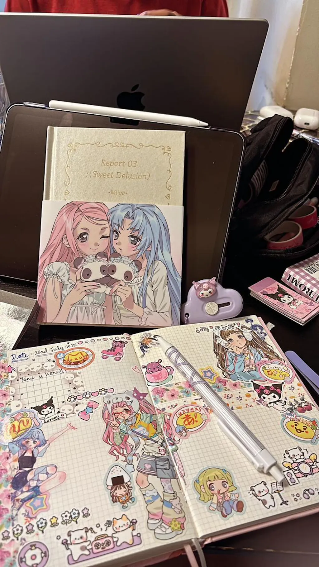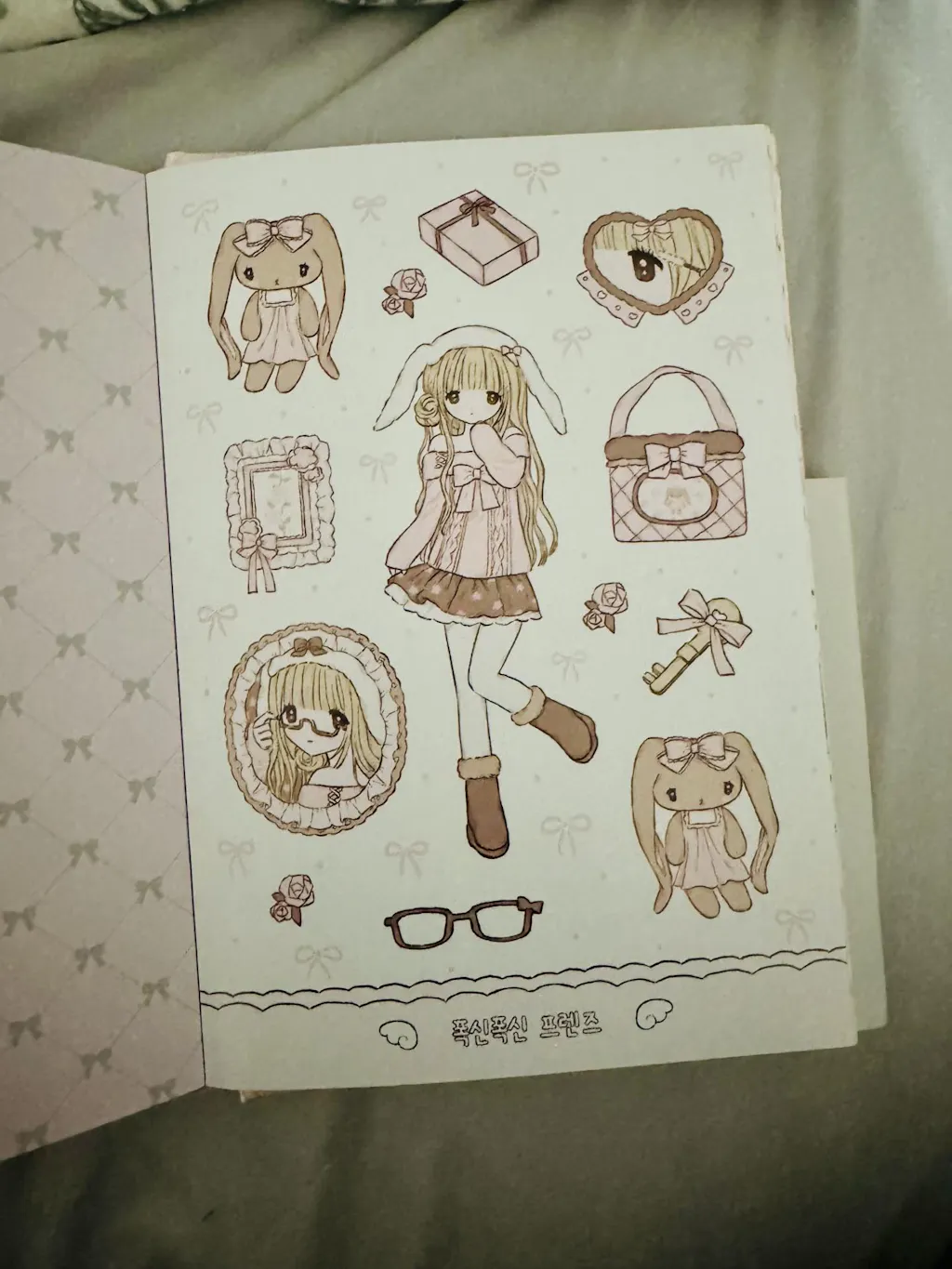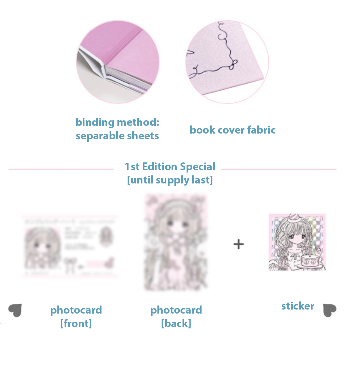 A special edition of luxurious harcover book with a cloth cover finish, consisting of 32 color sticker sheets [4 coated sticker sheets] and 4 postcards [paper].