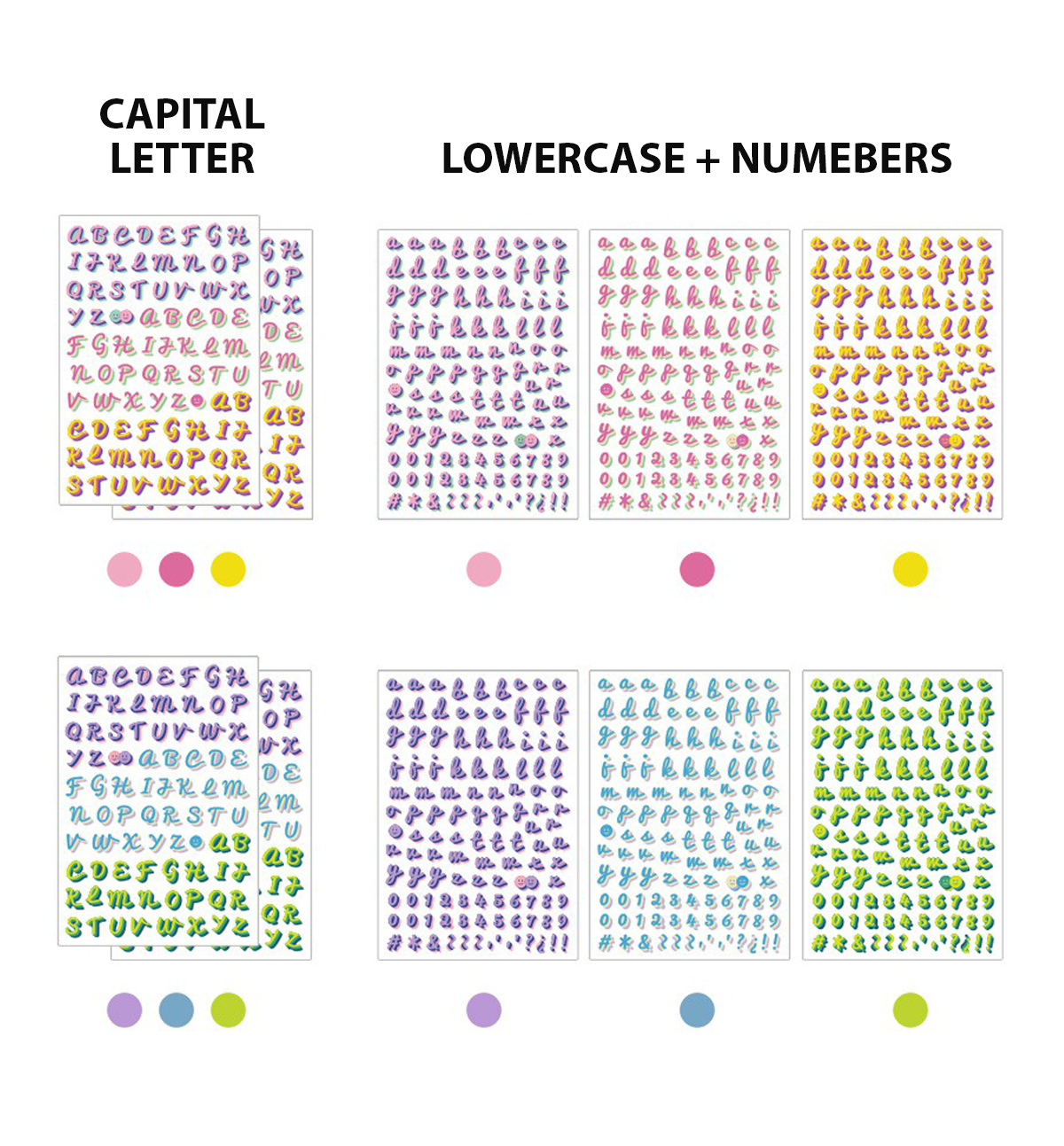 Quantity: 10 sticker sheets [4 sheets capital letter and 6 sheets lowercase]