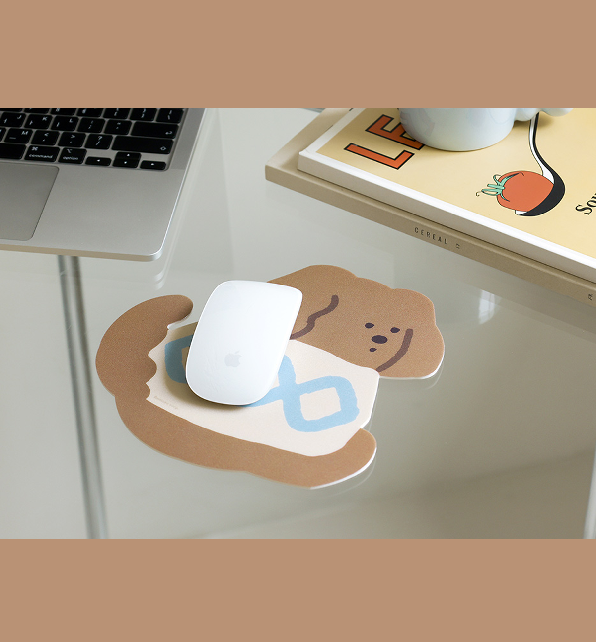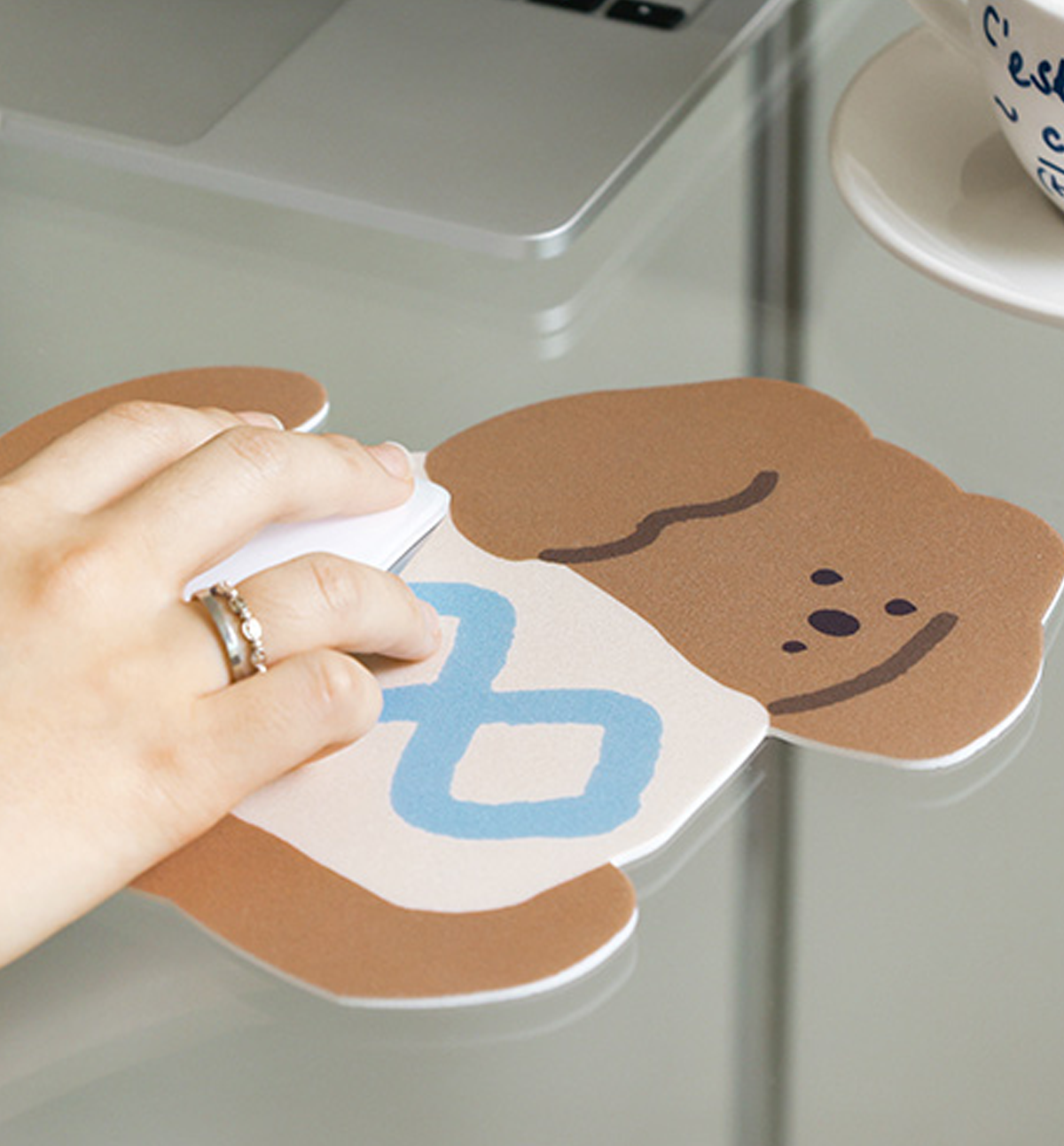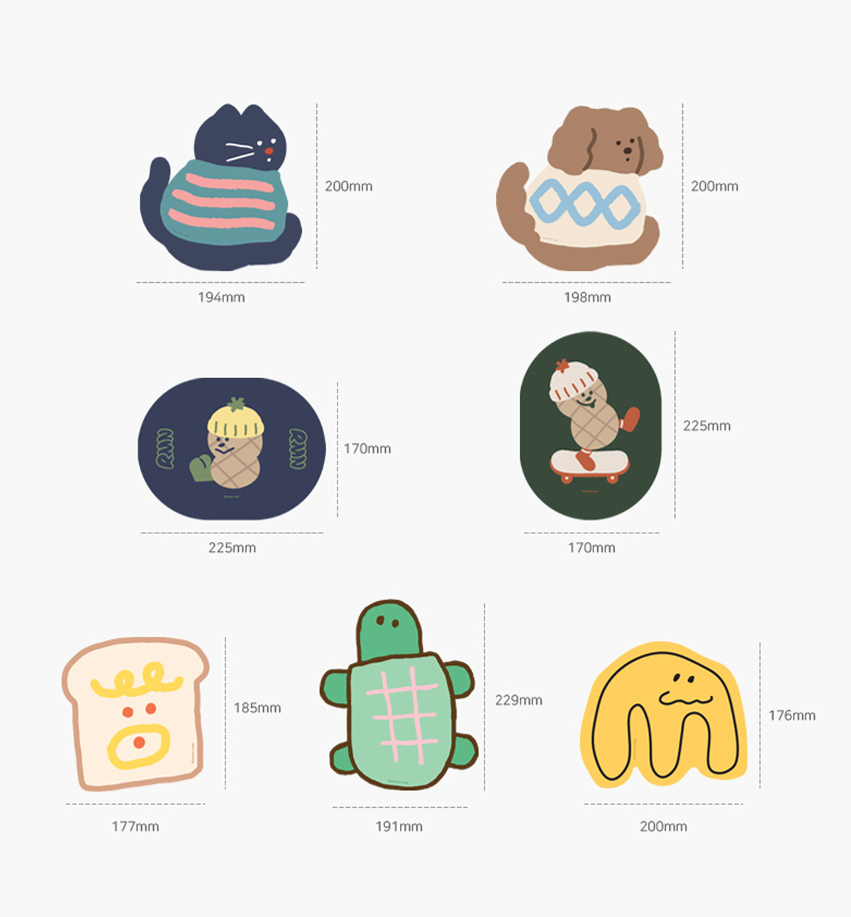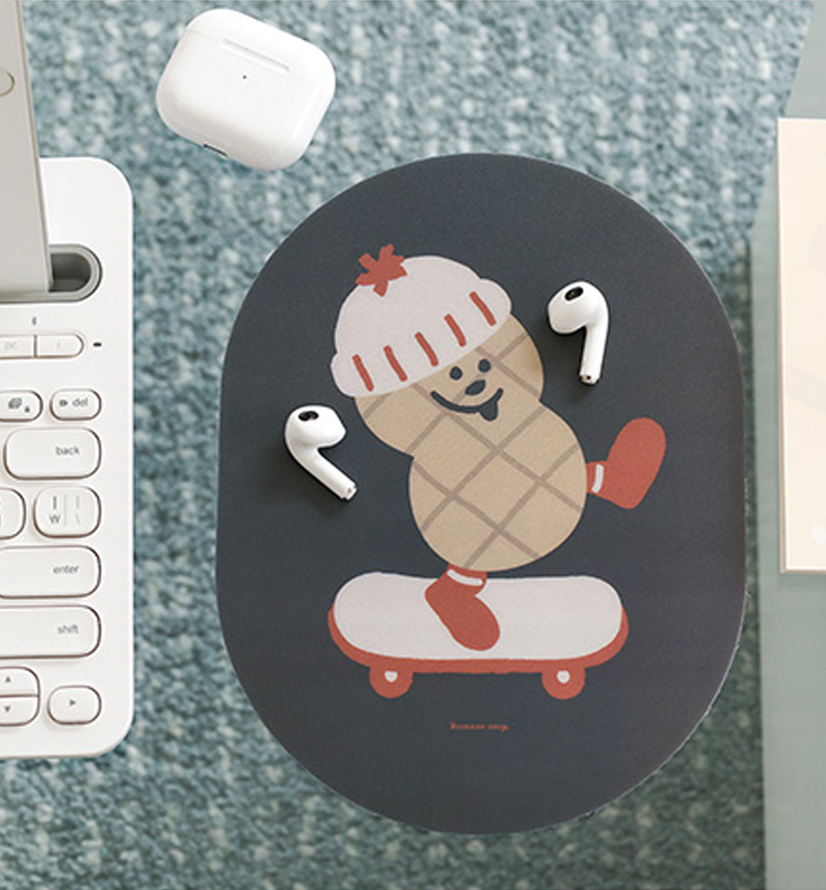 A mousepad with cute illustrations printed on it. The PVC material gently improves mouse sensitivity. The back side used a foam material to prevent slipping, s you can it stably.