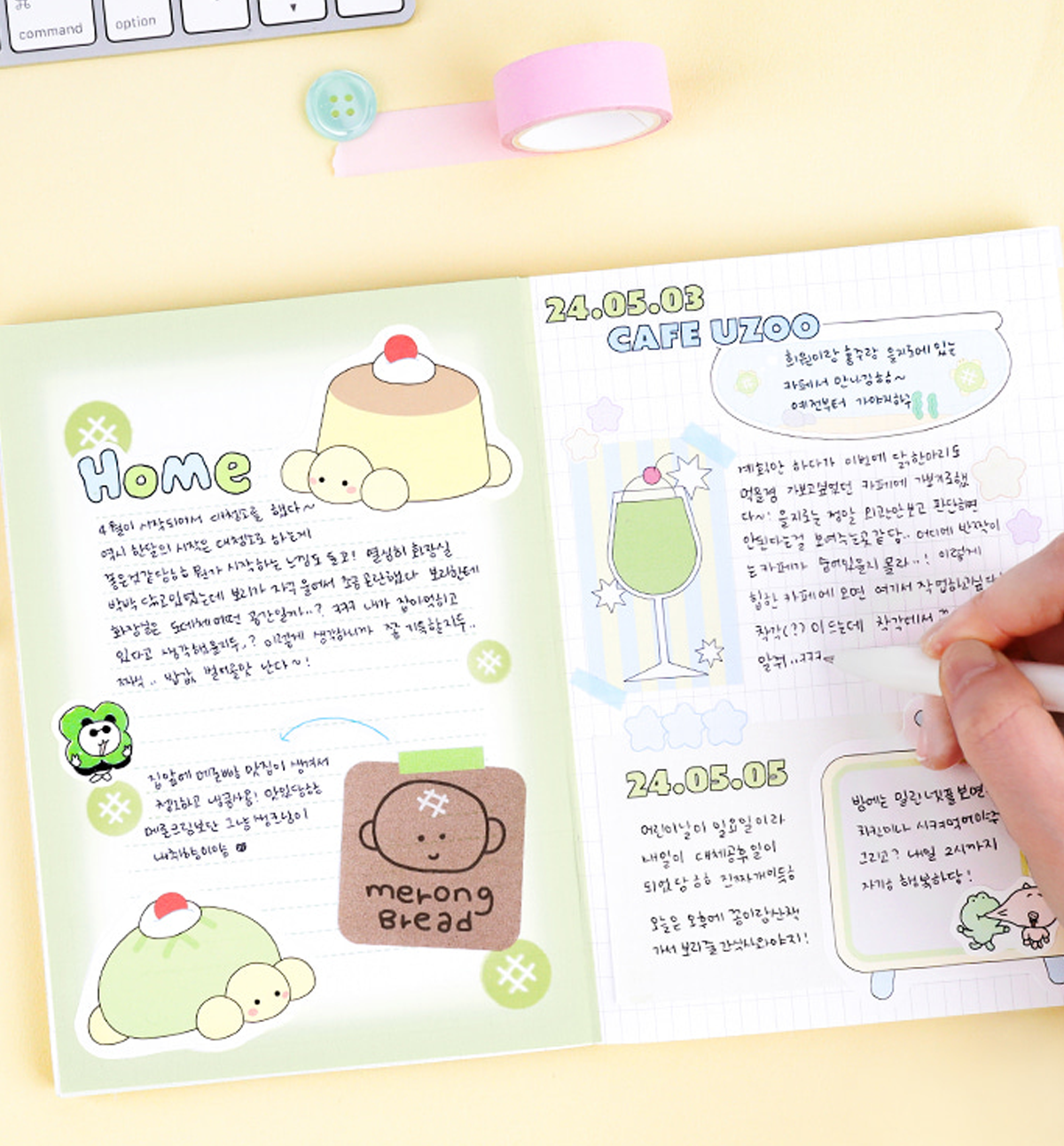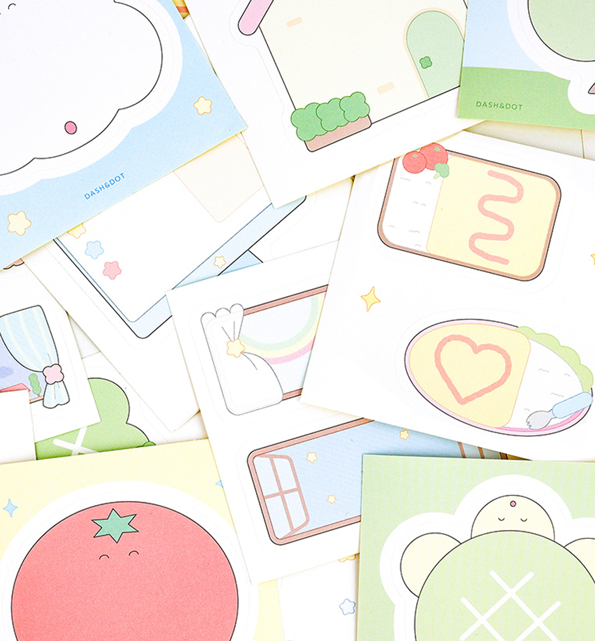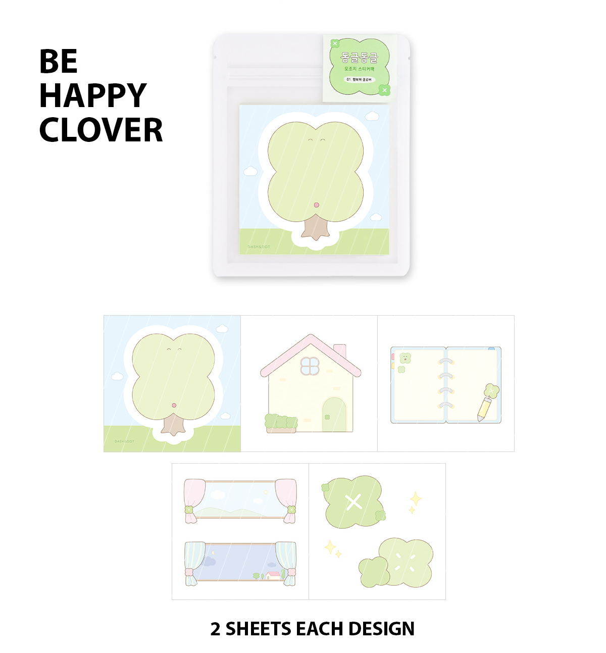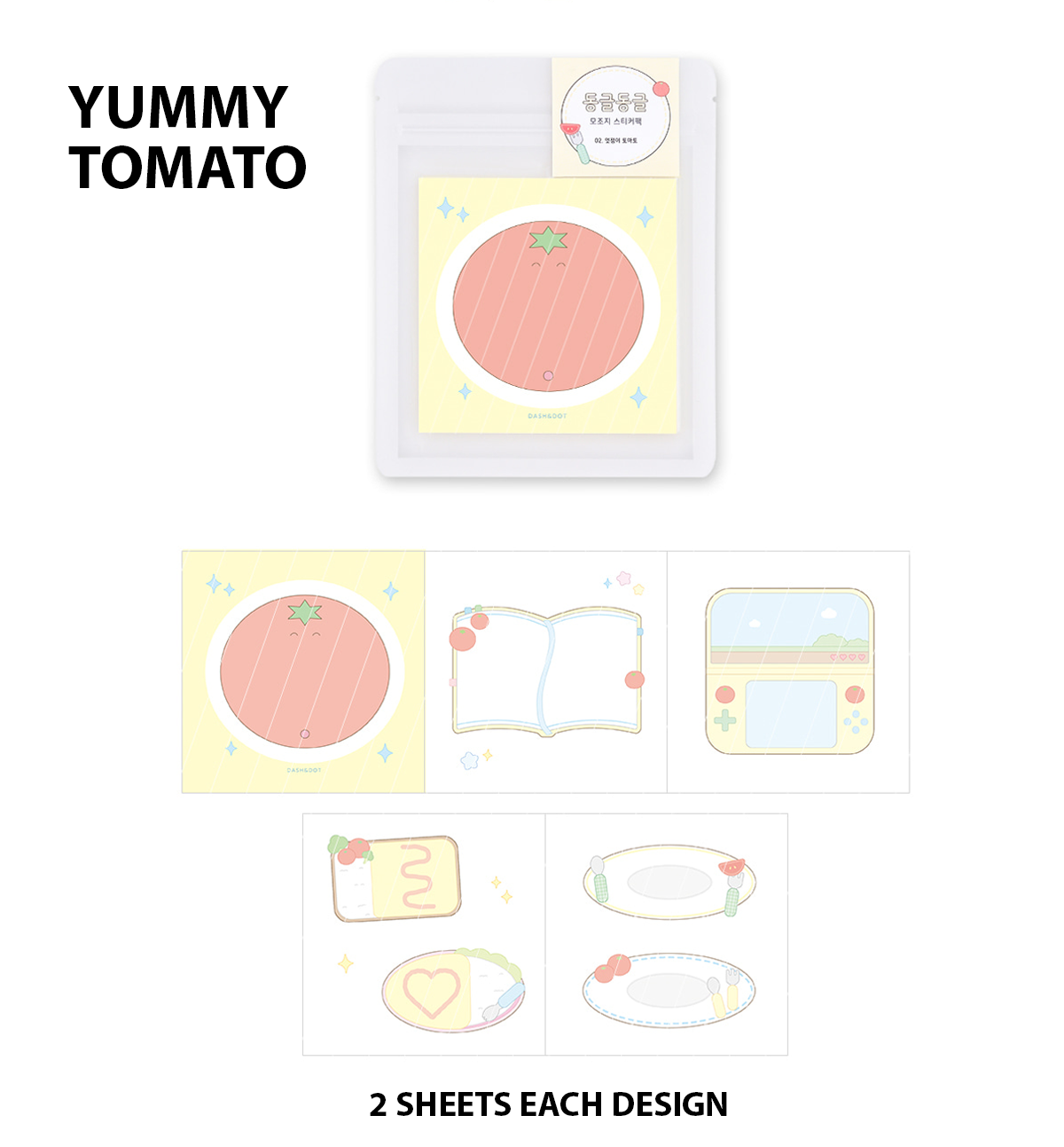This beautiful Round Deco Paper Sticker Pack comes in 4 different designs: Be Happy Clover, Yummy Tomato, Melon Bread and Float Clouds.