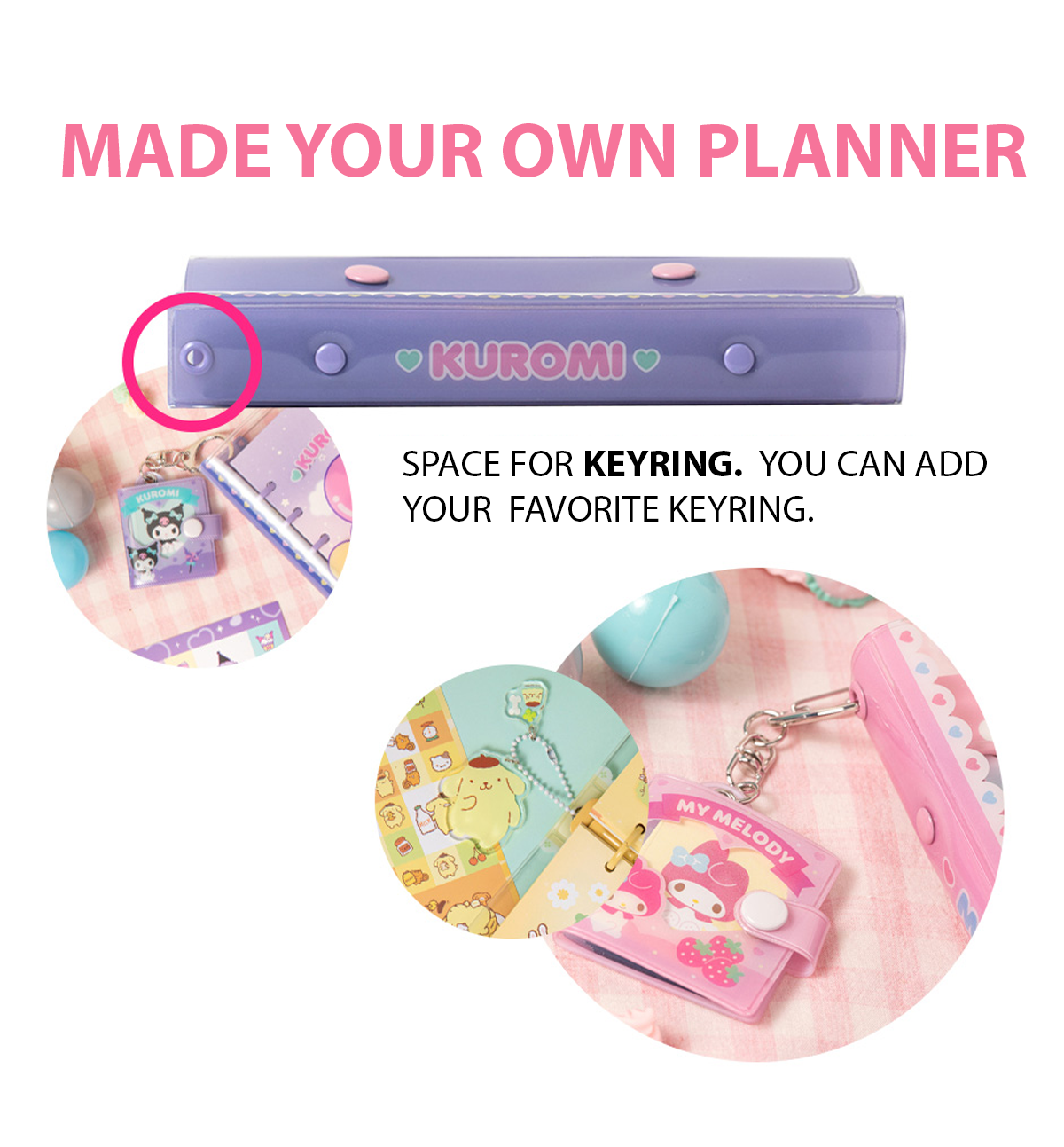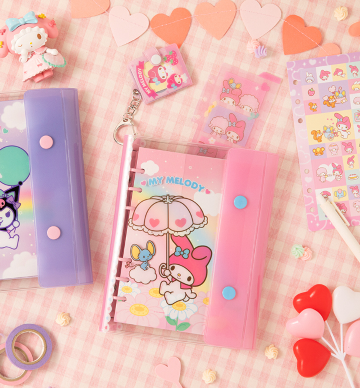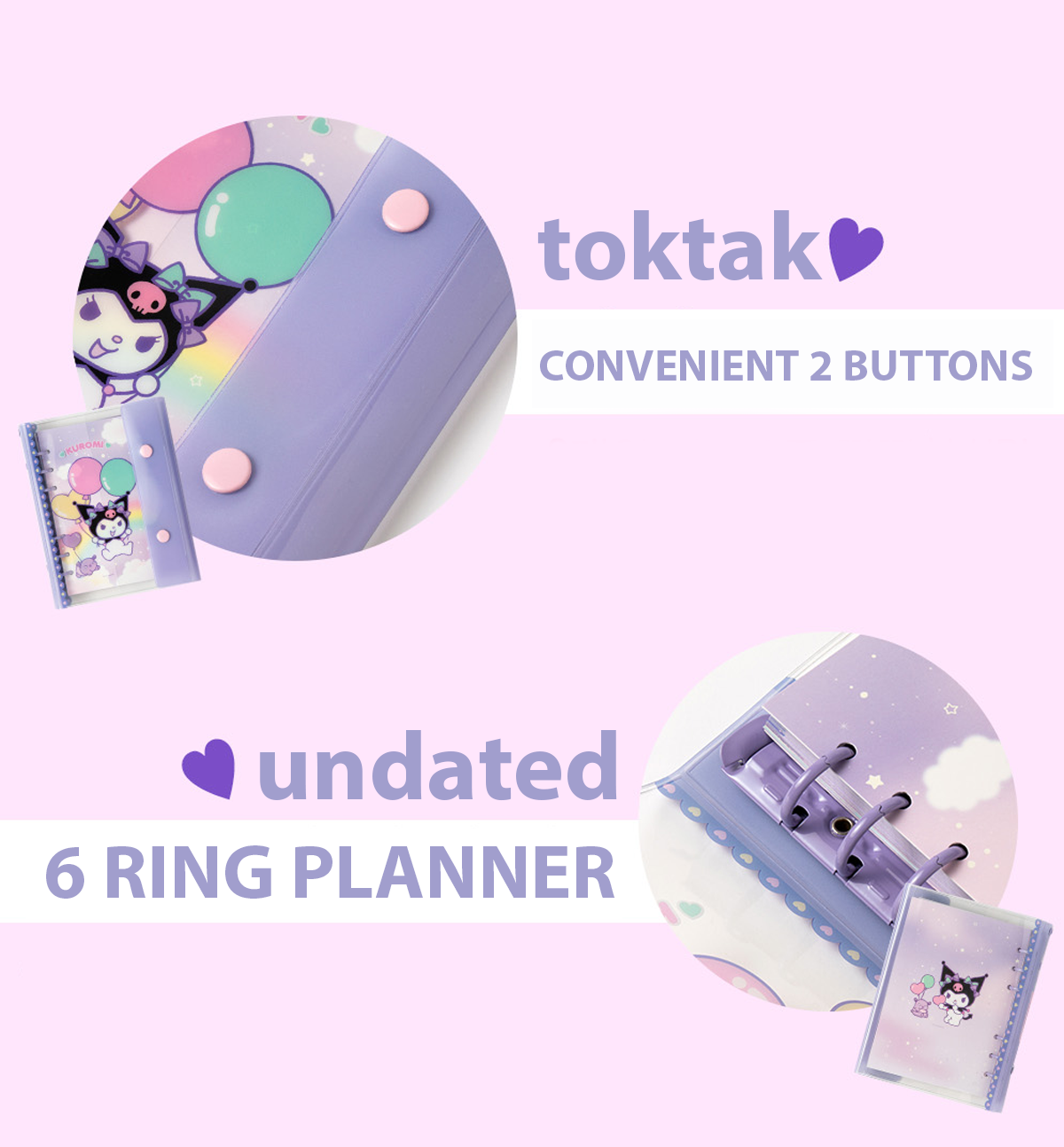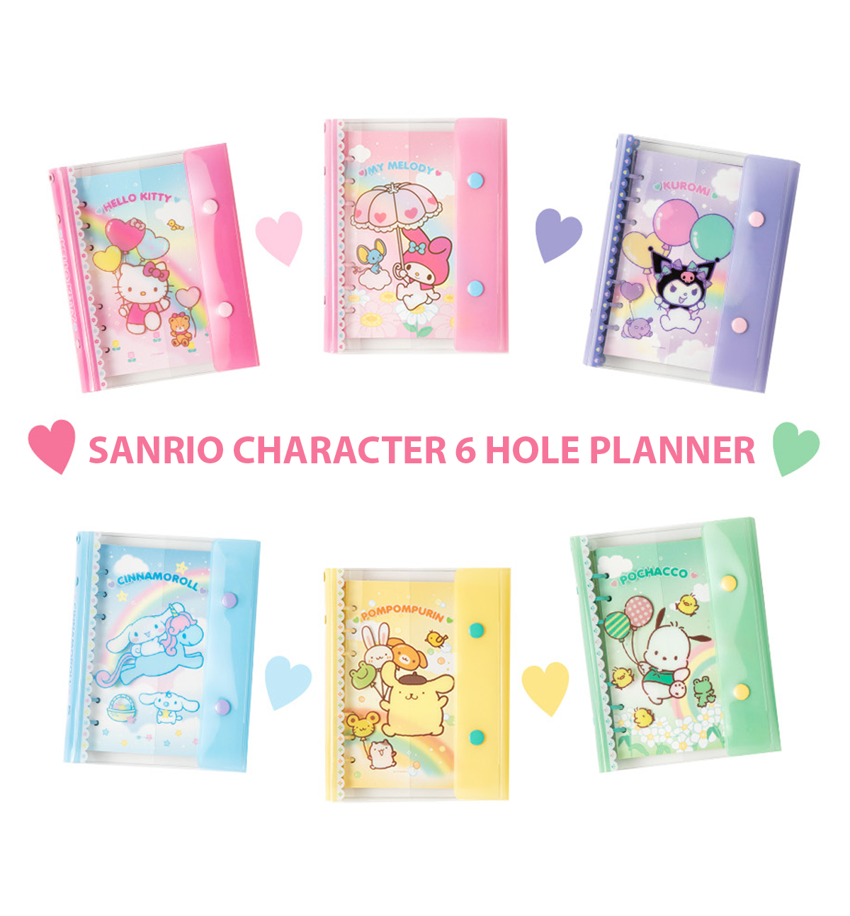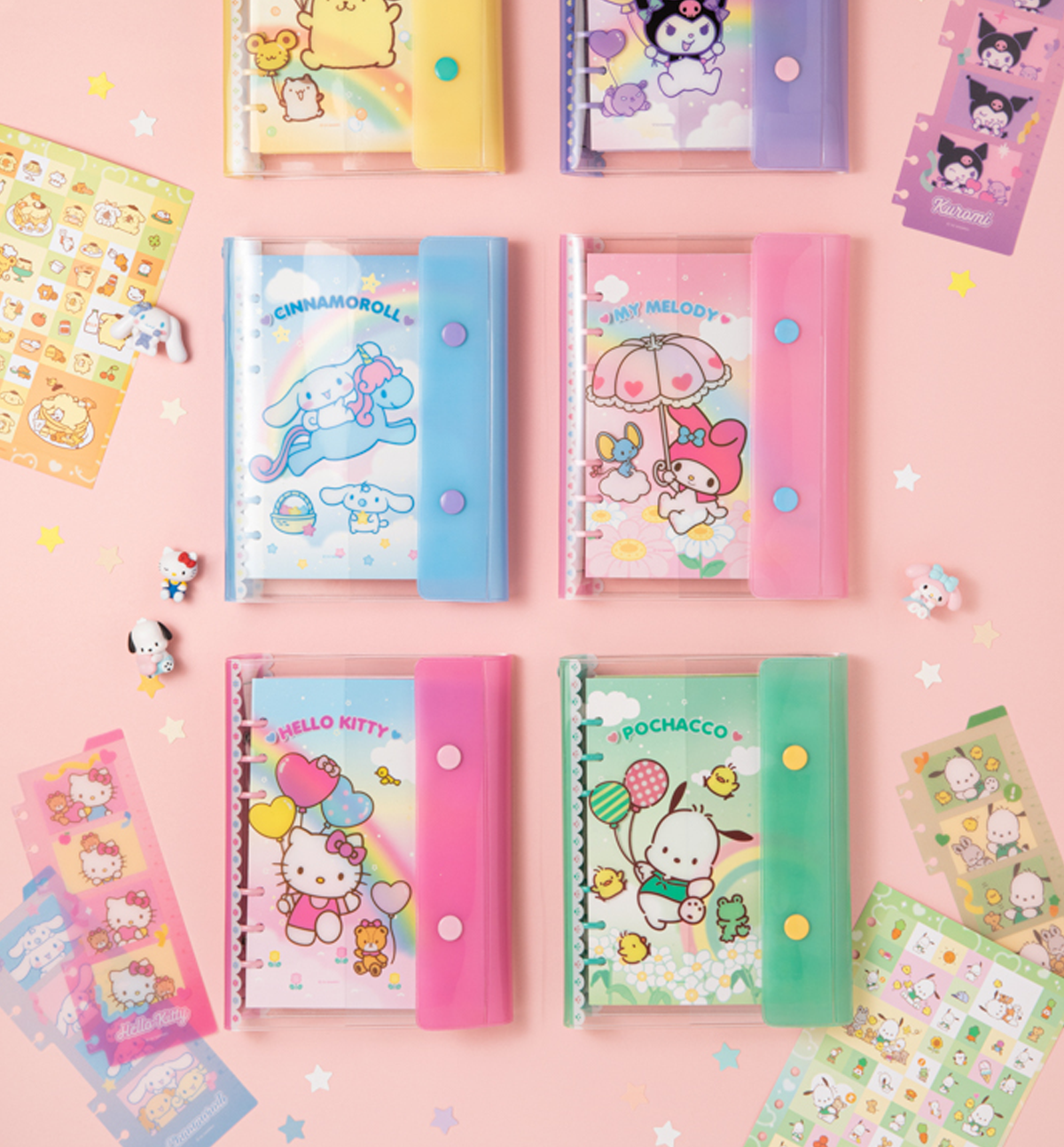 This beautiful Sanrio A6 2 Buttons Planner Binder comes in 6 different designs: Hello Kitty, My Melody, Kuromi, Cinnamoroll, Pompompurin and Pochacco.