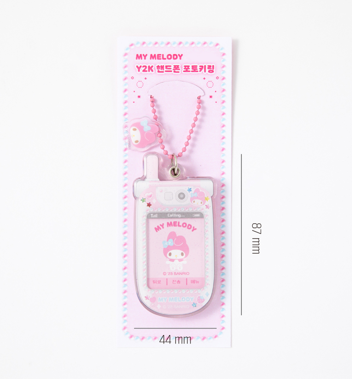 This Sanrio Y2K Phone Photo Keyring Charm [4 Designs] comes in 4 different designs: My Melody, Cinnamoroll, Kuromi and Pochacco.
