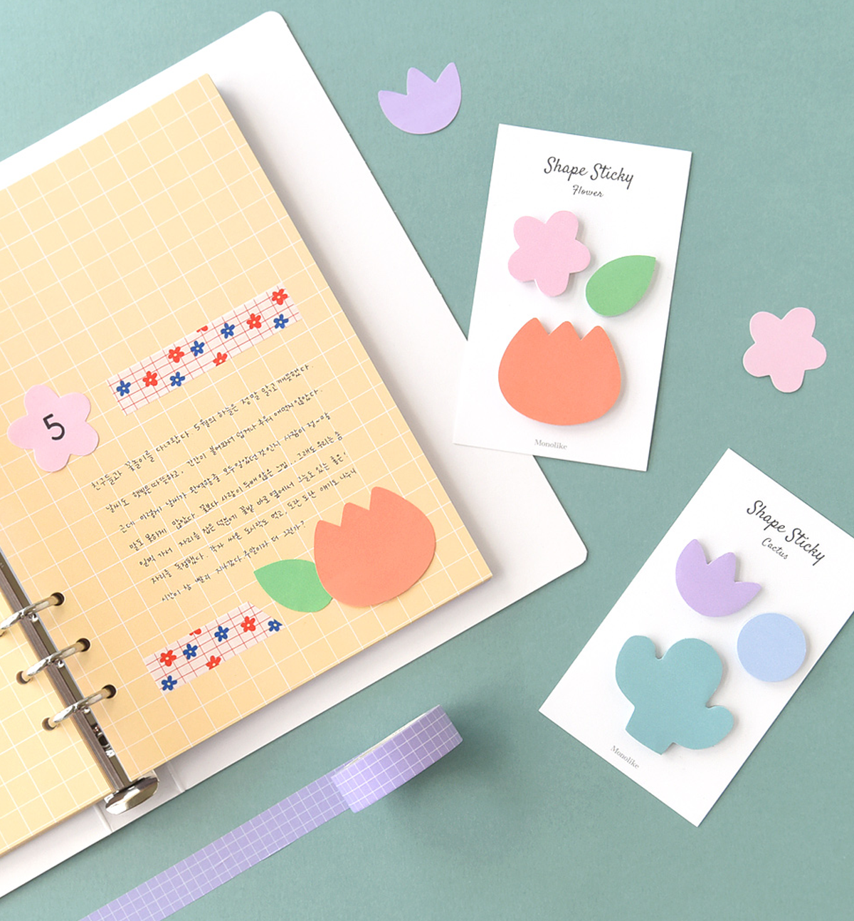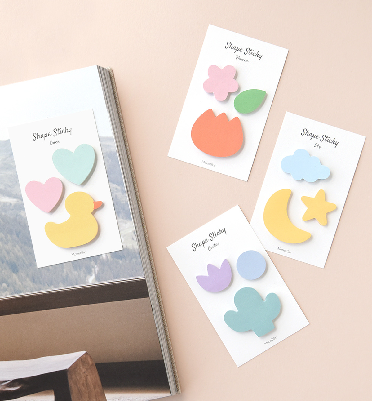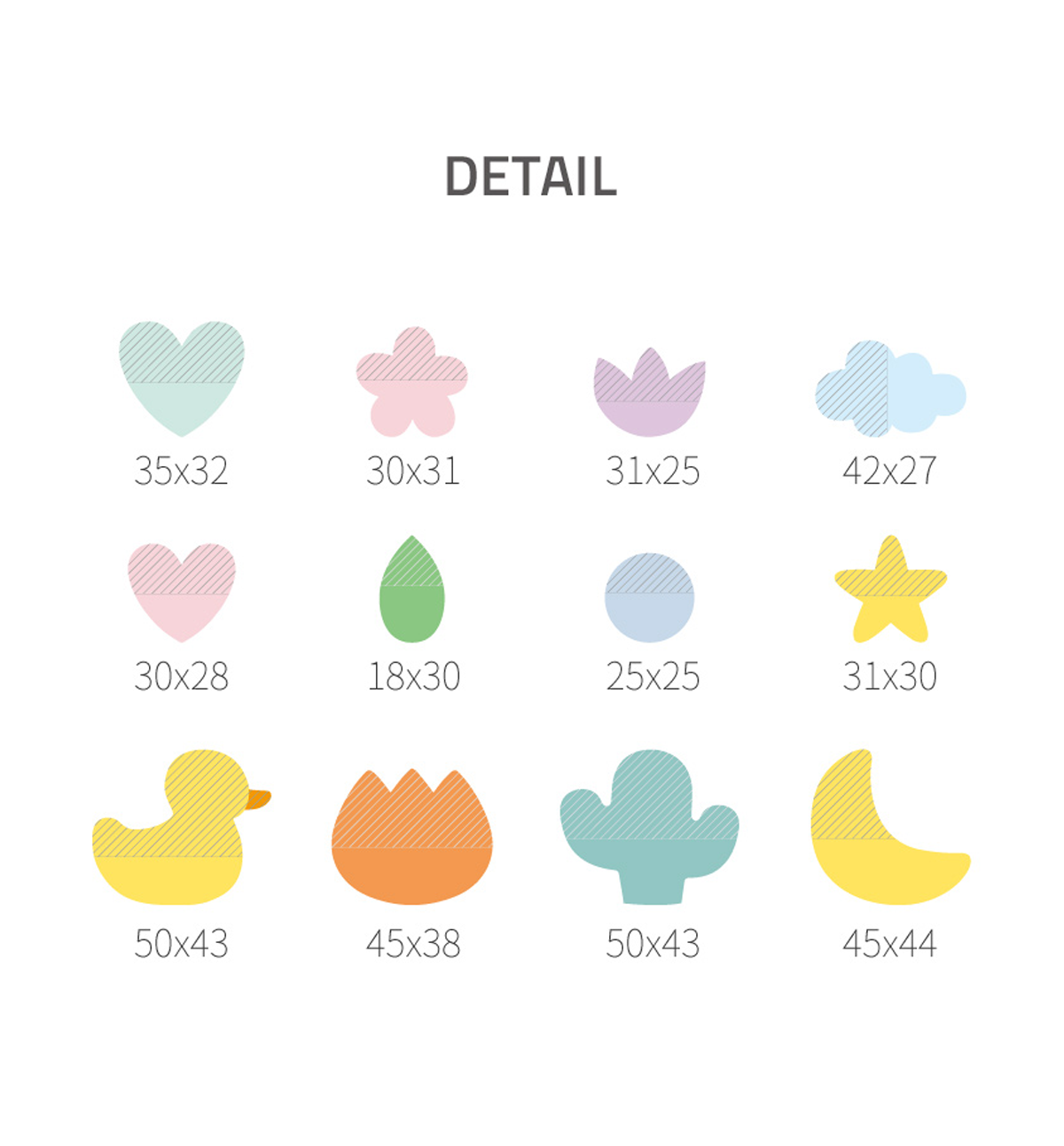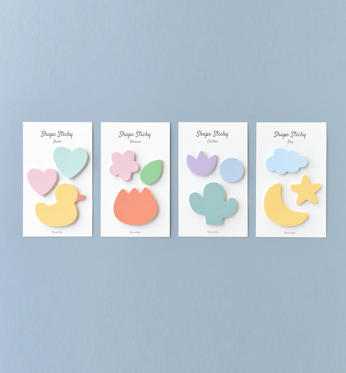 This beautiful stickies comes in 4 different shape/colors: 01. Duck, 02. Flower, 03. Cactus and 04. Sky. Please, see pictures for reference.