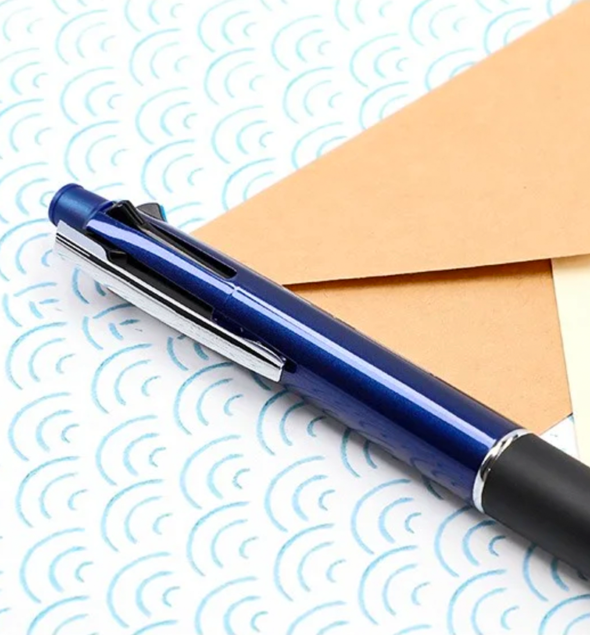 The Uni Jetstream Multifunction Pen 4&1, featuring a smooth writing experience that's bound to become addictive. Equipped with ultra-low friction Jetstream ink, this pen offers four ballpoint ink colors and a mechanical pencil function all in one sleek design.