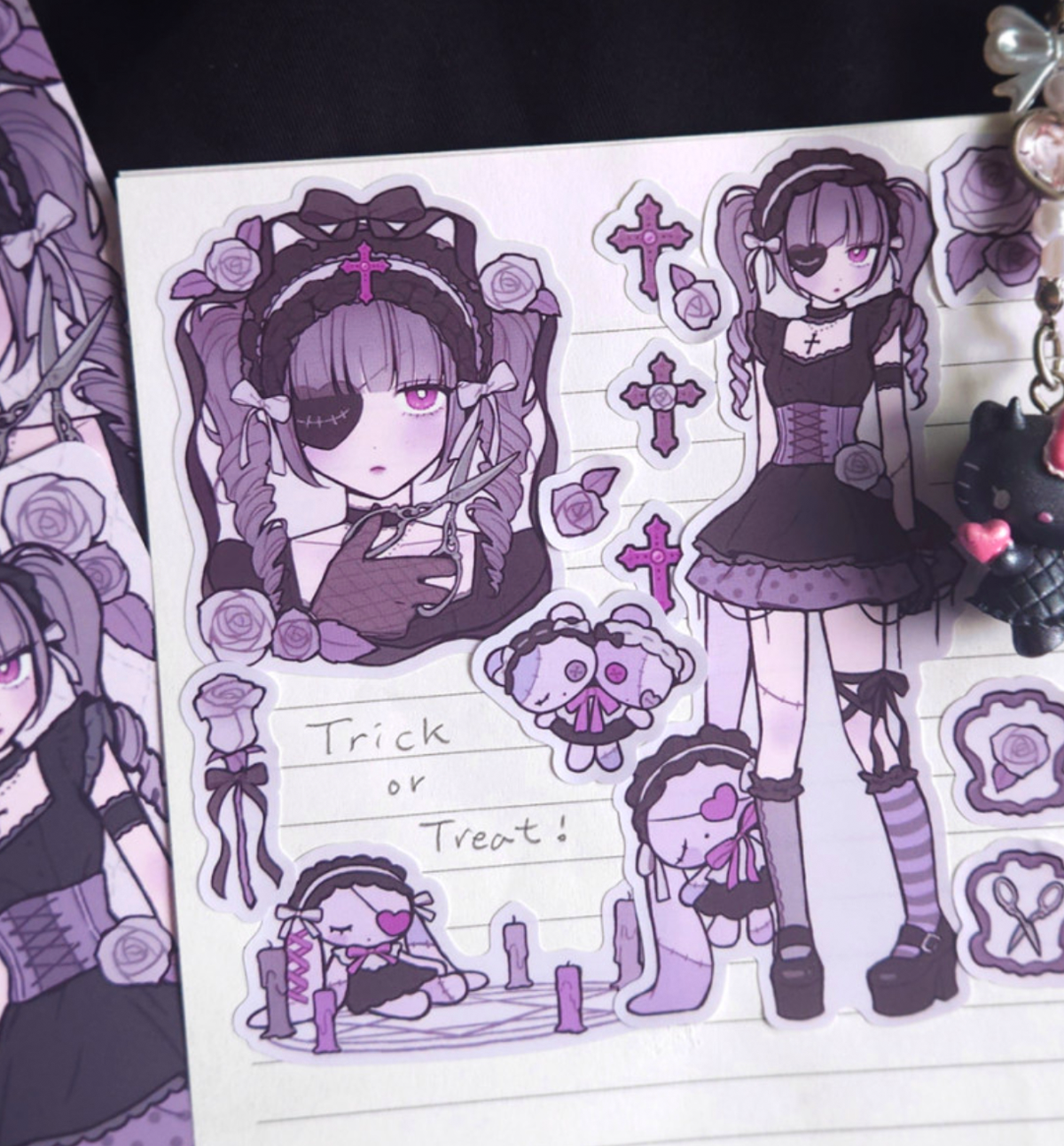 - Quantity: 1 Spooky Gothic Doll Sticker