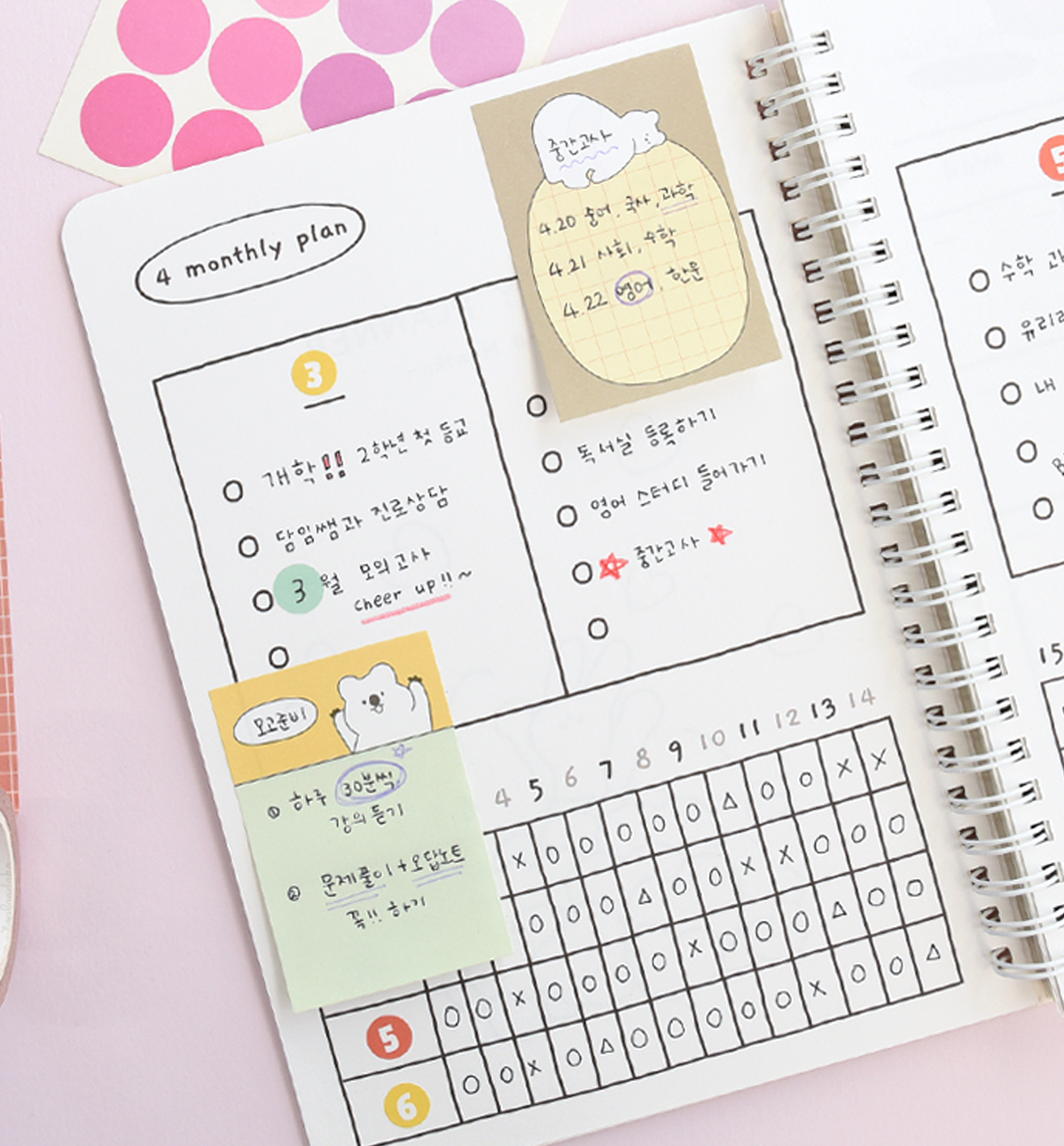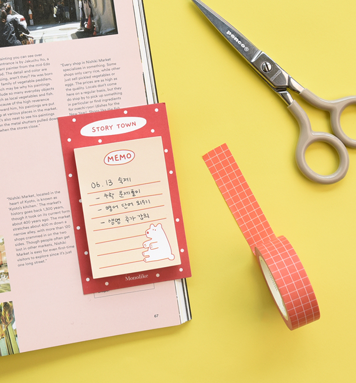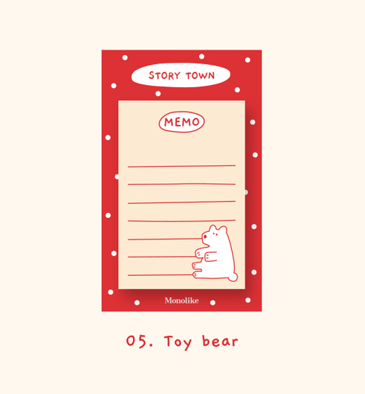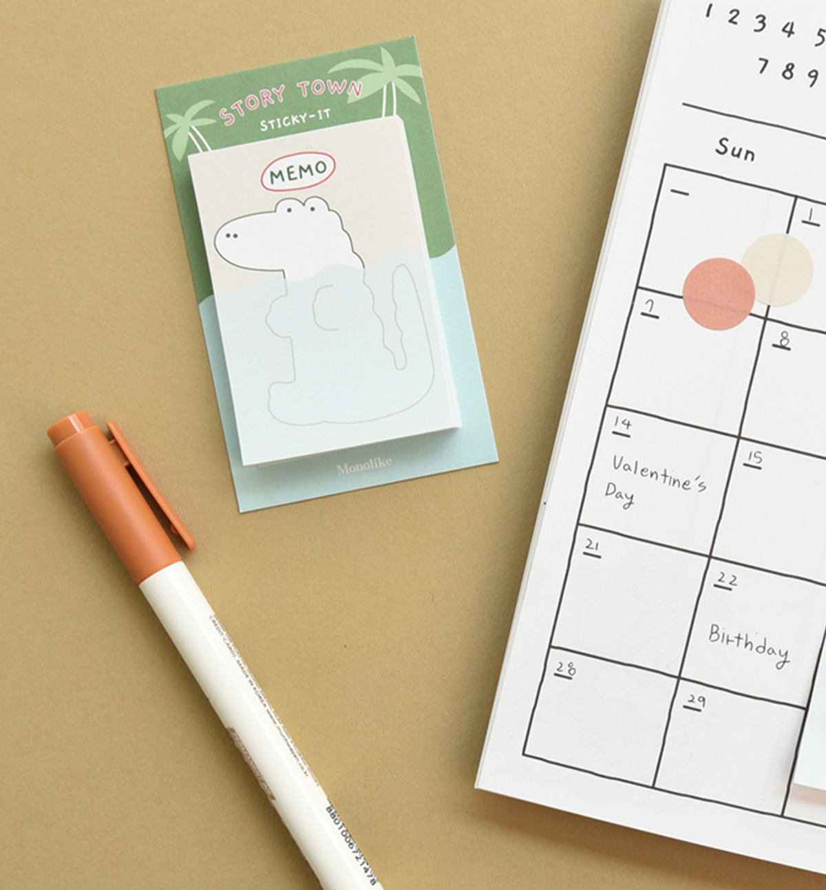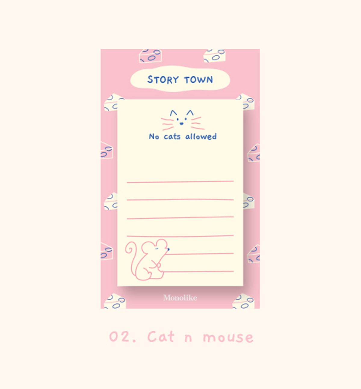 This beautiful sticky notes comes in 6 different colors: 01. Friendly Lion, 02 Cat n Mouse, 03. Cute Quokka, 04. Lazy Bear, 05. Toy Bear and 06. Crocodile. Please, see pictures for reference.