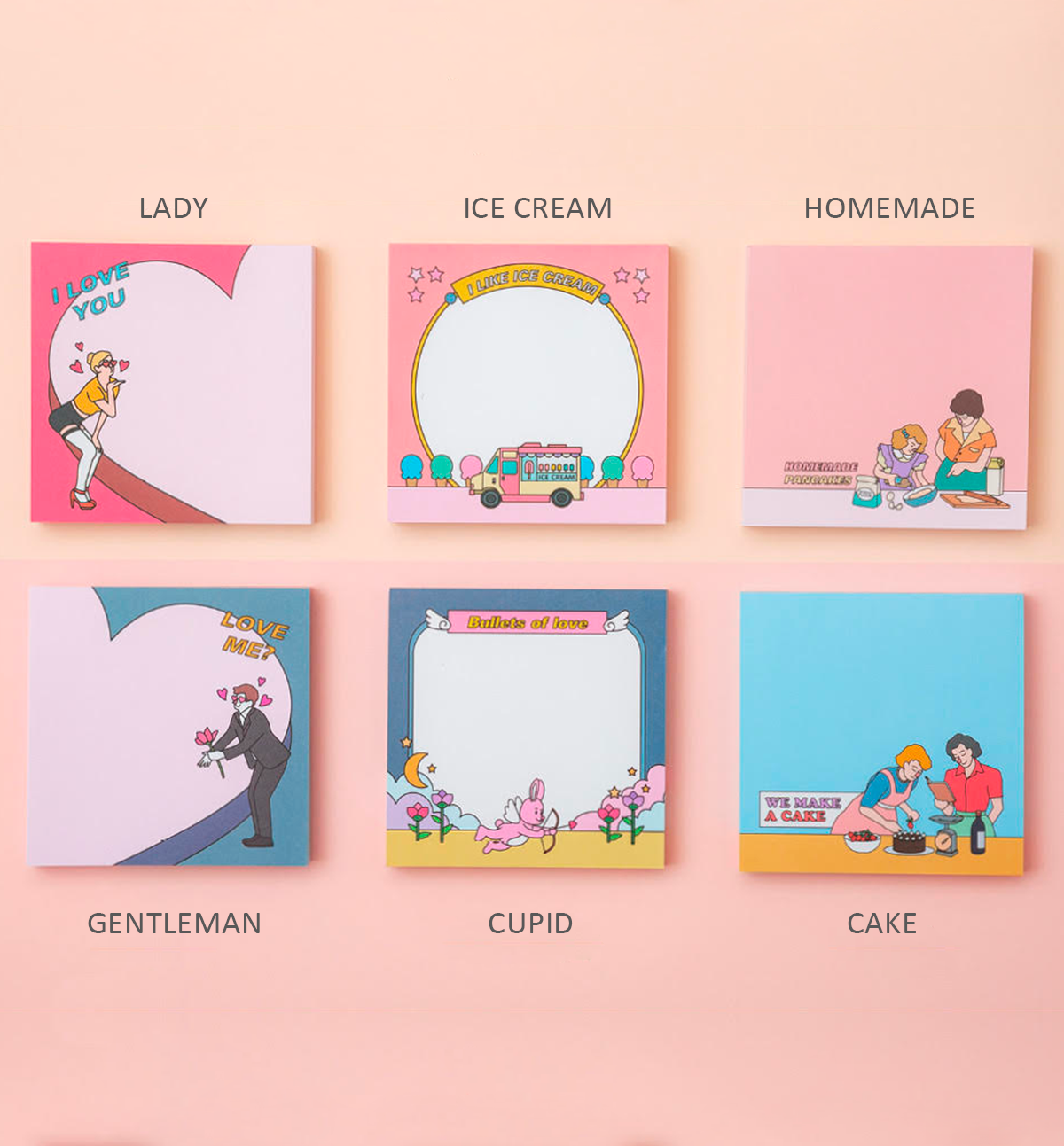 This beautiful notepads comes in 6 different designs: Lady, Gentleman, Ice Cream, Cupid, Homemade and Cake. Please, see pictures for reference.