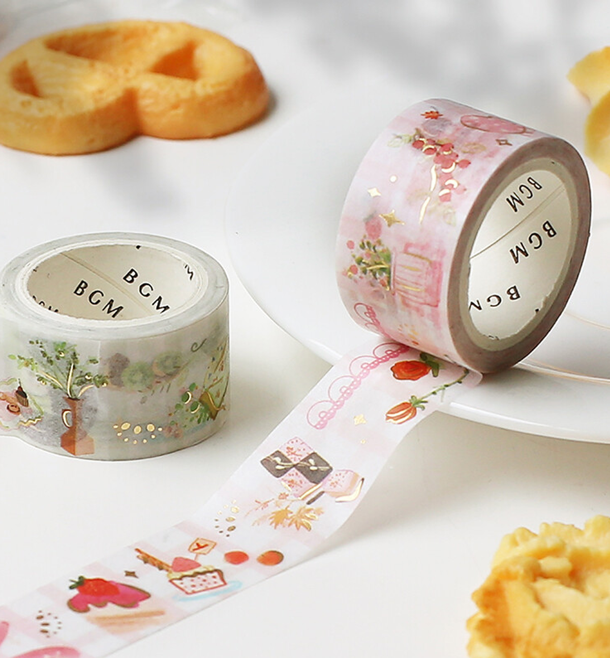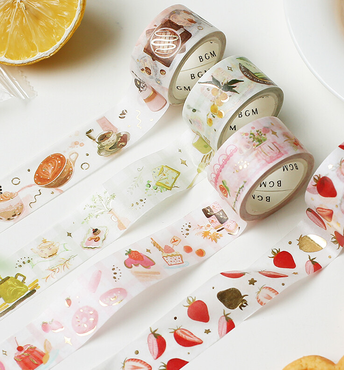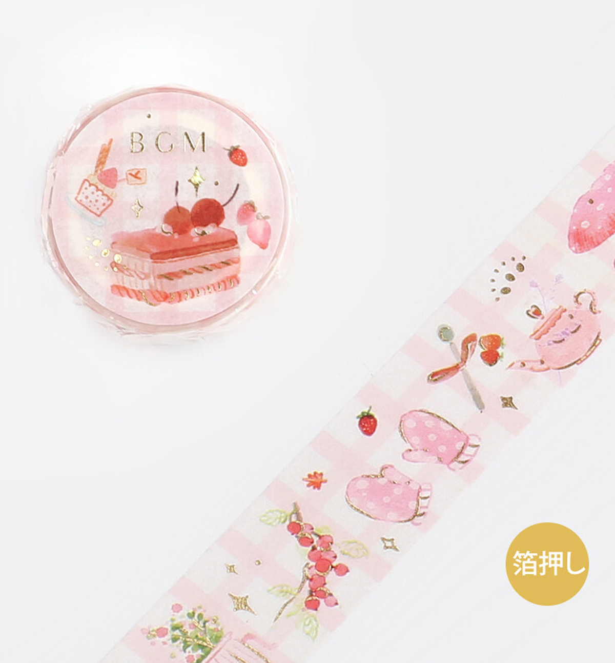 - Quantity: 1 Tea Time Strawberry Washi Tape [Foil Stamping]