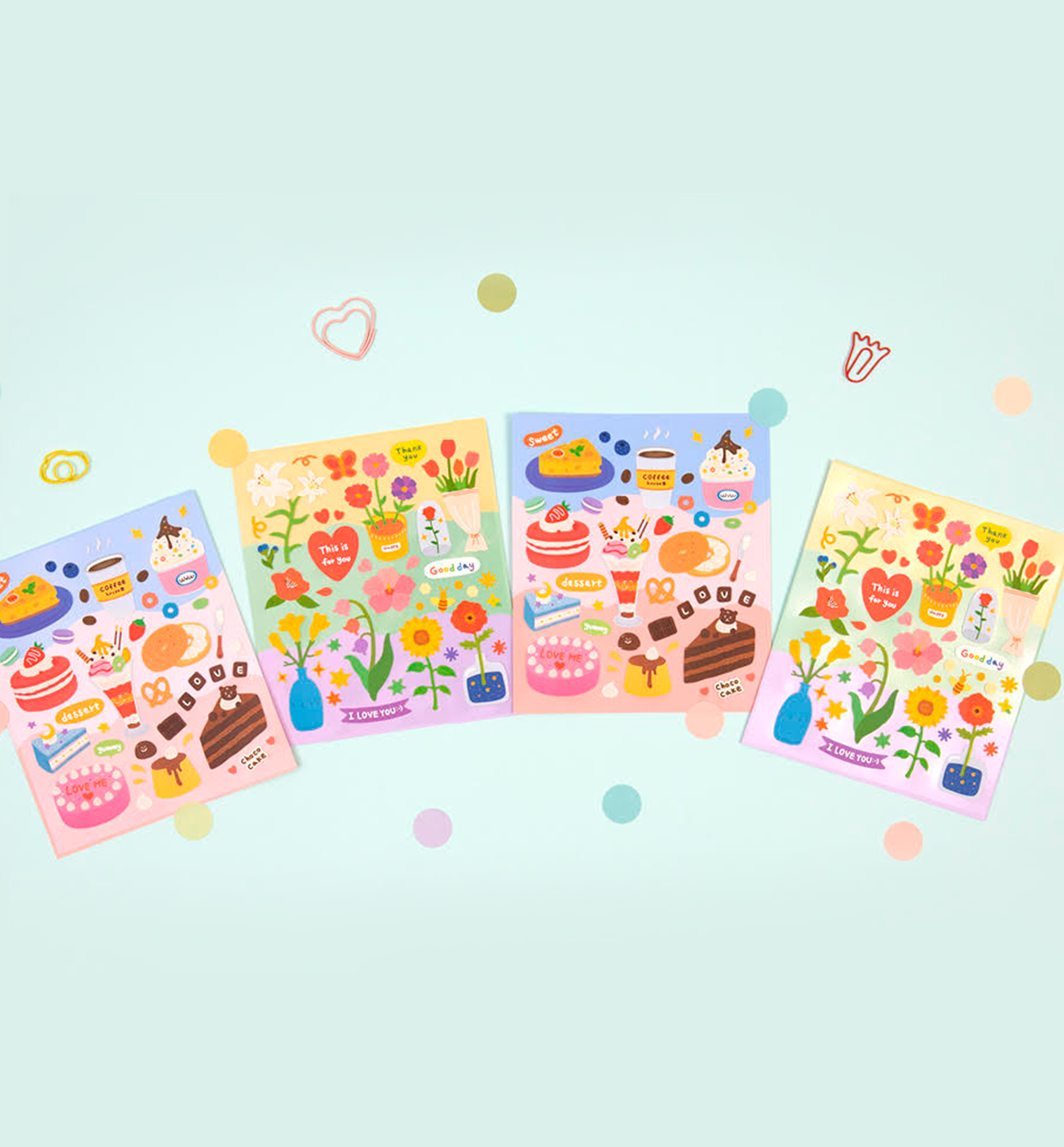 This beautiful Everyday Removal Stickers comes in 2 different designs: Dessert and Flower.
