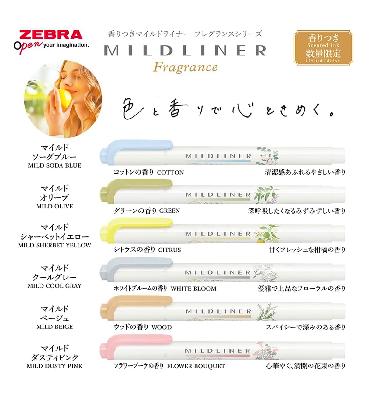 - Quantity: 1 Zebra Fragrance Highlighter, Mildliner Limited Edition [6 Colors Set] | Water Based.
