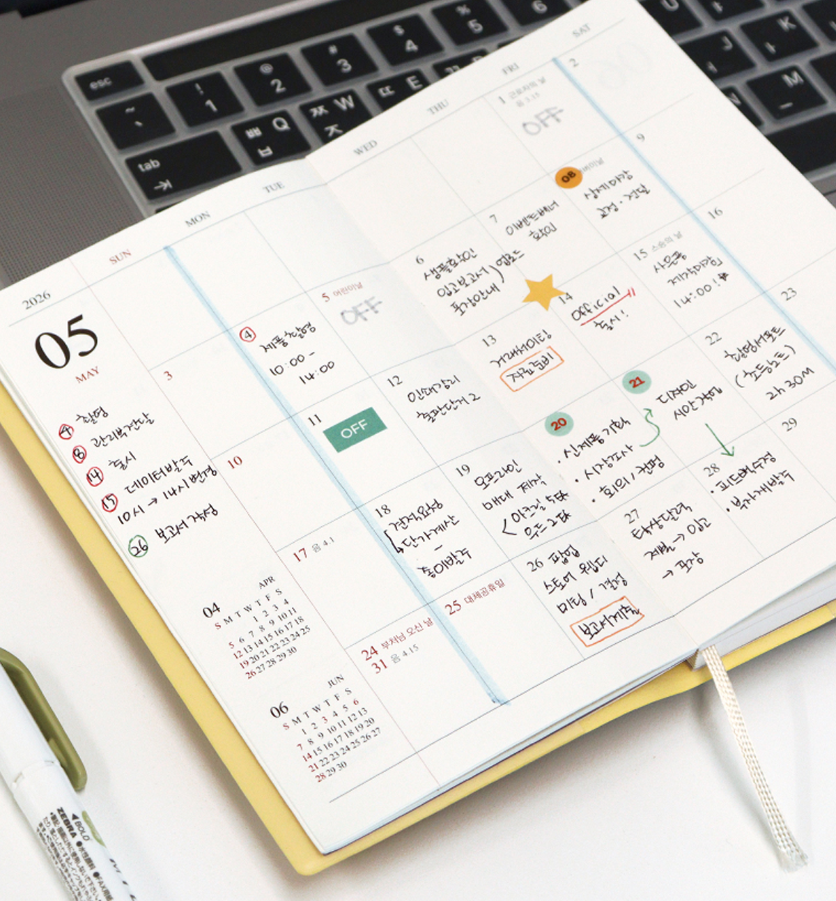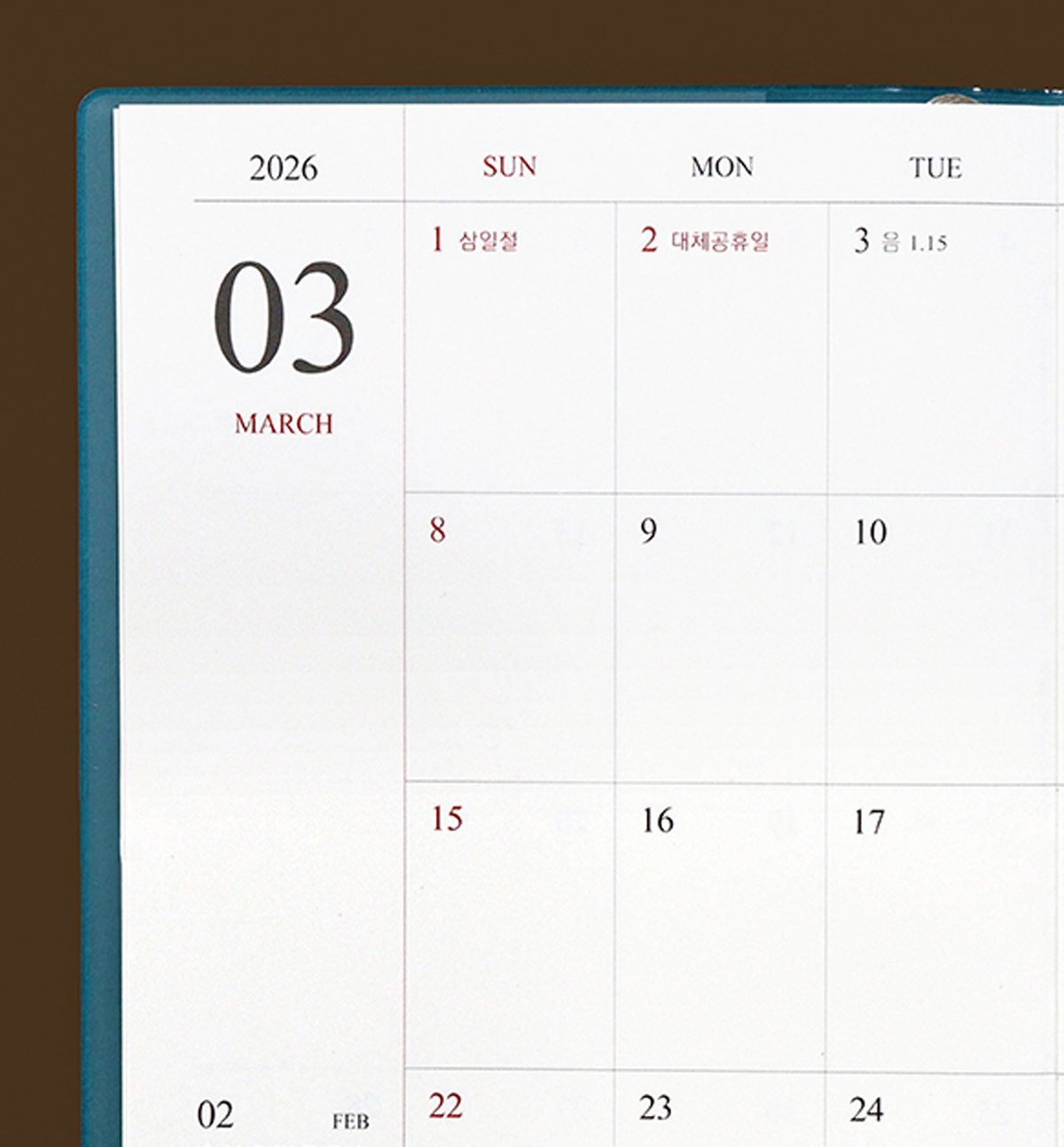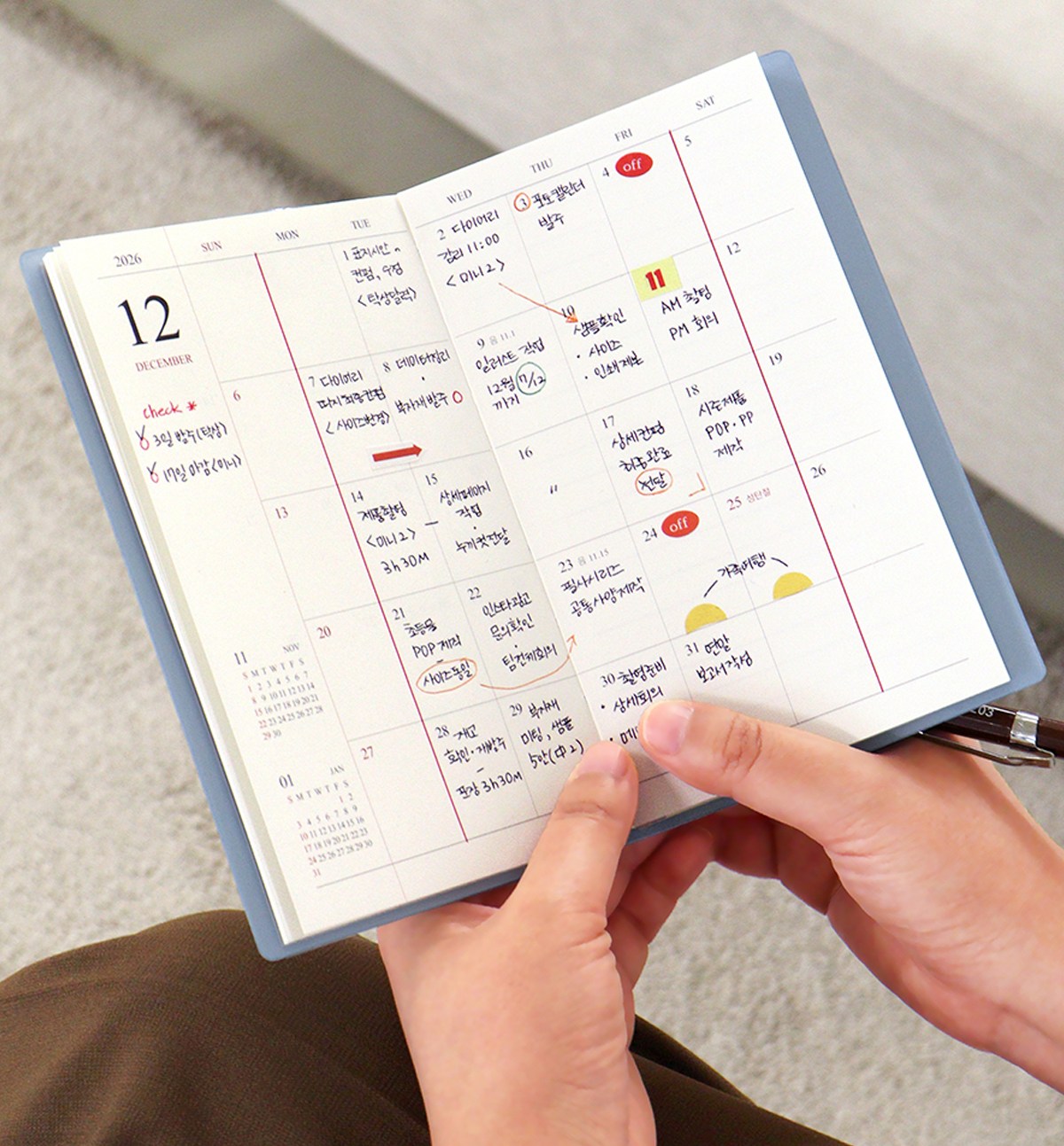 *Korean holidays are pre-marked throughout the calendar’s dated pages. But you can always add your personal holidays.