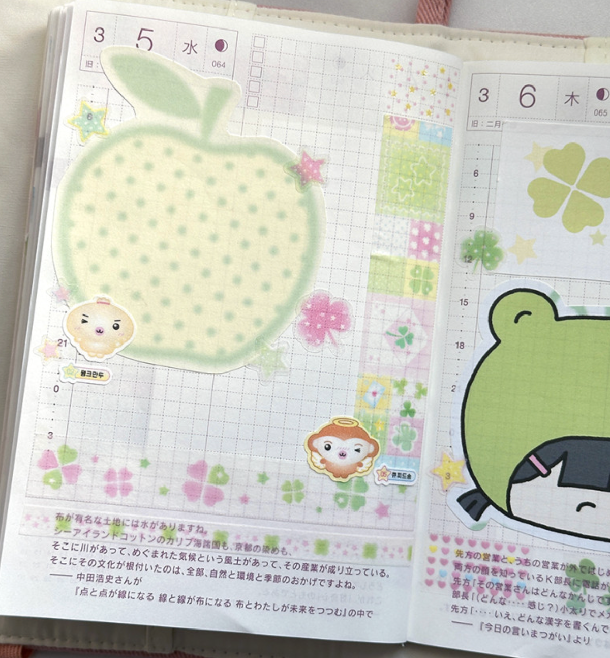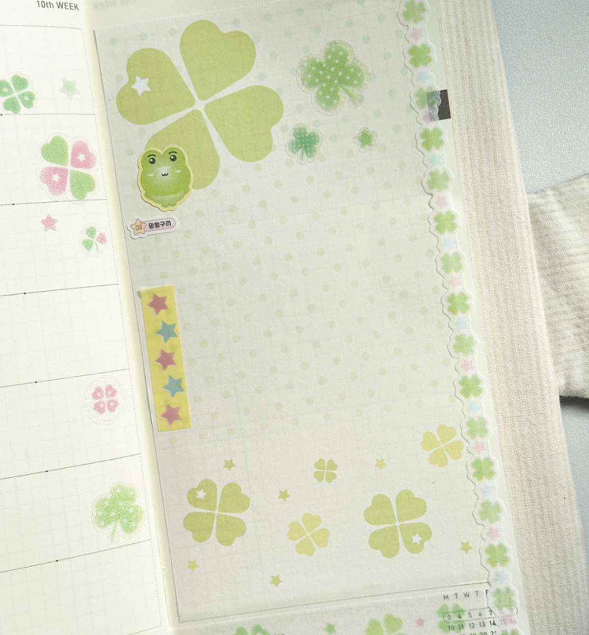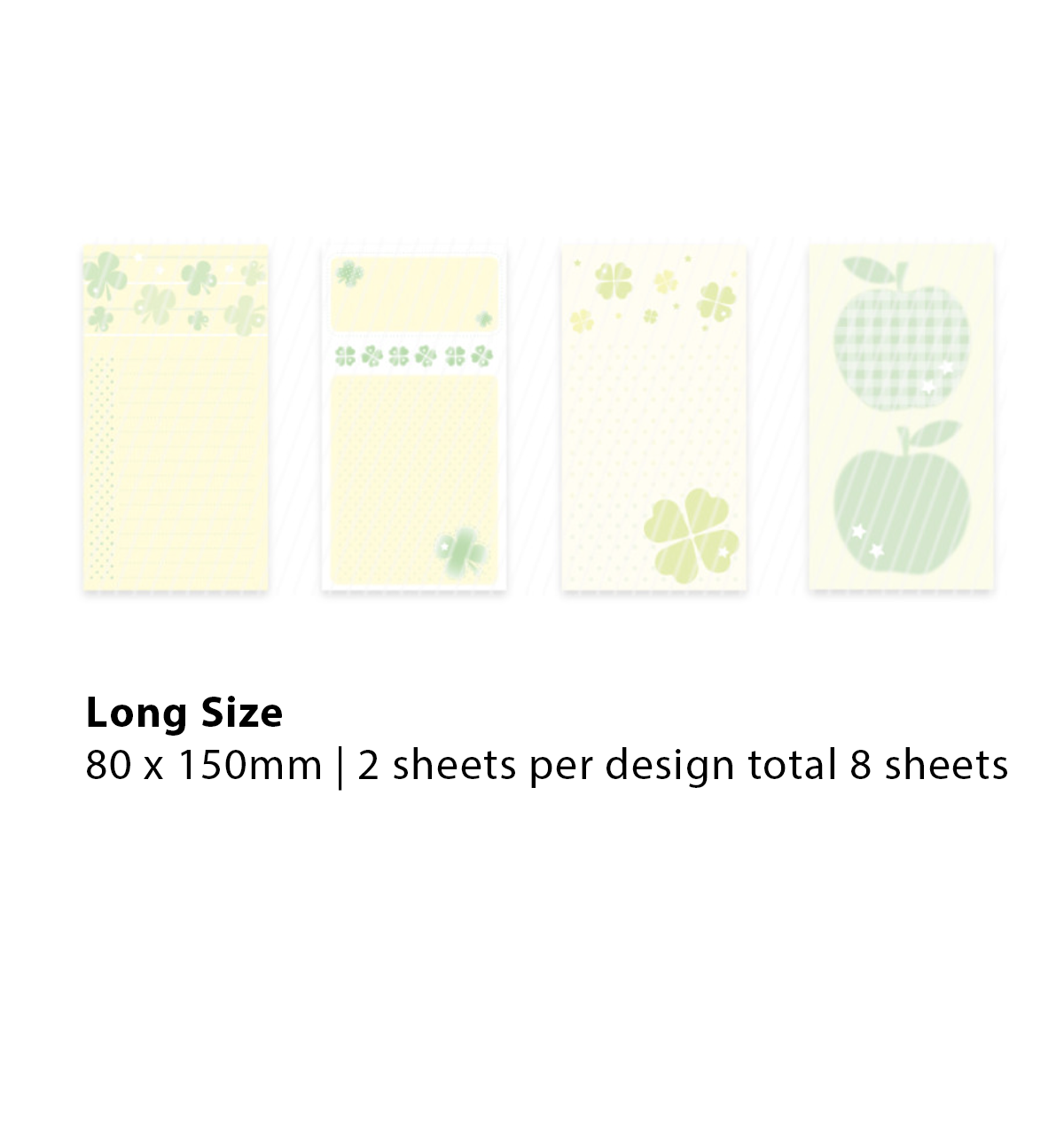 - Quantity: 1 Clover & Apple Sticker Paper Pack | 4 designs x 2 sheets = 8 sheets