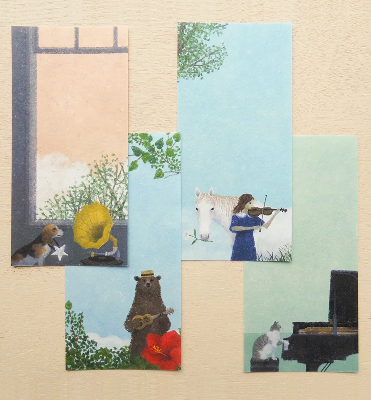 Designed by illustrator Akira Kusaka, this unique memopad features delicate illustrations of musical instruments such as a piano, ukulele, violin, and gramophone, evoking the feeling of soft melodies coming to life on paper. Each page invites you to slow down, get inspired, and enjoy the art of writing.