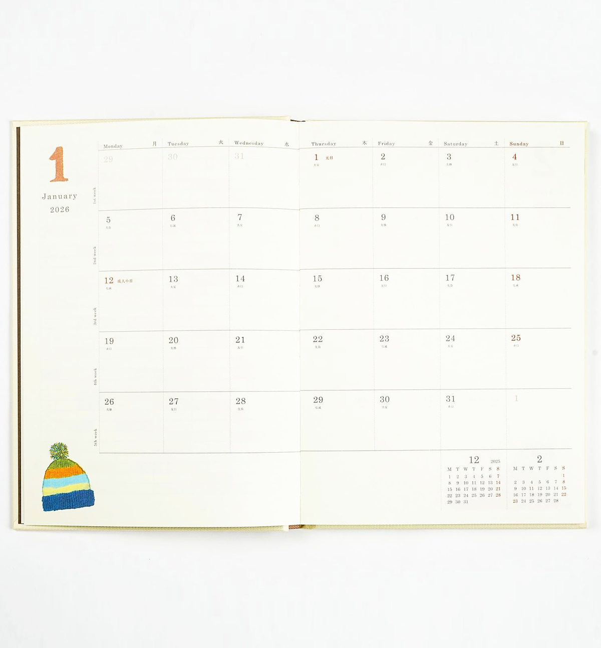 Add a touch of charm to your daily planning with this 2026 B6 weekly planner, featuring the warm, storybook-like illustrations of Yusuke Yonezu. Full-color pages and thoughtful design make it both functional and delightful.