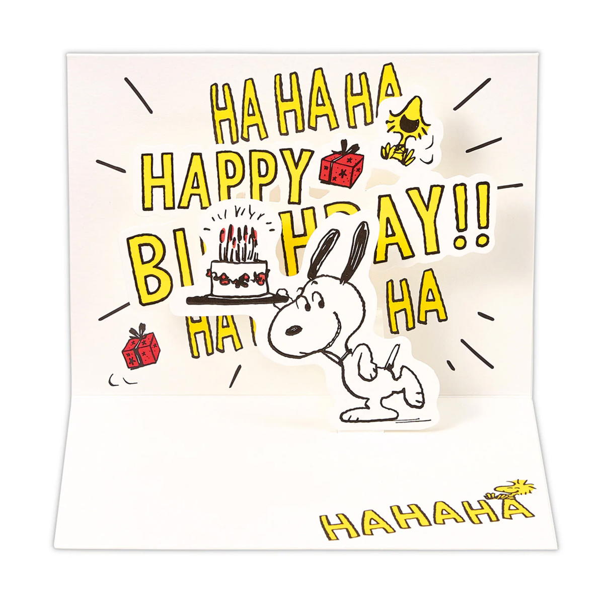 Featuring large “HAHAHA…” lettering to express cheerful laughter, this card has a bright and joyful design. When opened, the sentiment inside pops up with a spring mechanism, adding playful motion to your birthday wishes.