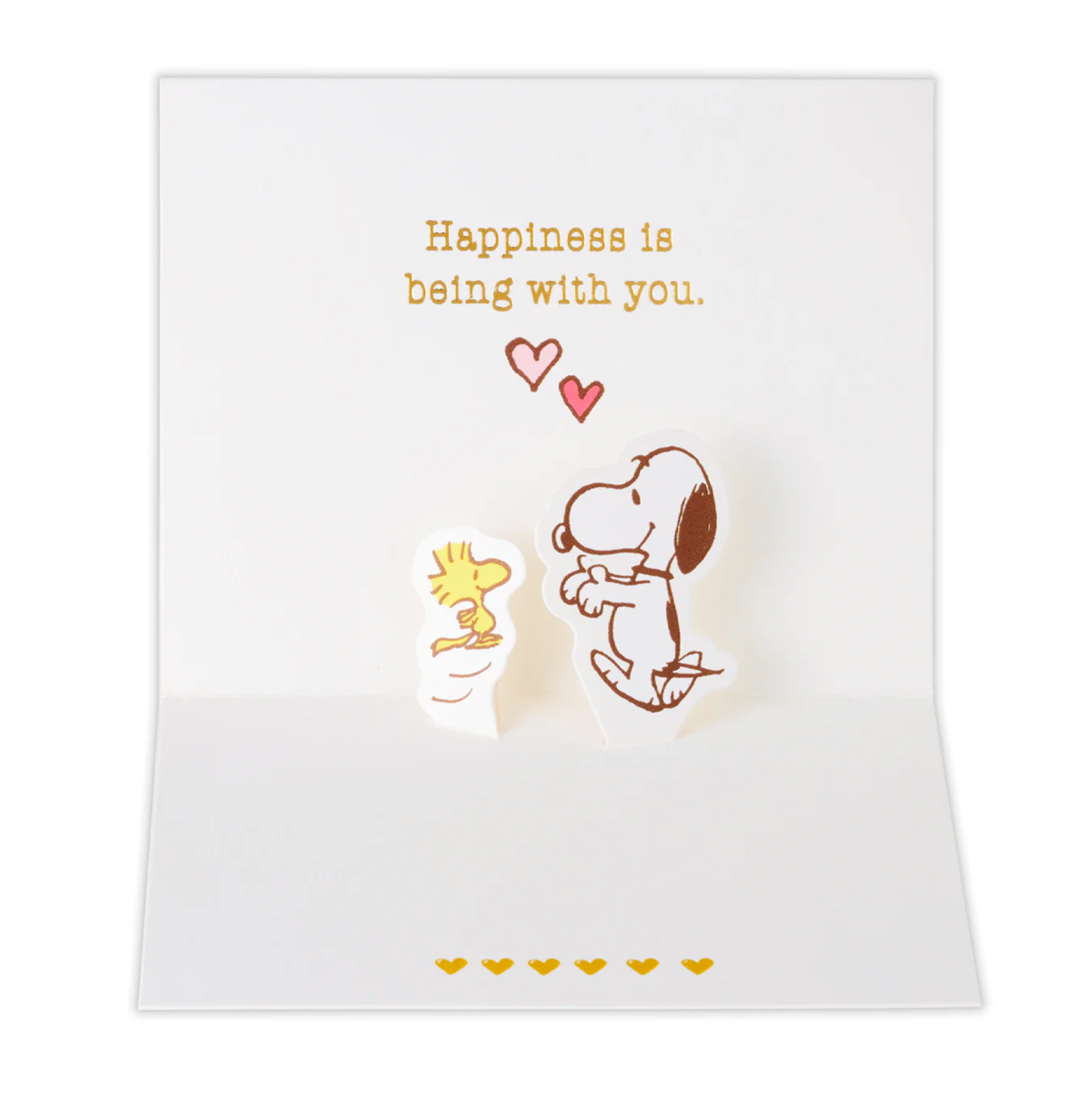 Make any occasion special with this adorable 3D mini card featuring Snoopy surrounded by gold-foil hearts. Perfect for gifts, heartfelt messages, or seasonal events like Valentine’s Day, it adds a charming and personal touch to your greetings.