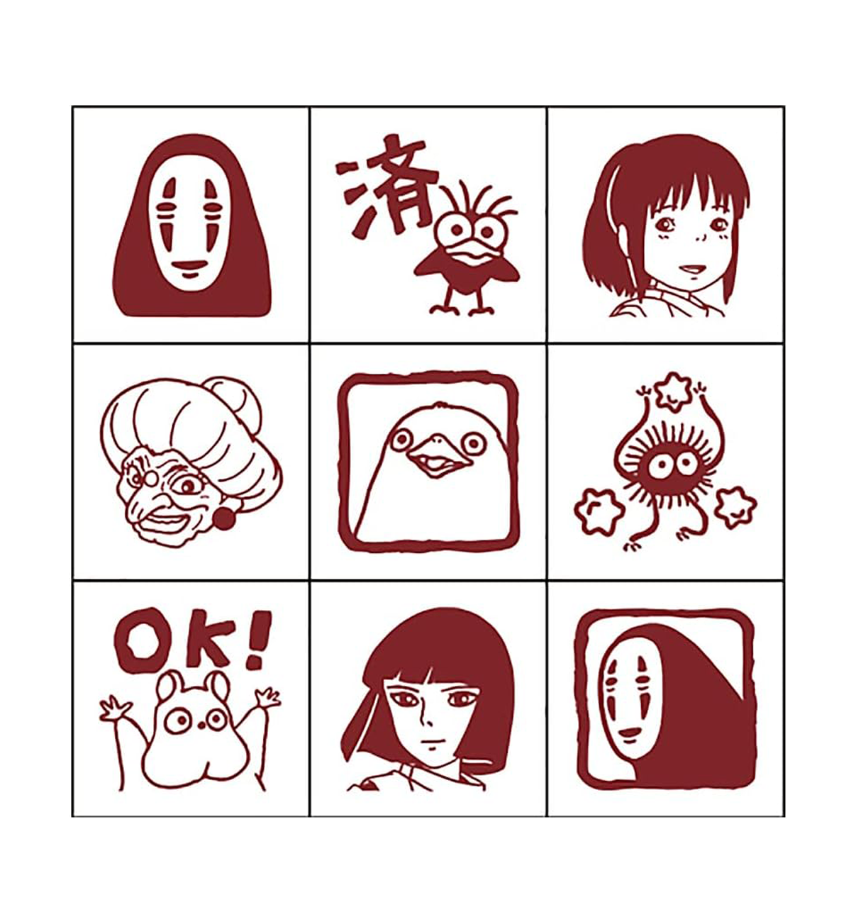 Add a magical touch to your planner, journal, or letters with this adorable Studio Ghibli Mini Stamps Set featuring No Face (Kaonashi) from Spirited Away. These small wooden stamps are perfect for decorating notebooks, marking reminders, or celebrating completed tasks with a cute OK stamp.