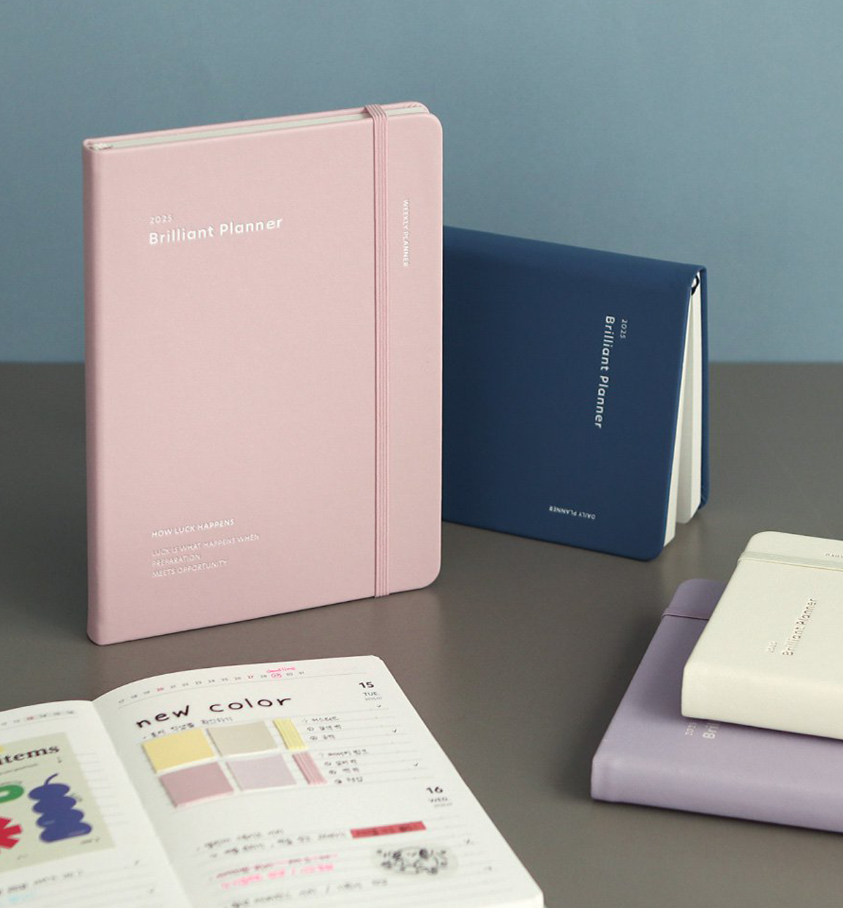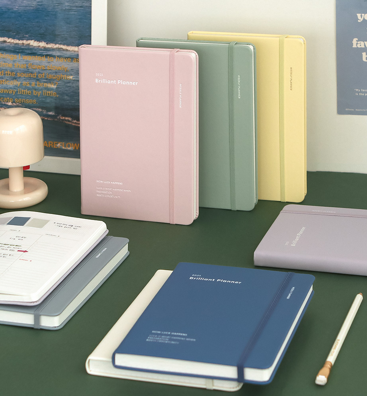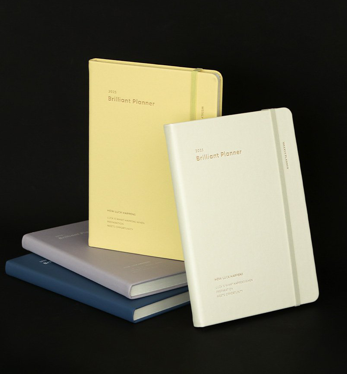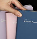 This 2025 Brilliant Weekly Planner comes in 7 designs colors, open flat, it comes with a closure band and 2 satin bookmarks.