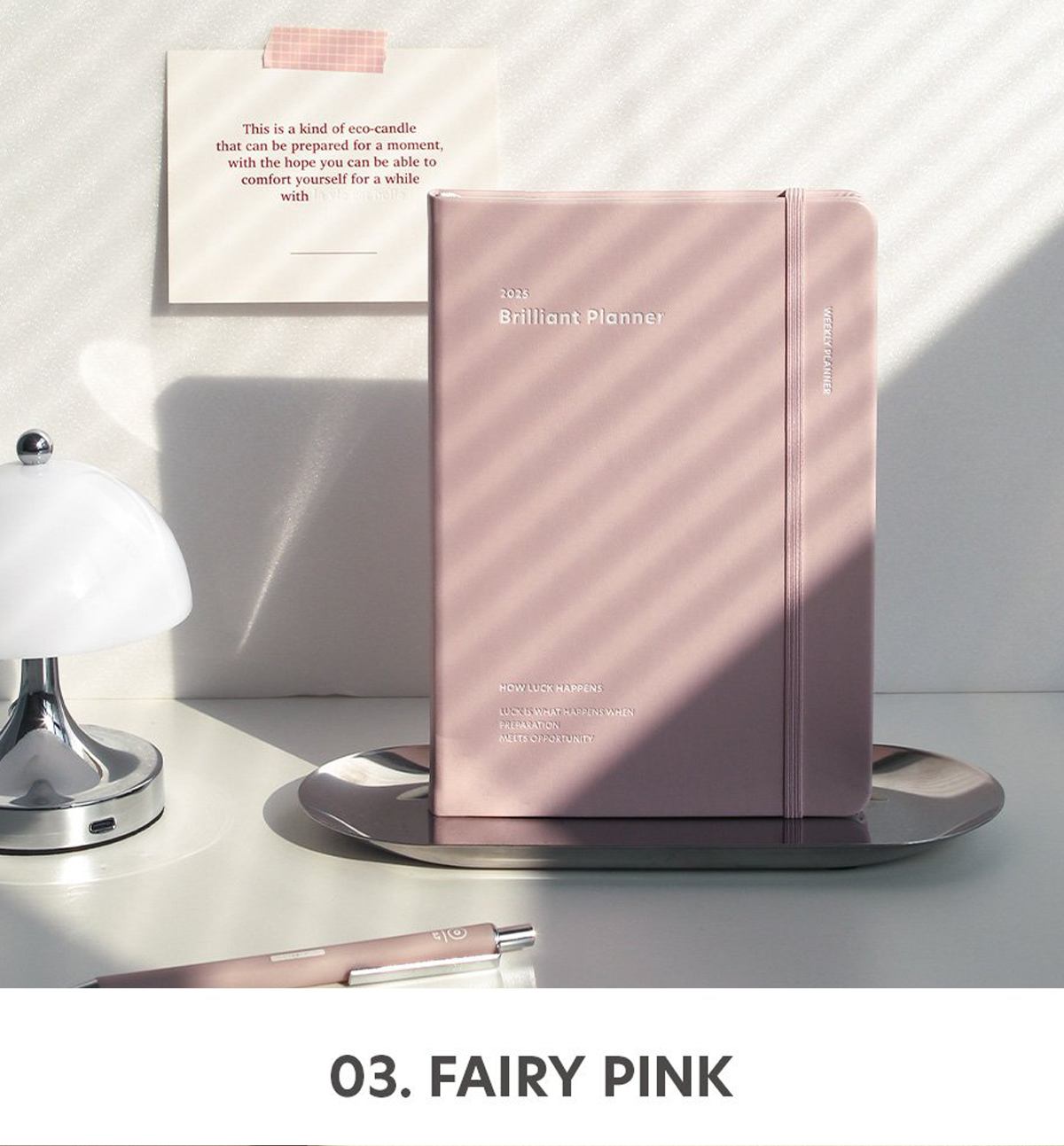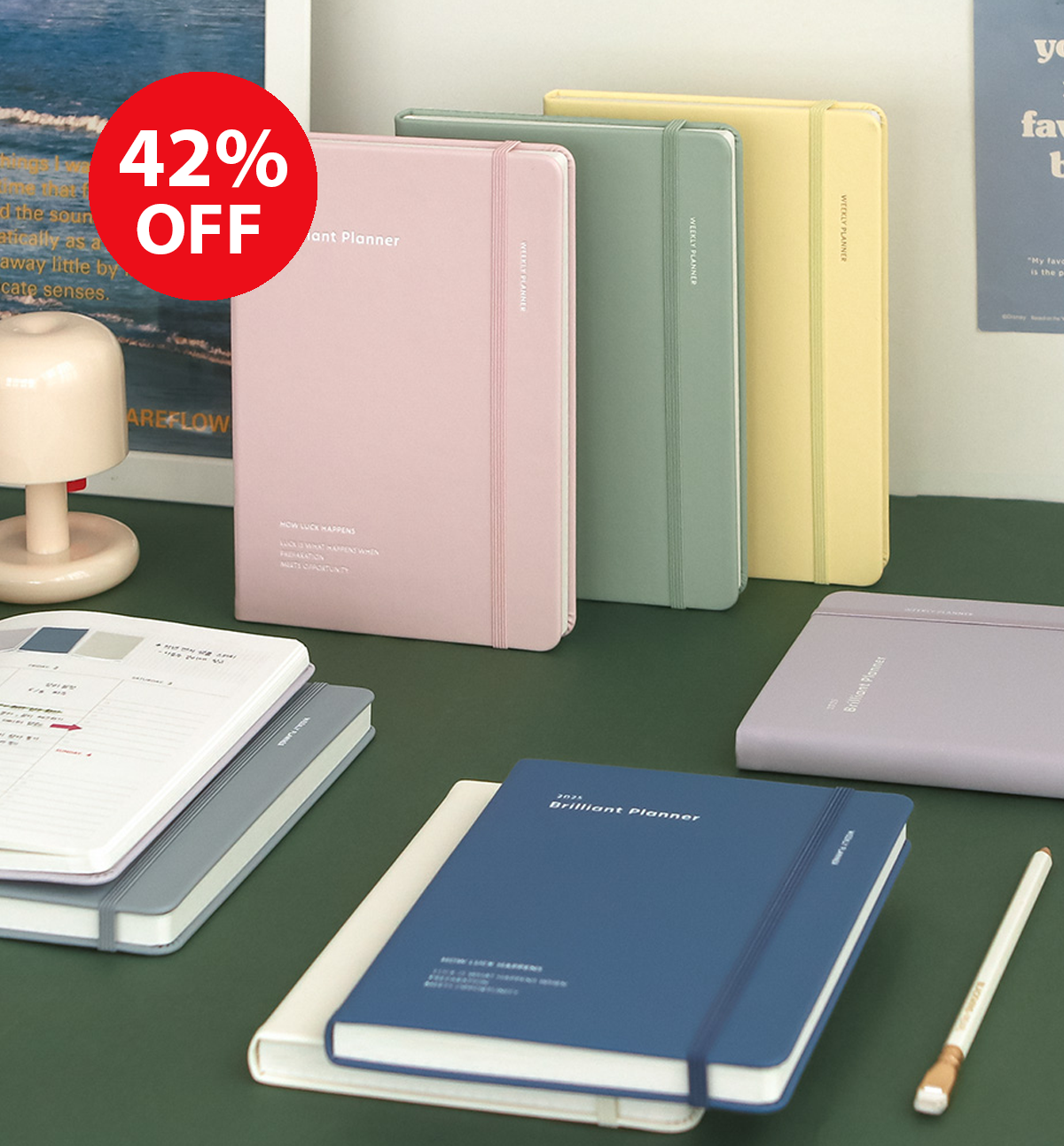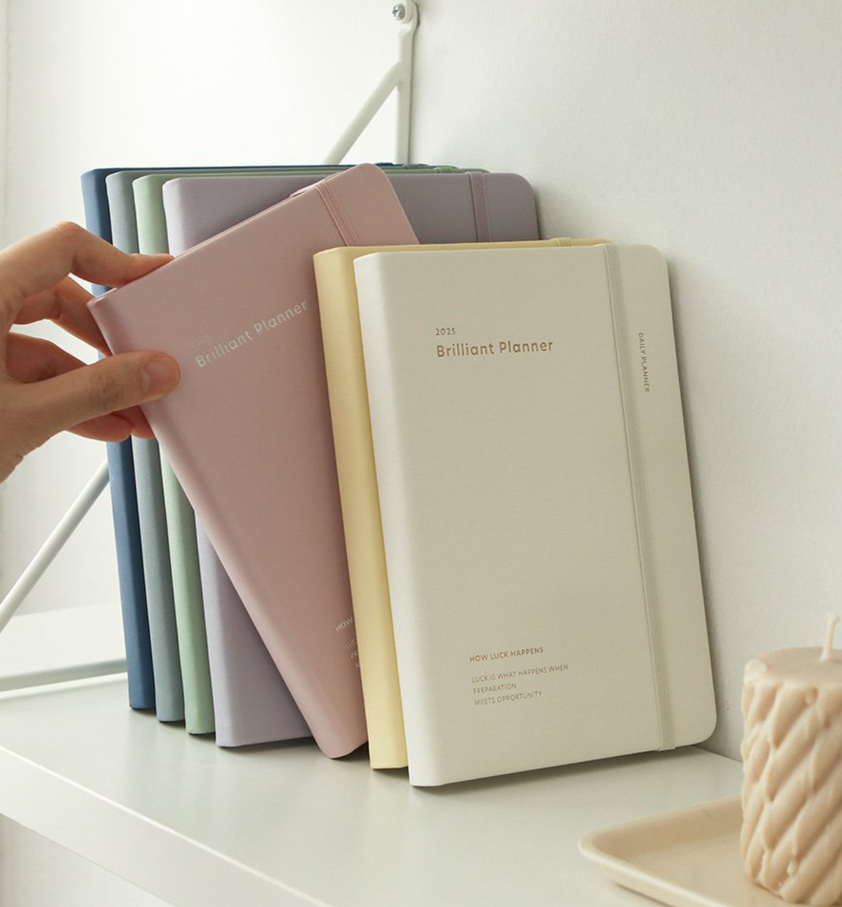 This 2025 Brilliant Weekly Planner comes in 7 designs colors, open flat, it comes with a closure band and 2 satin bookmarks.