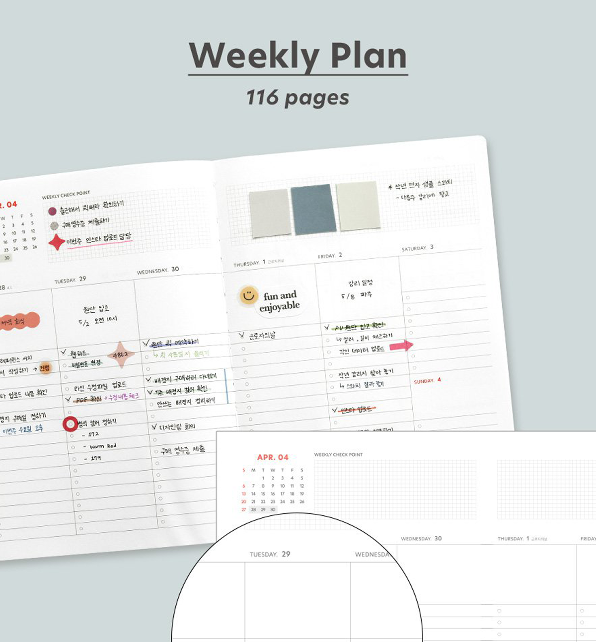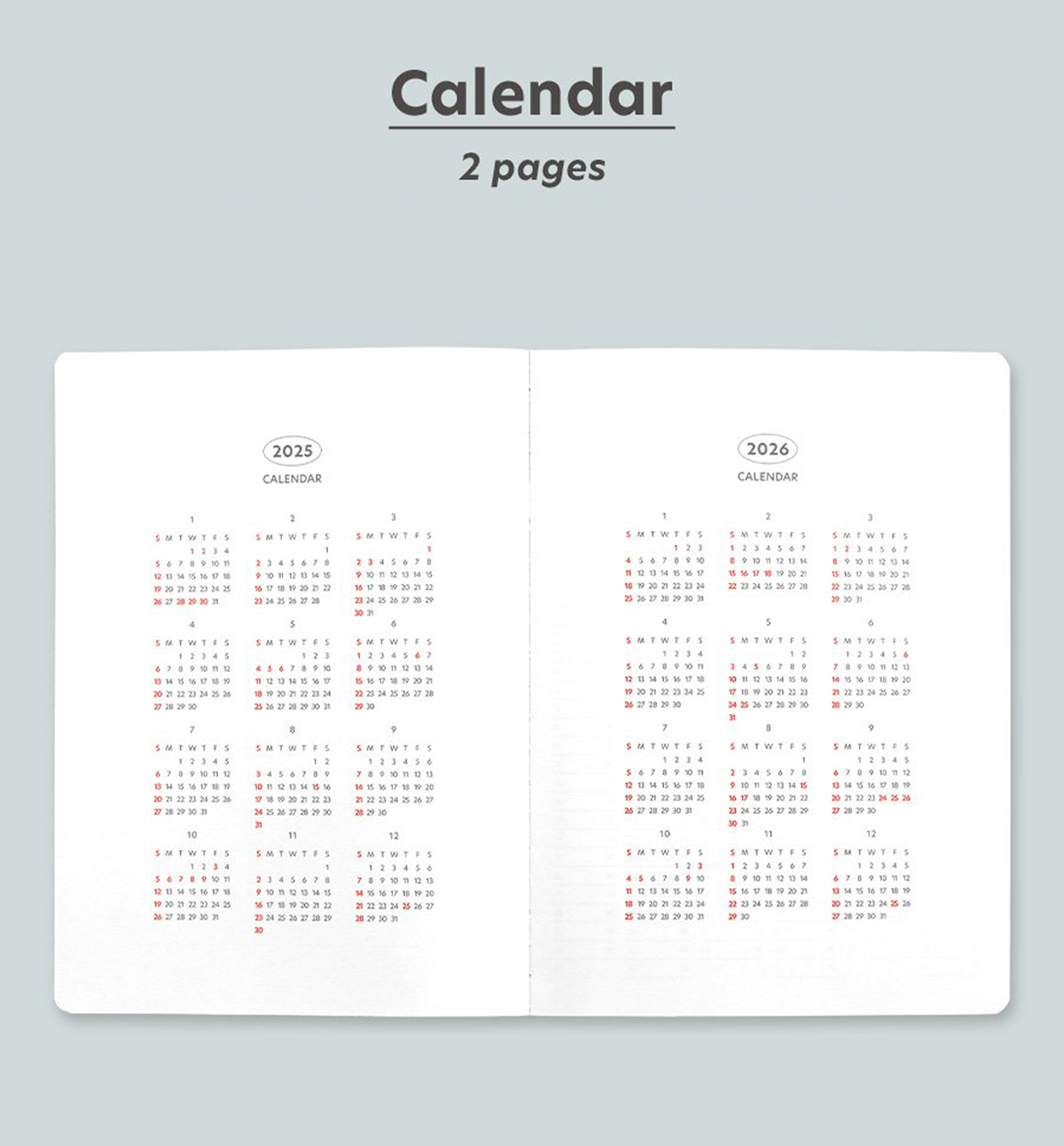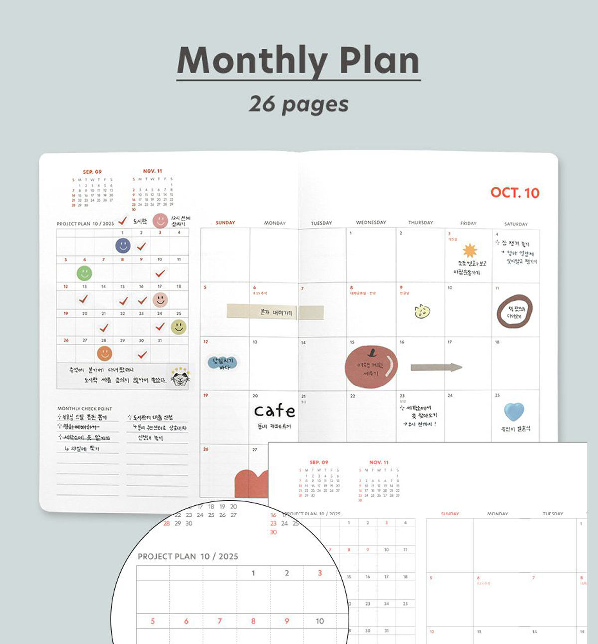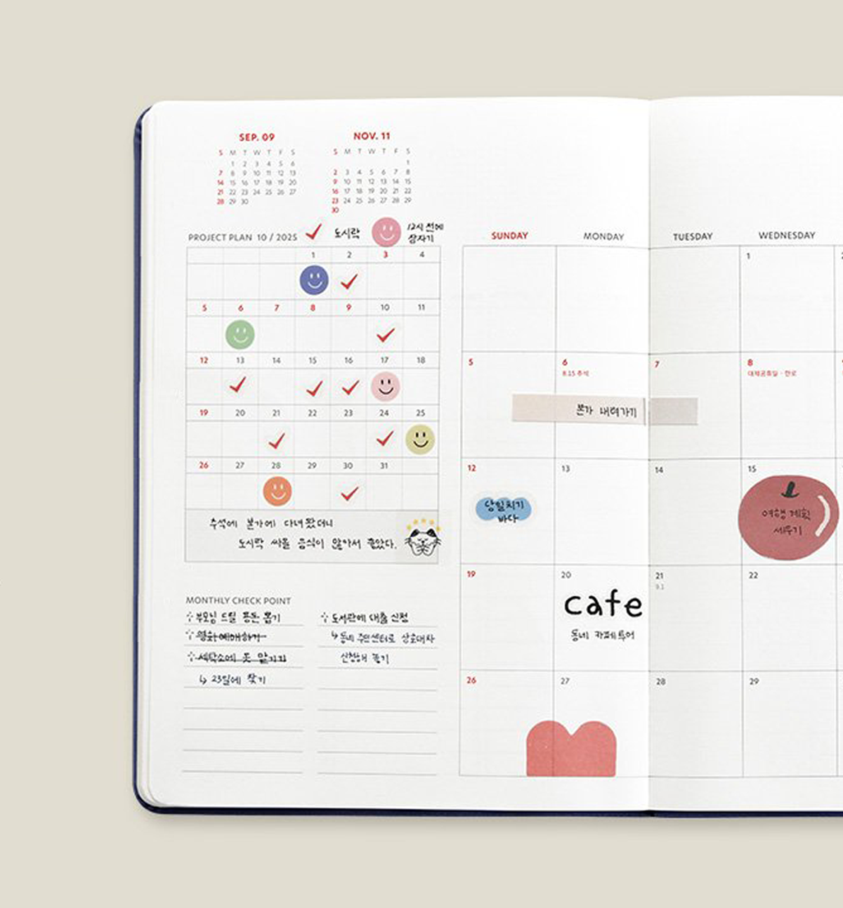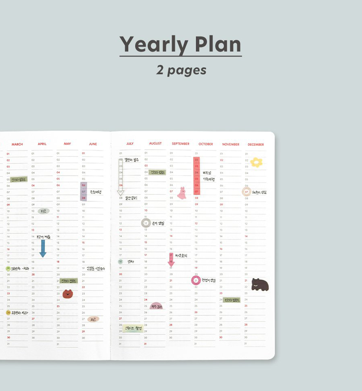 *Korean holidays are pre-marked throughout the calendar’s dated pages. But you can always add your personal holidays.