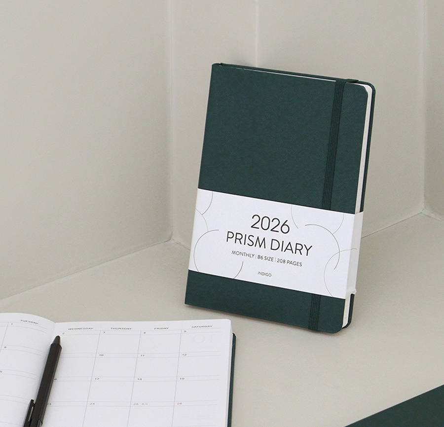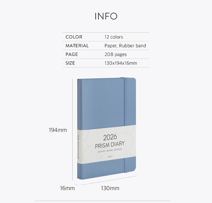 This beautiful 2026 Prism B6 Monthly Planner come in 12 different colors, open flat and it comes with a rubber band.