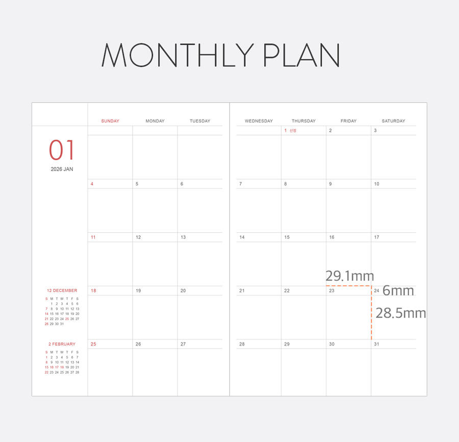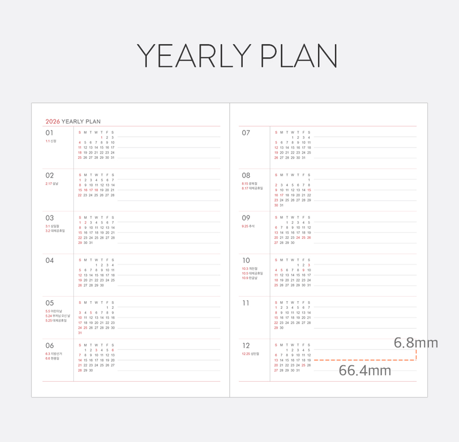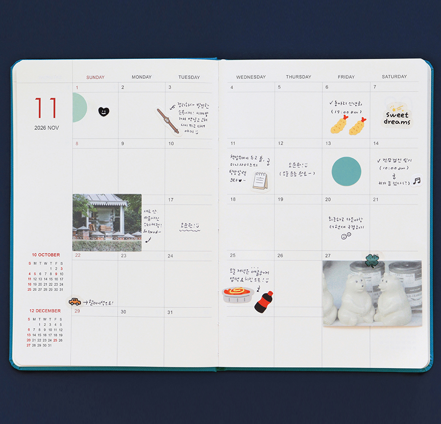 *Korean holidays are pre-marked throughout the calendar’s dated pages. But you can always add your personal holidays.