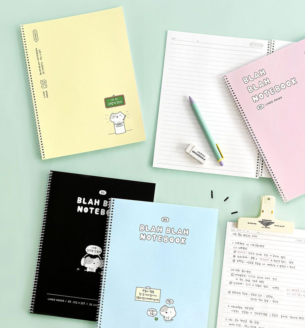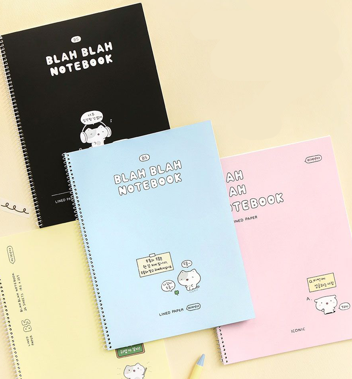 This B5 Blah Blah Spring Notebook [Lined] comes in 4 different colors. Spring ring binding.