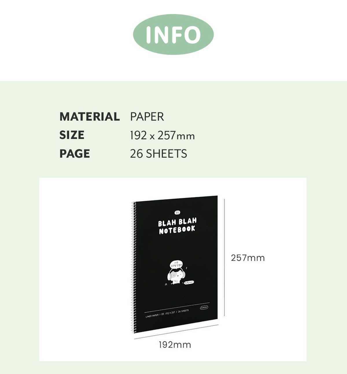 - Quantity: 1 B5 Blah Blah Spring Notebook [Lined]