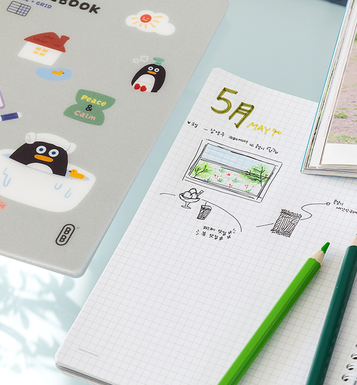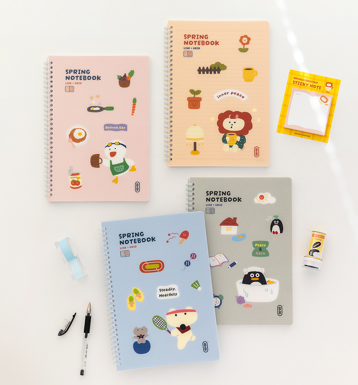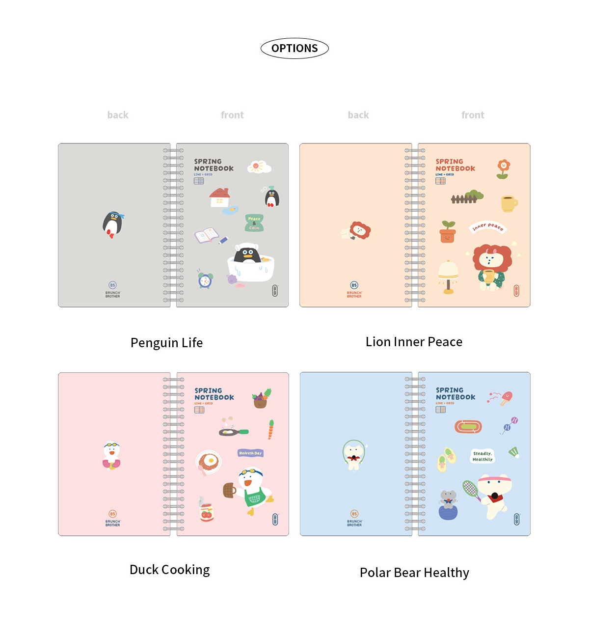 This B5 Brunch Brother Line & Grid Ring Notebook comes in 4 different designs: Penguin Life, Lion Inner Peace, Duck Cooking and Polar Bear Healthy.